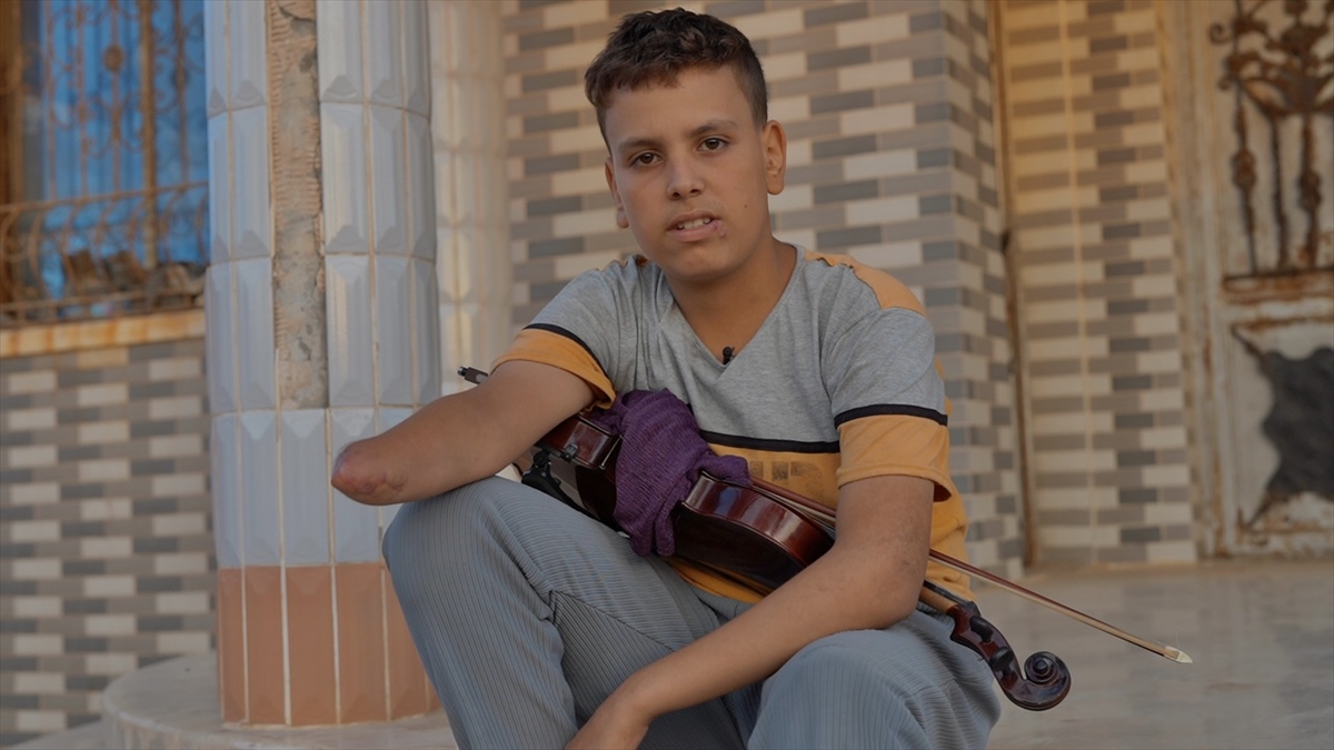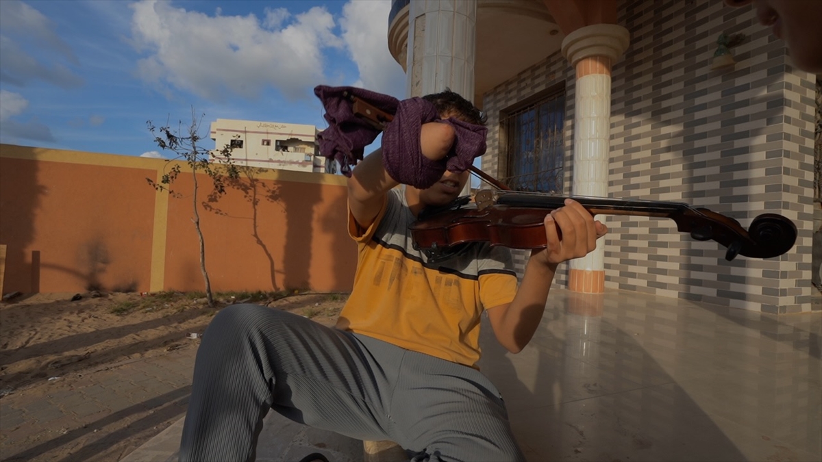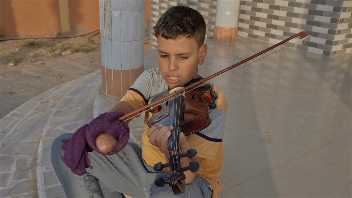 İsrail saldırılarında bir elini kaybeden Filistinli çocuk tekrar keman çalmaya başladı