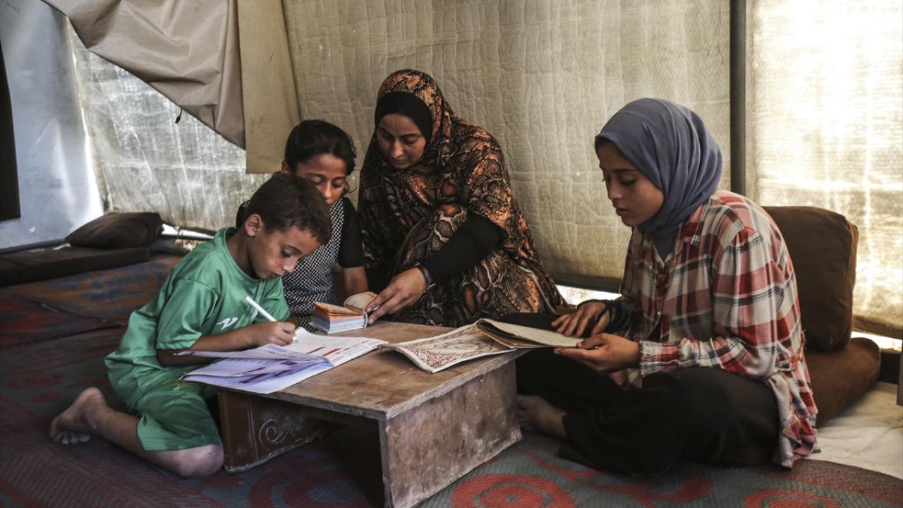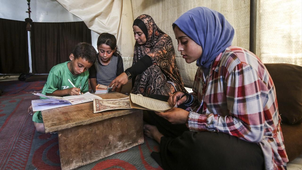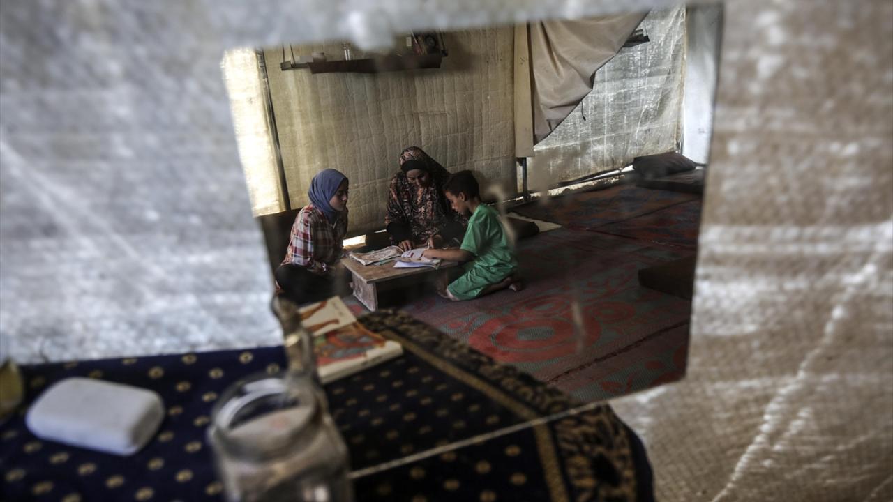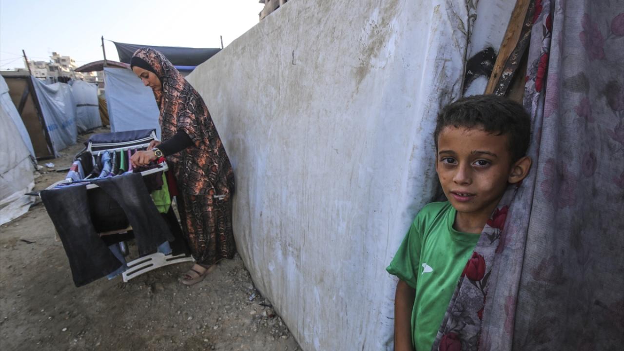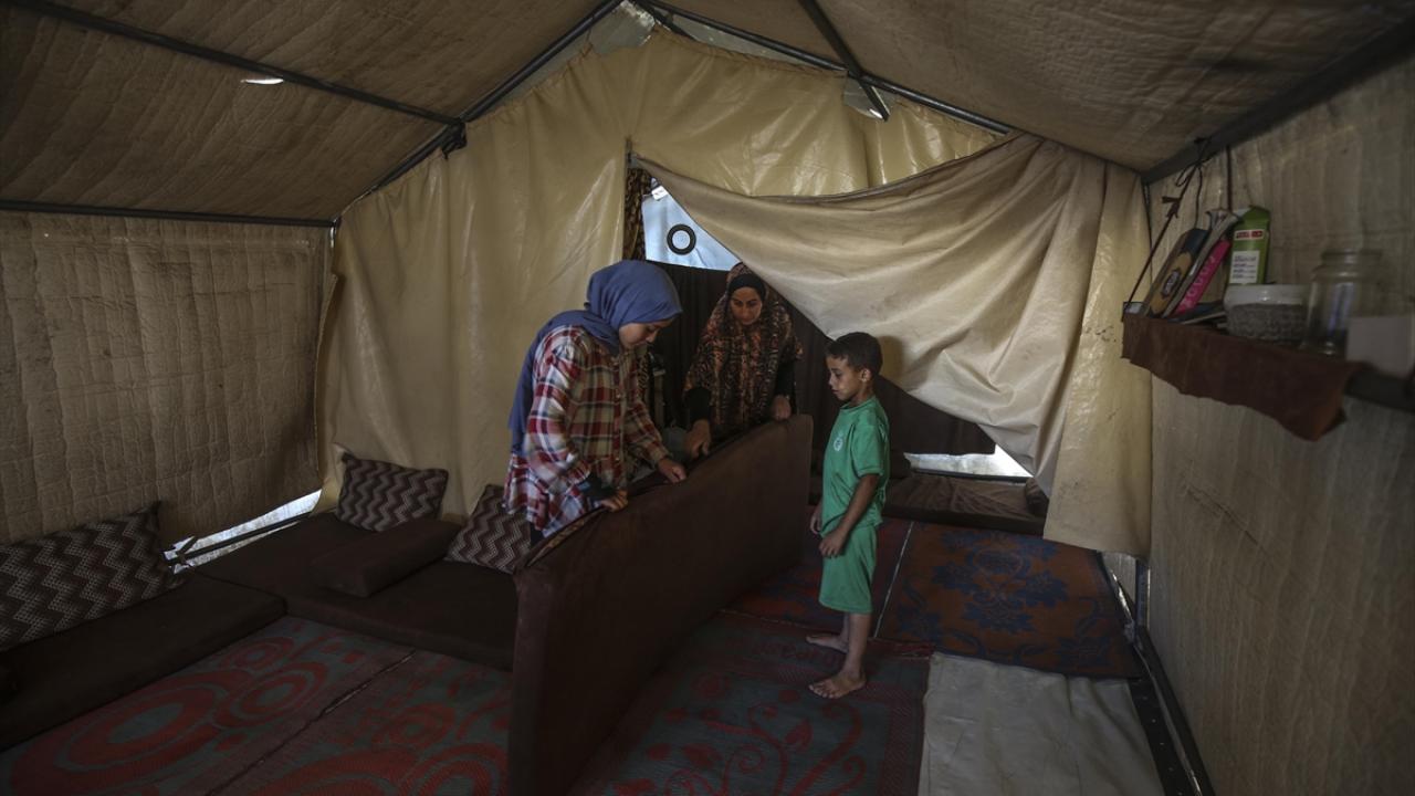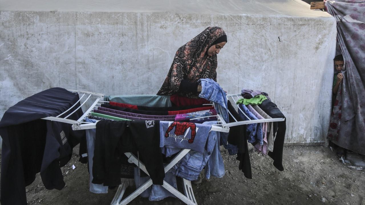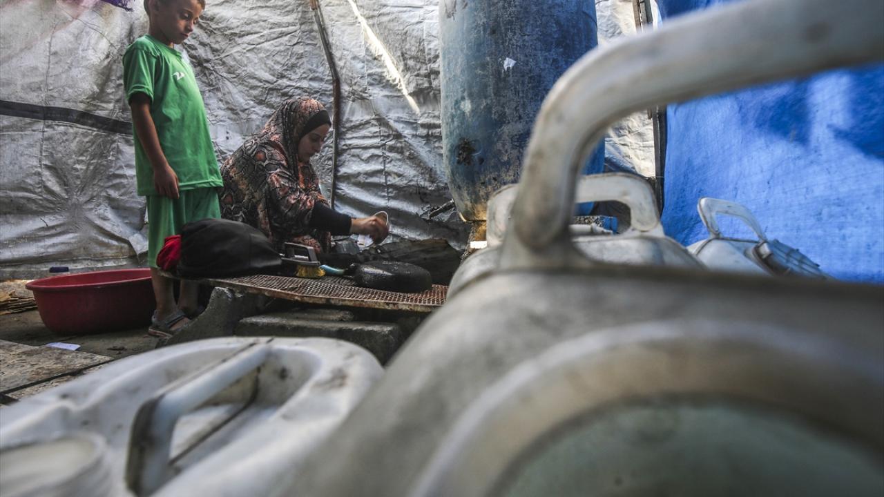 Soykırımcı İsrail ordusunun Gazze Şeridi'ne düzenlediği saldırıda eşini kaybeden 40 yaşındaki Filistinli Vahibe Muhaysin, Gazze kentinin Şeyh Rıdvan Mahallesi'nde çocuklarıyla birlikte sığındığı derme çatma çadırda zor şartlar altında yaşamını sürdürüyor.