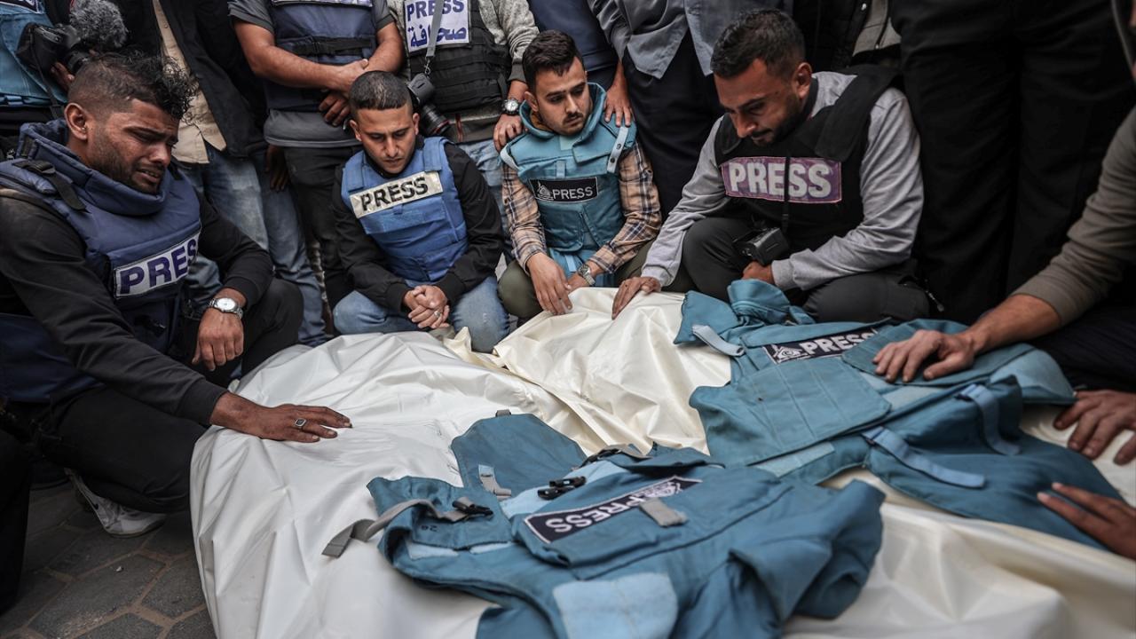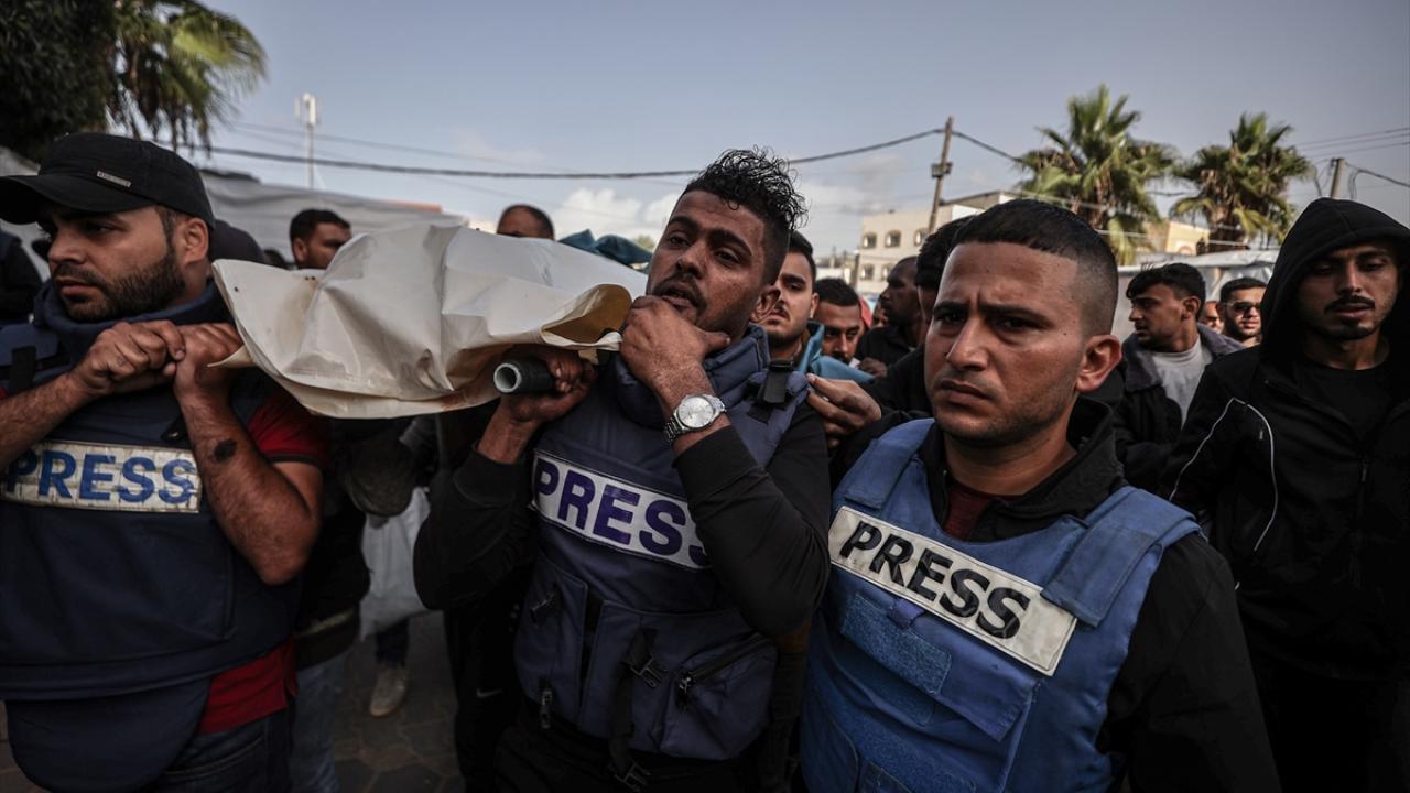 İsrail ordusunun Gazze Şeridi'ne düzenlediği saldırılarda hayatını kaybeden Filistinli gazeteci Sari Mansur ve Hasona Saliem için Deir Al Balah kentinde cenaze töreni düzenlendi. Törene katılan gazeteciler üzüntü yaşadı.