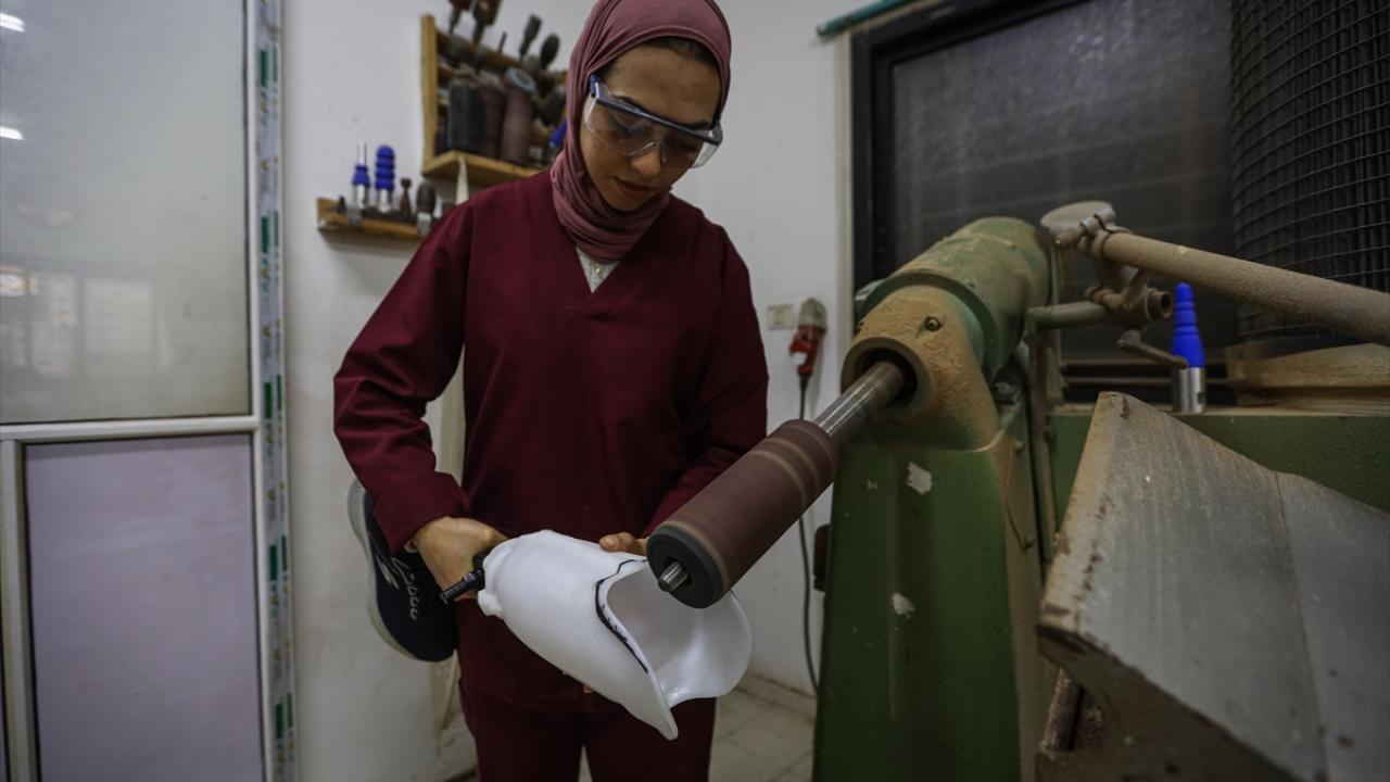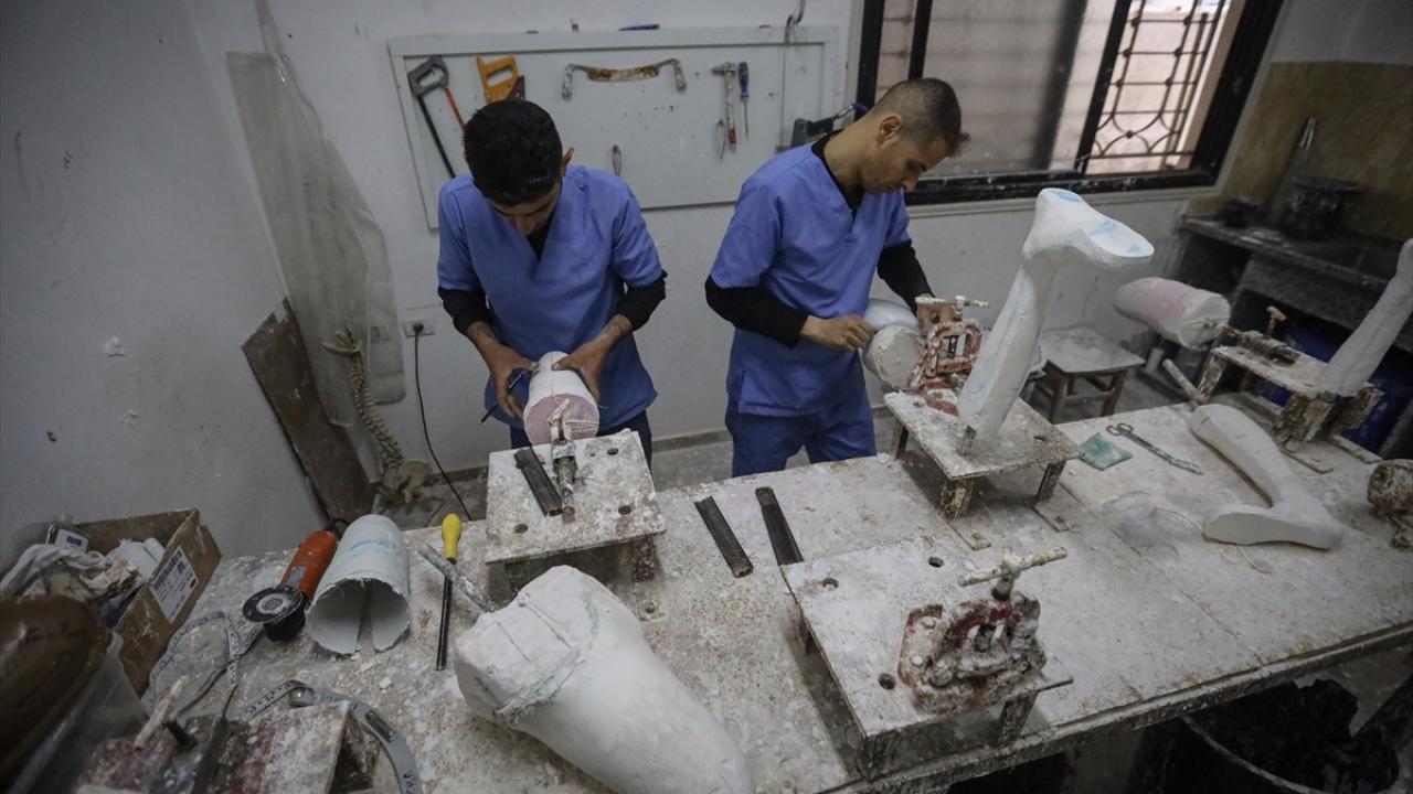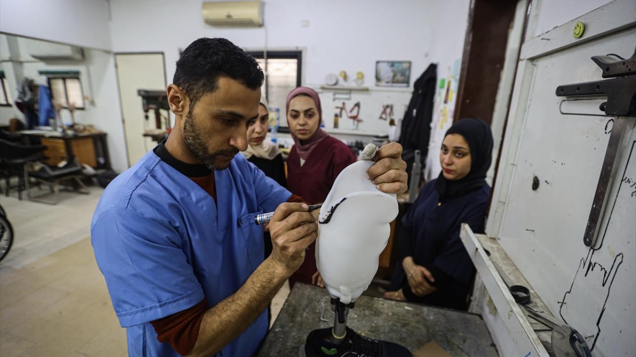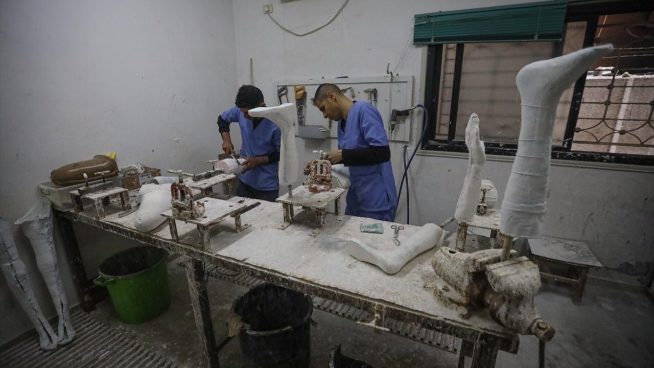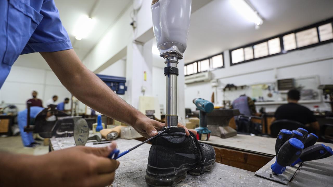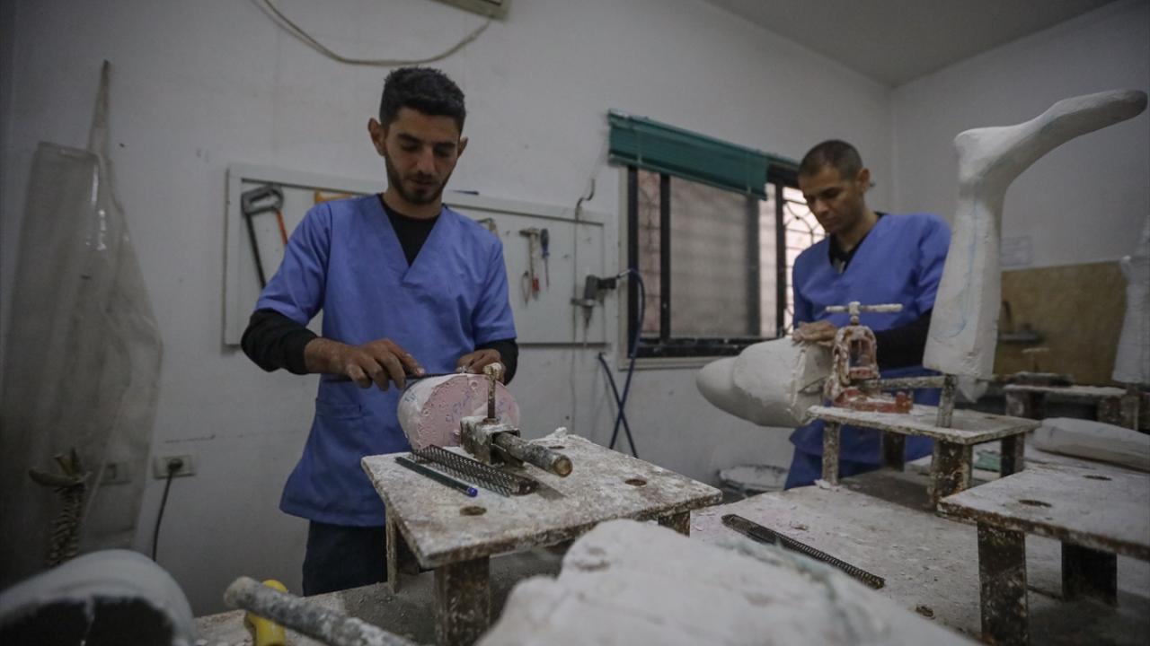 Gazze kentindeki Yapay Uzuvlar ve Rehabilitasyon Merkezi’nde saldırılarda kol veya bacağını kaybeden Filistinlilere, kısıtlı imkanlarla protez uzuv üretimi devam ediyor.