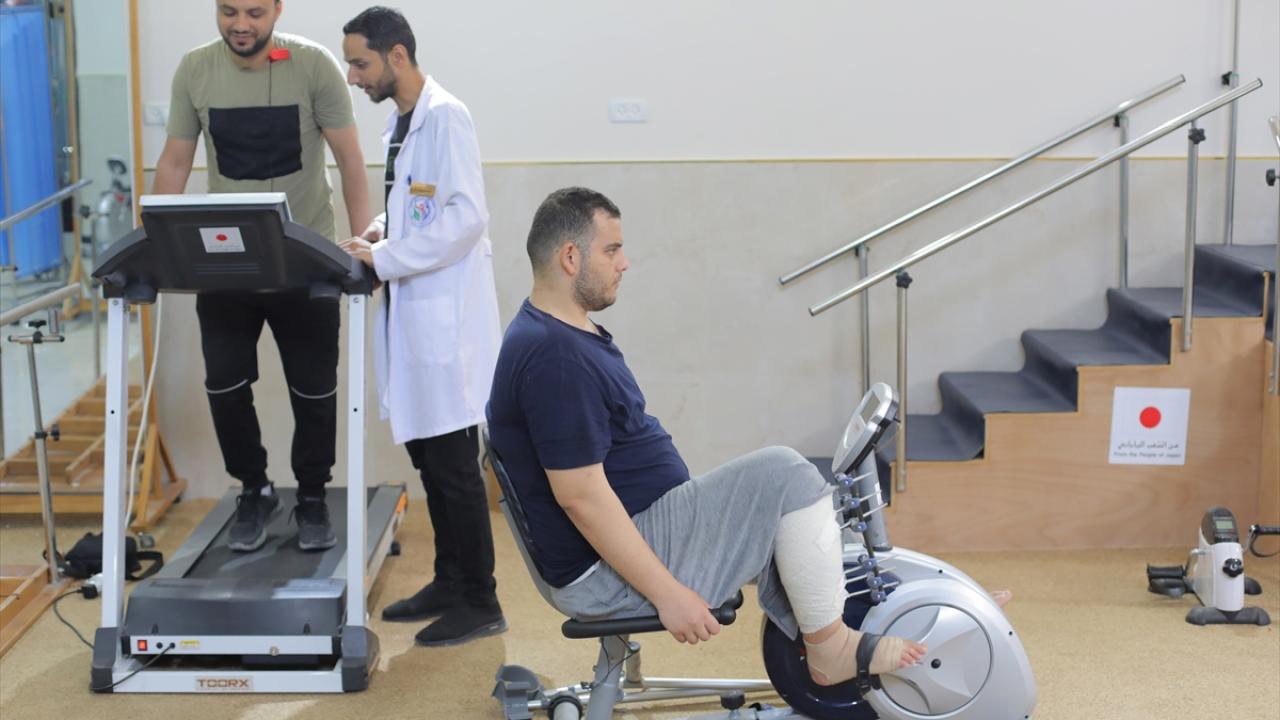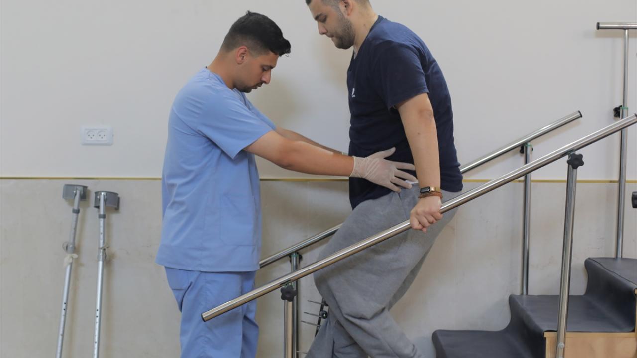 İsrail saldırılarında yaralanan Filistinliler, fizyoterapistler eşliğinde tedavi görüyor