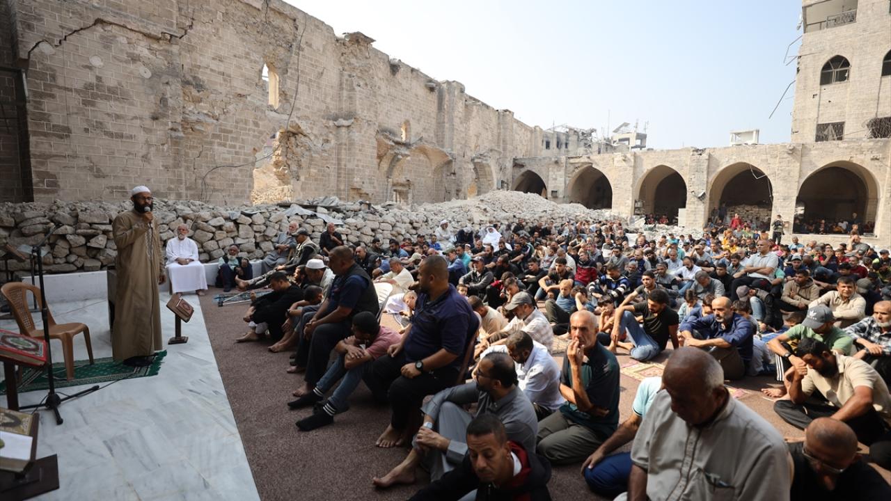 İsrail saldırılarında yıkıma uğrayan Büyük Ömer Camii'nde cuma namazı kılındı