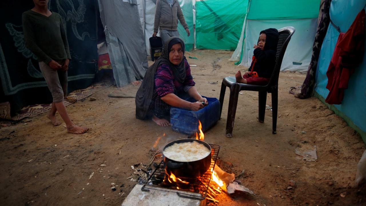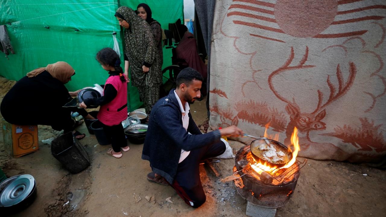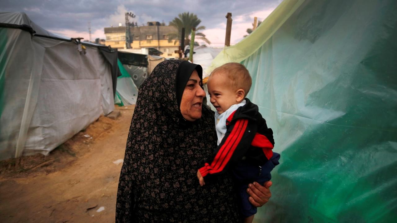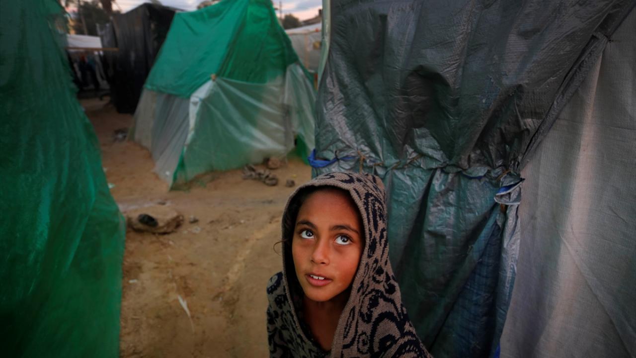 İsrail bombardımanından korunmak ve can güvenliklerini sağlayabilmek için evlerini terk edip Deyr Belah kentine sığınan Filistinli aileler, Aksa Şehitleri Hastanesi çevresinde kurdukları derme çatma çadırlarda soğuk hava şartlarıyla mücadele ediyor.