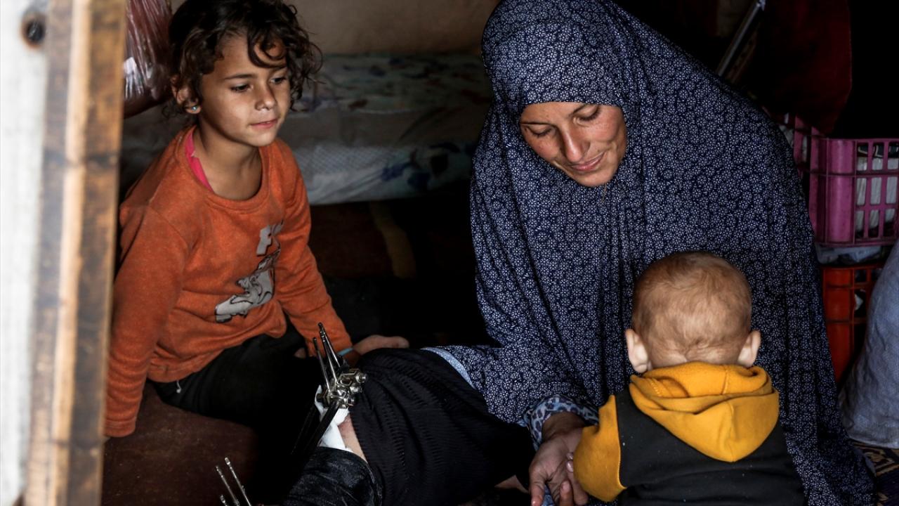 Saldırı sonucu sağ bacağında kırıklar oluşan ve vücudunun farklı bölgelerine şarapnel isabet eden dört çocuk annesi Rania, çocuklarına bakmakta ve günlük işlerini yapmakta zorluk yaşıyor.