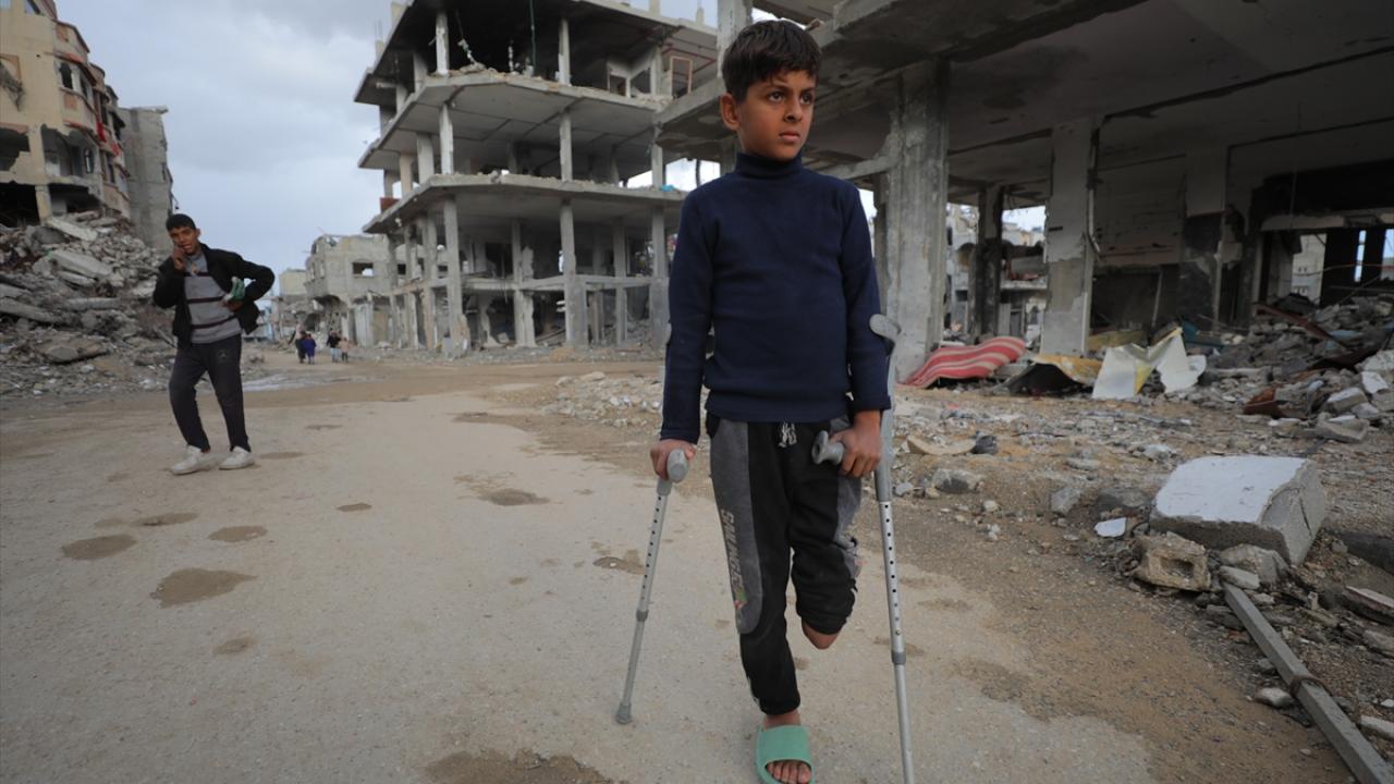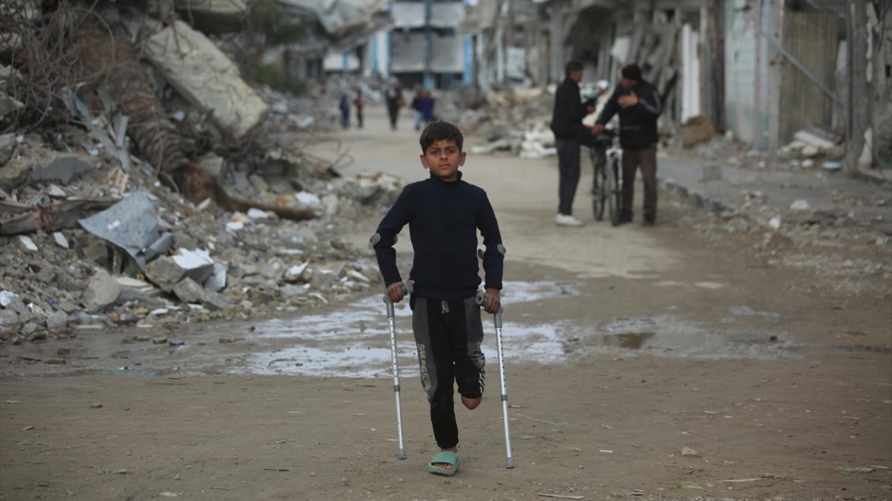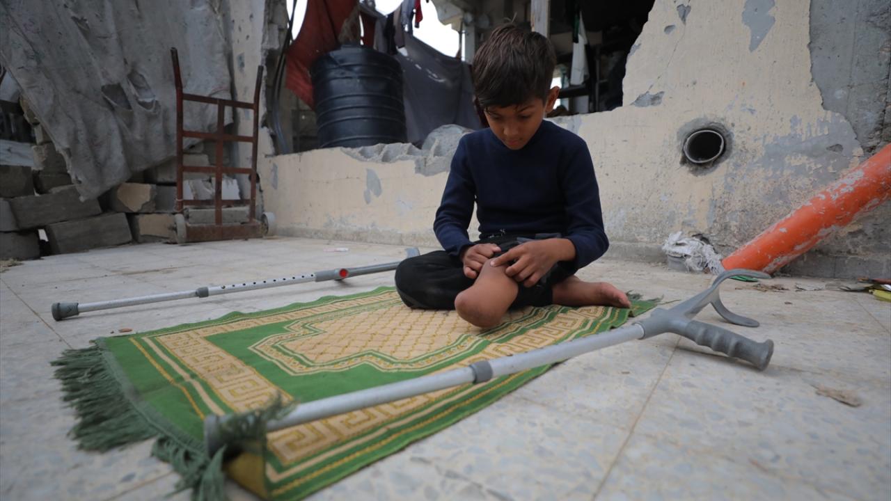 İsrail saldırılarında yaralanan ve sonrasında bir bacağı kesilen Abdul Rahman Nazir El Naşaş isimli 11 yaşındaki Filistinli çocuk, Gazze'de ateşkesin yürürlüğe girmesinin ardından Gazze Şeridi'nin orta kesimlerinde yer alan Bureyc Mülteci Kampı'ndaki evine döndü.