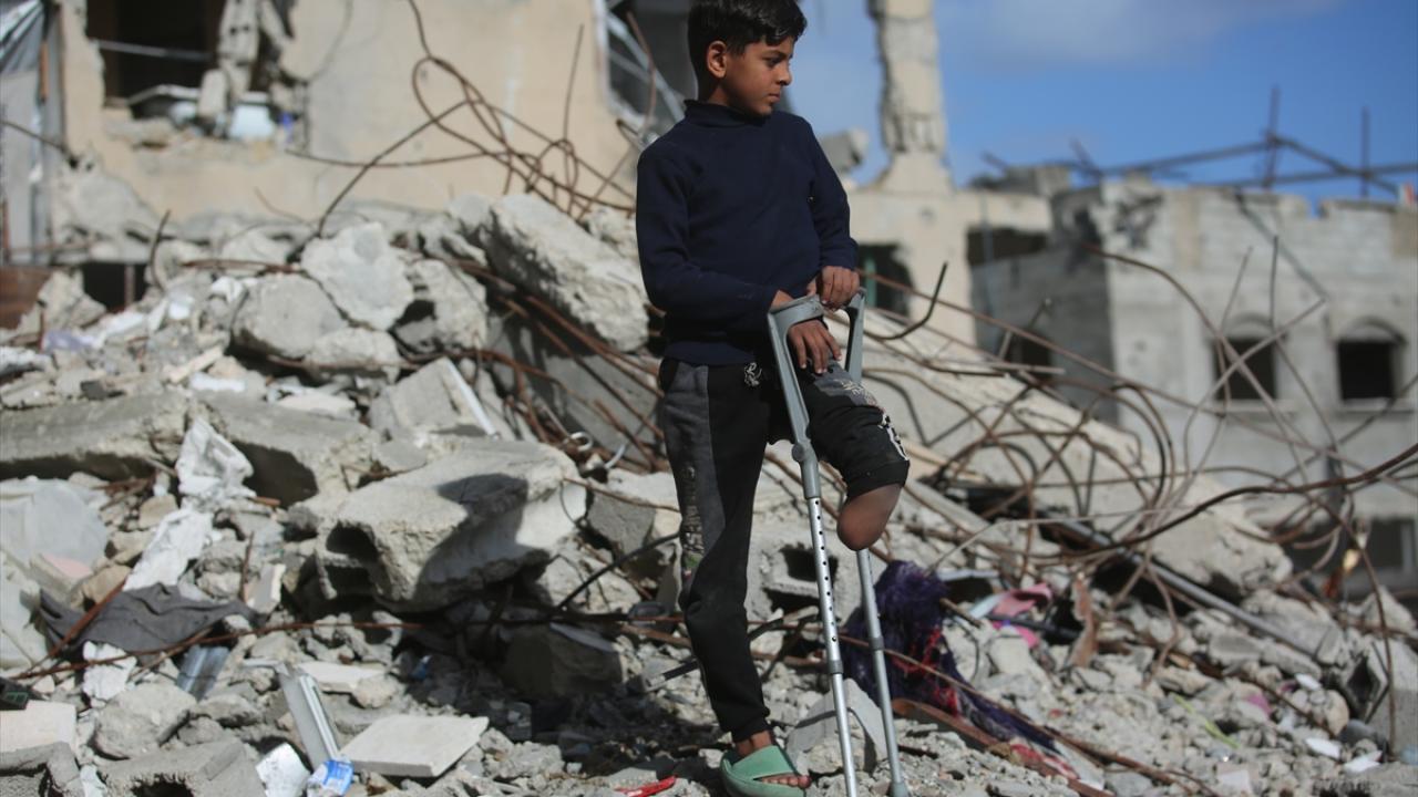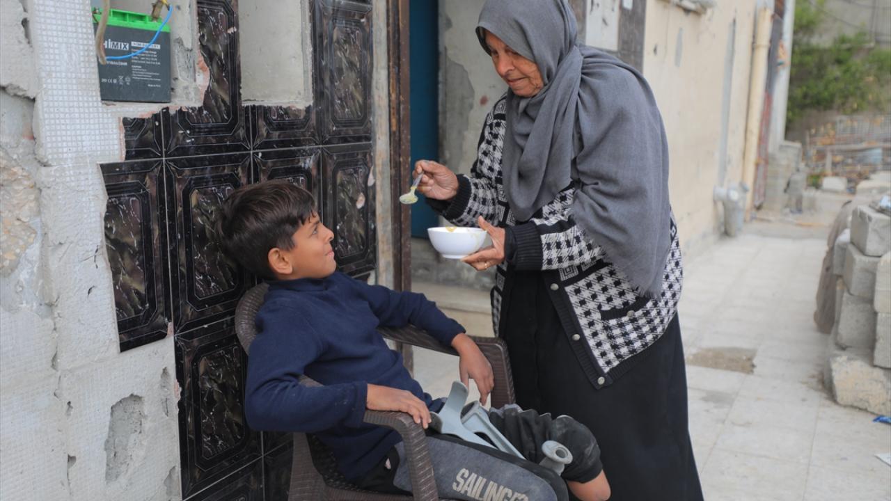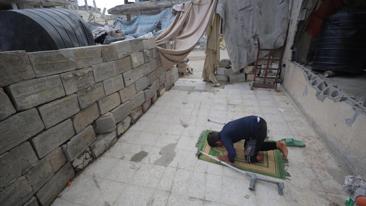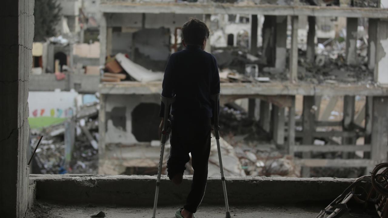 İsrail saldırılarında yaralanan ve sonrasında bir bacağı kesilen Abdul Rahman Nazir El Naşaş isimli 11 yaşındaki Filistinli çocuk, Gazze'de ateşkesin yürürlüğe girmesinin ardından Gazze Şeridi'nin orta kesimlerinde yer alan Bureyc Mülteci Kampı'ndaki evine döndü.