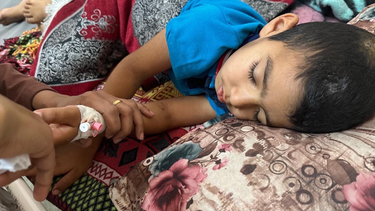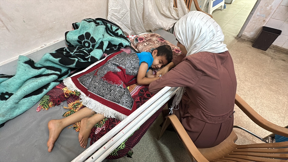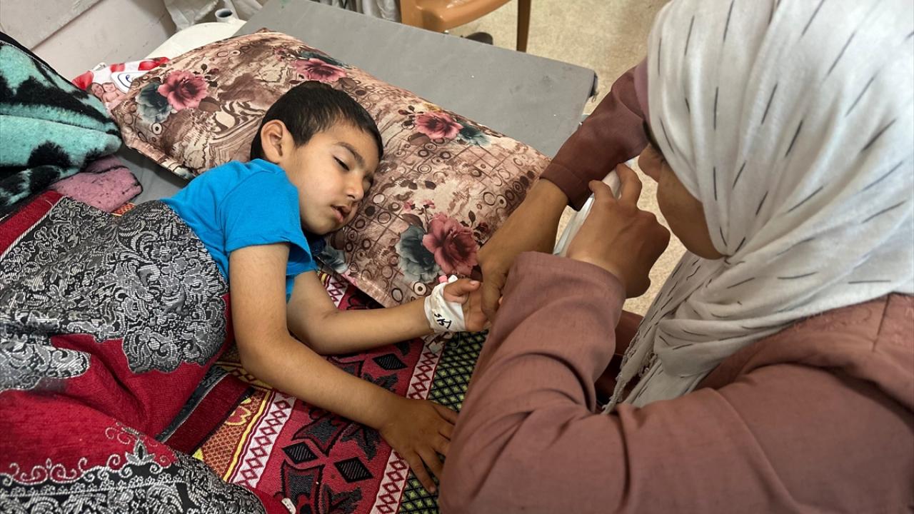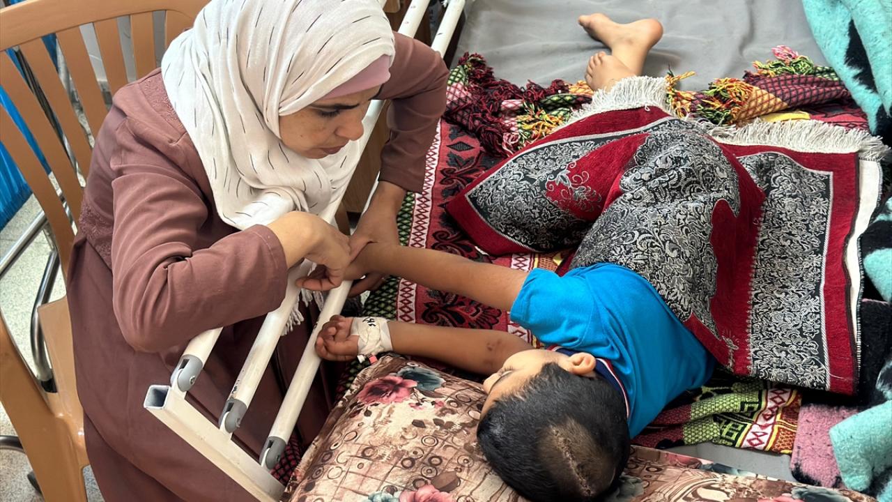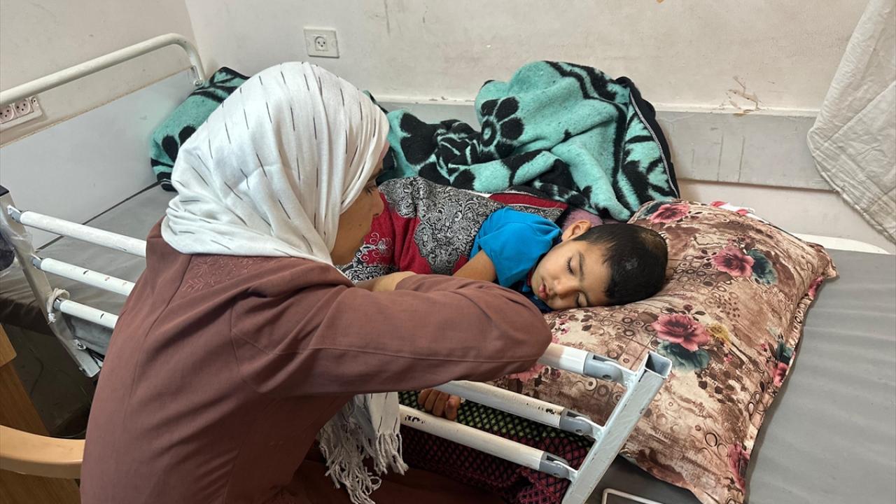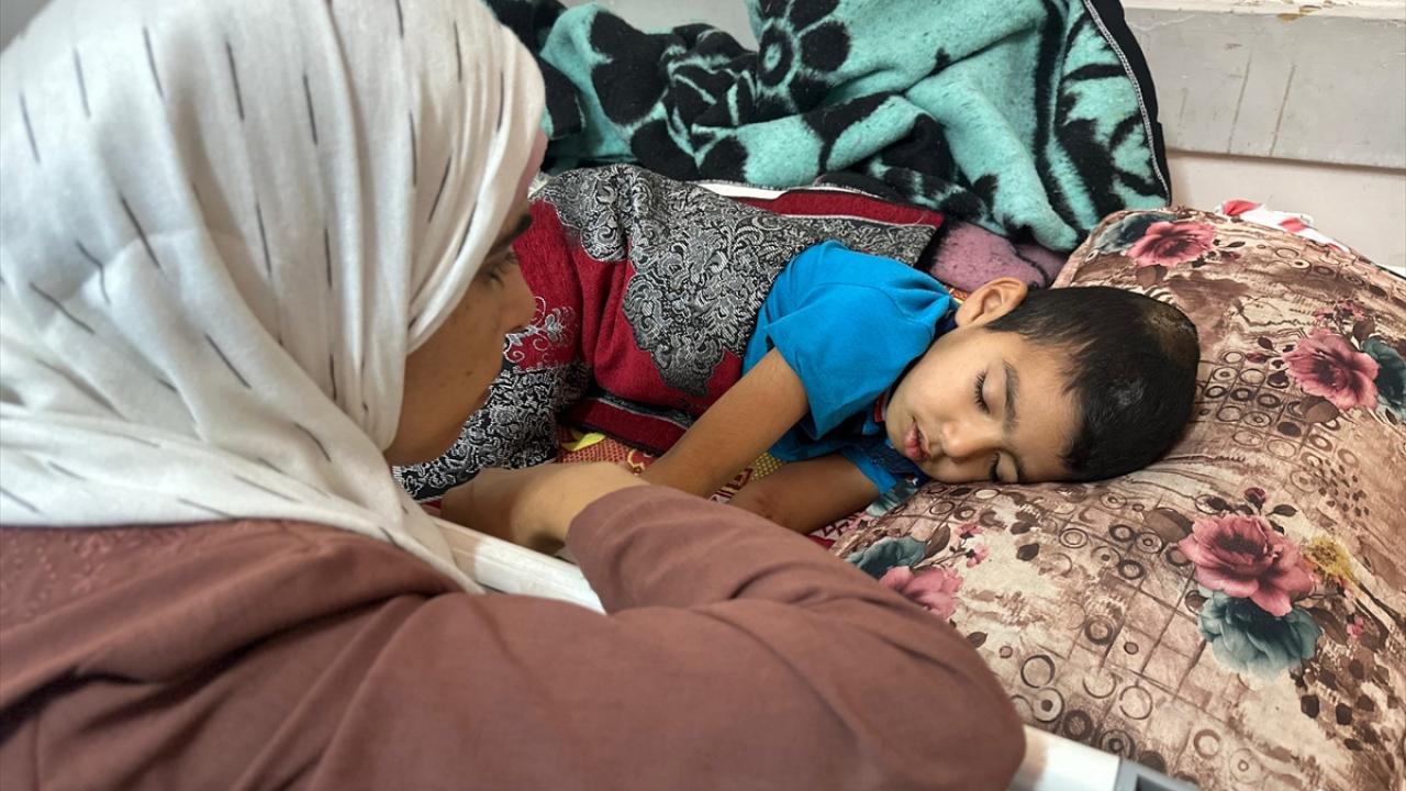 Filistinli Neema İmad (38), İsrail saldırısında başından aldığı isabet sonucu ağır yaralanan, vücudunun sol kısmı felçli kalan ve görme kaybı yaşayan oğlu 3 yaşındaki Muhammed İmad ile Al-Bureij kampında yaşam mücadelesi veriyor.