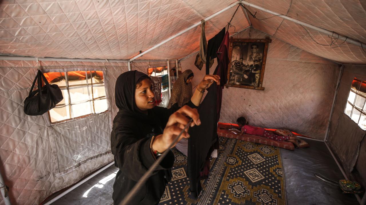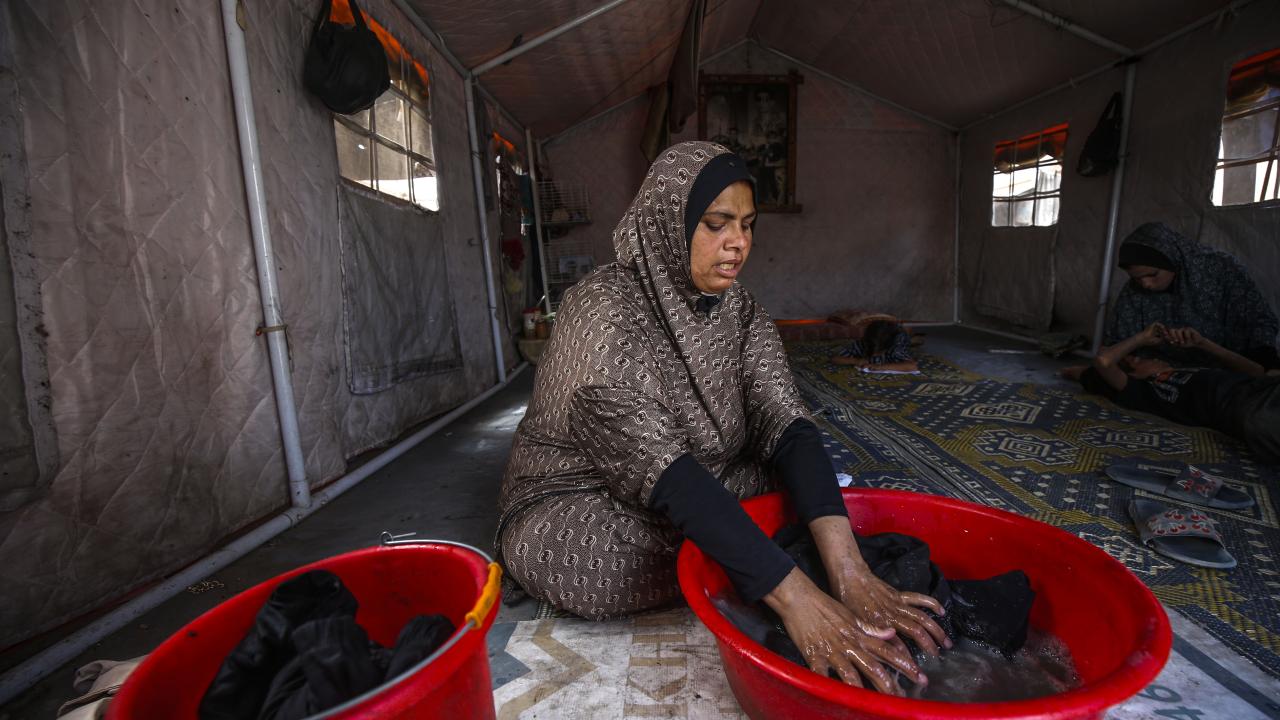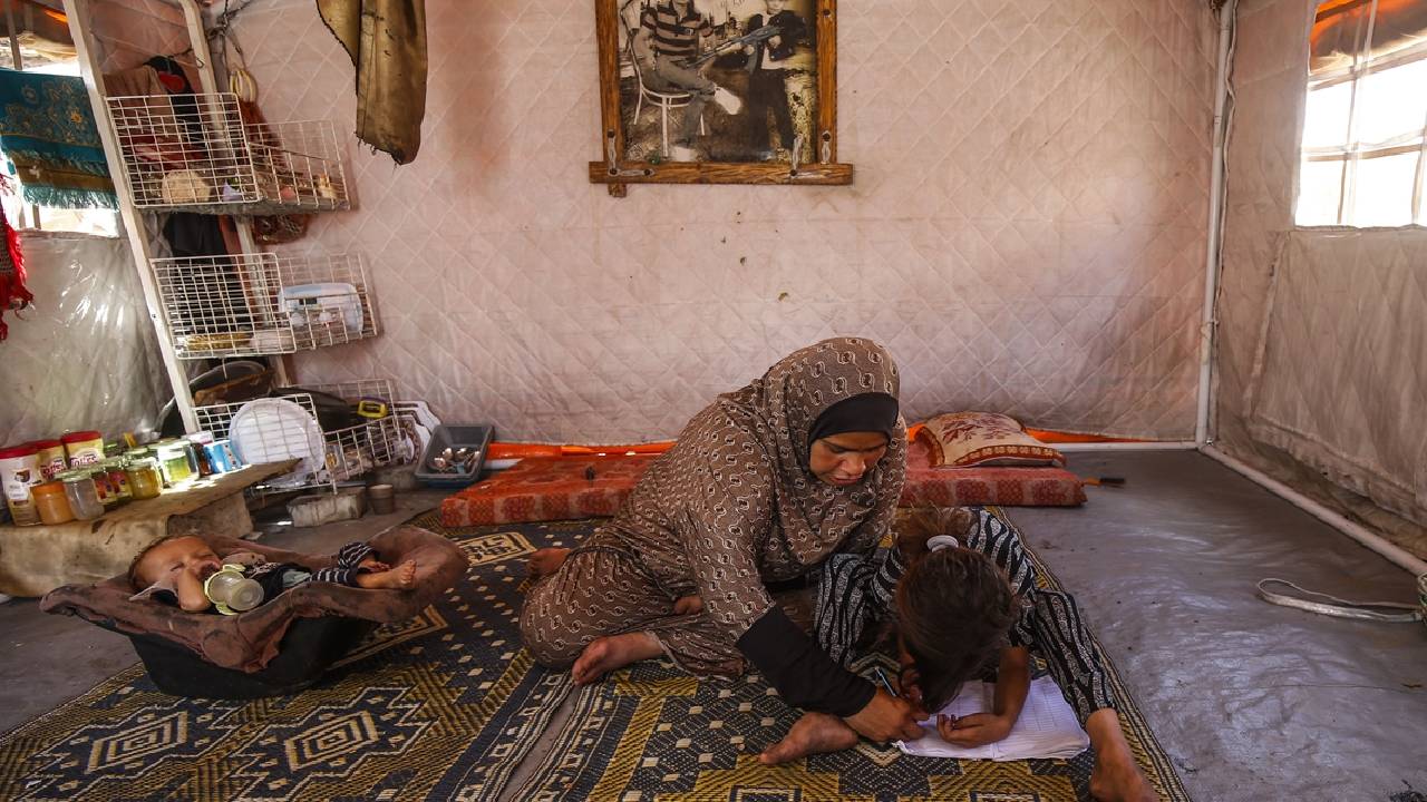 İsrail saldırısında eşini kaybeden Filistinli kadın, 9 çocuğuyla çadırda hayatta kalma mücadelesi veriyor