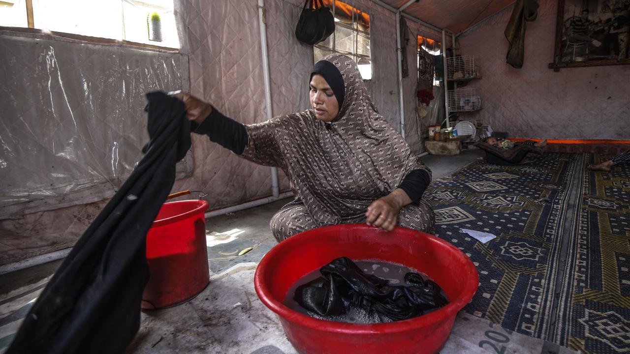 İsrail'in Gazze'ye yönelik saldırılarında eşini kaybeden 38 yaşındaki Mervet Hicazi, 9 çocuğuyla birlikte Gazze kentinde bir çadırda yaşam mücadelesi veriyor.