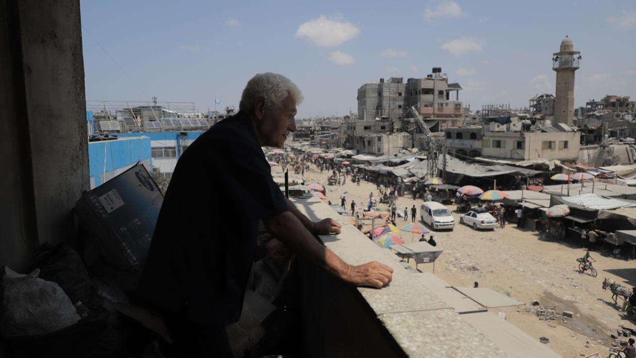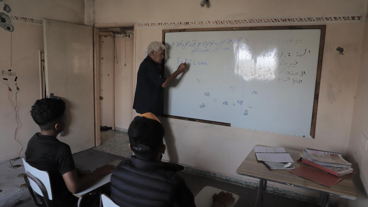 İsrail ordusunun Gazze'nin kuzeyindeki Cibalya Mülteci Kampı'na düzenlediği saldırılarda evi yıkılan fizik ve matematik öğretmeni Hişam Salim (70), eşiyle görev yaptığı okula sığınmak zorunda kaldı.