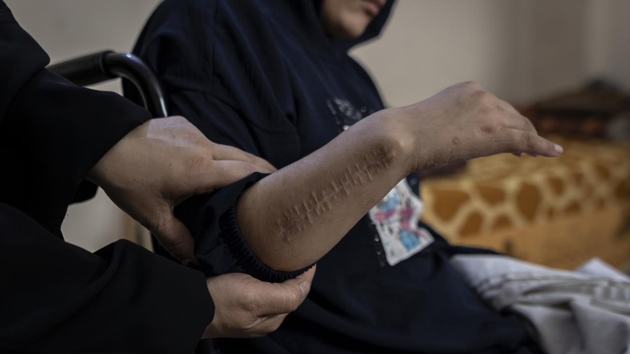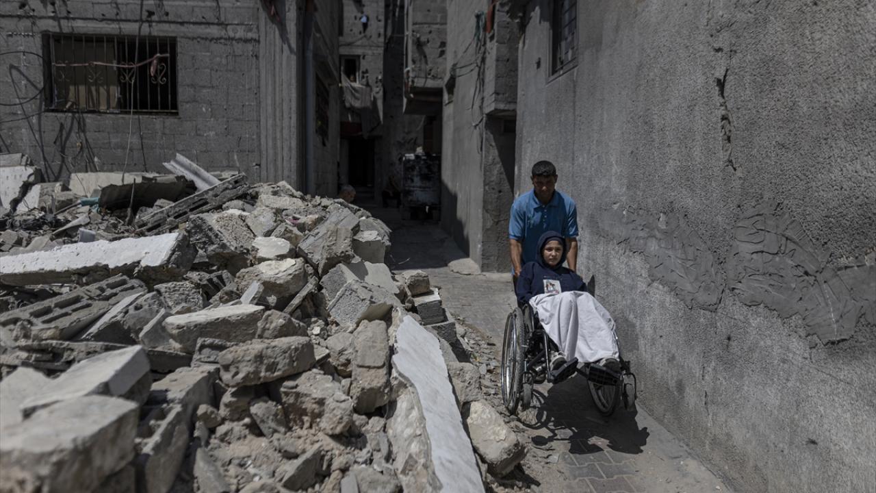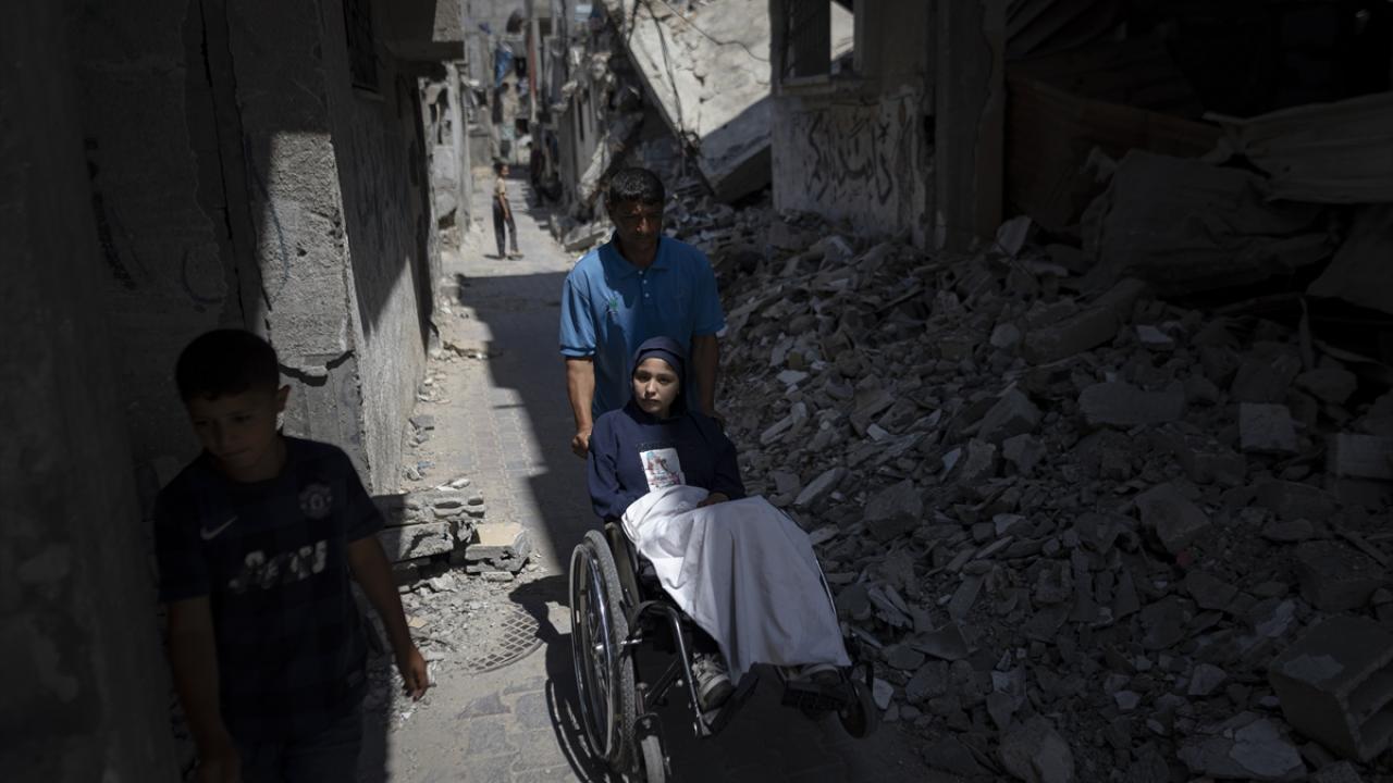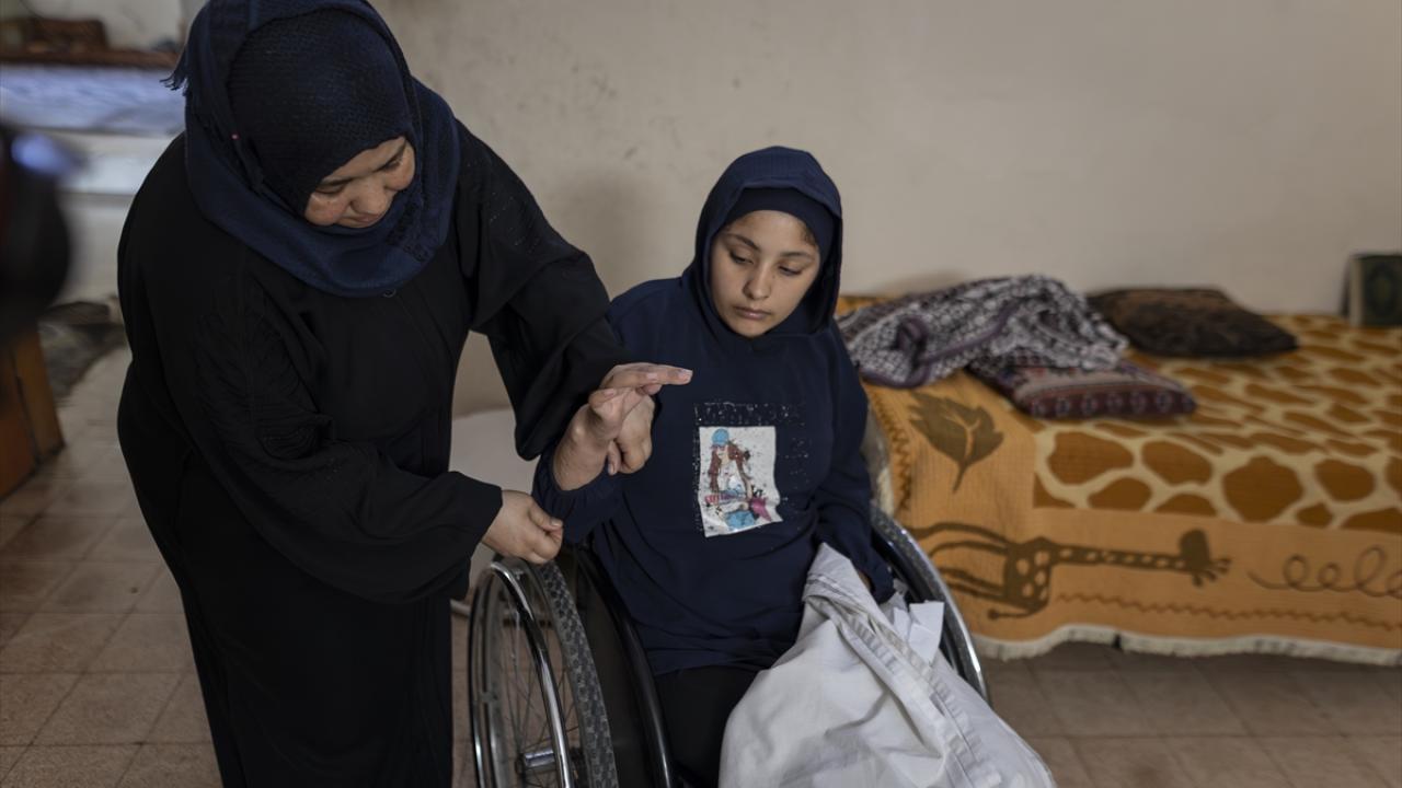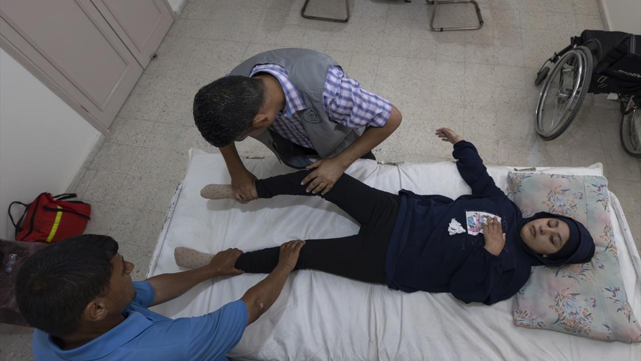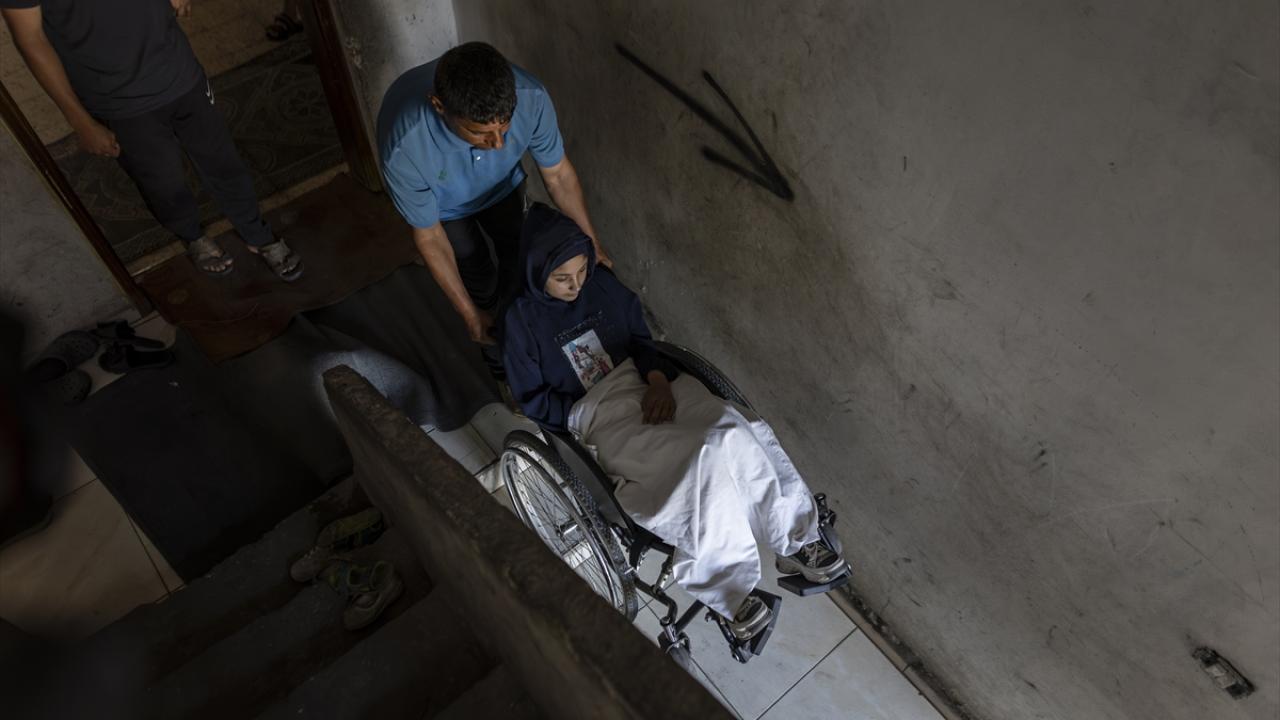 İsrail ordusunun, Gazze Şeridi’nin orta kesimindeki Bureyc Mülteci Kampı’nda yerinden edilenlerin sığındığı Ebu Hamise Okulu’nu hedef alması sonucu felç kalan 13 yaşındaki Talaa Mit, yeniden yürüyebilmeyi ümit ediyor.