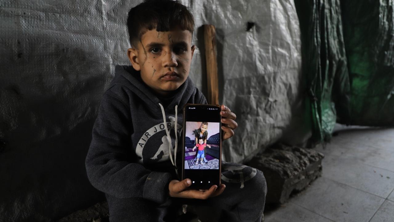 İsrail’in Gazze Şeridi’nin orta kesimindeki Nuseyrat Mülteci Kampı’ndaki evine düzenlediği saldırıda 13 yakınını kaybeden 5 yaşındaki Filistinli çocuk Adem Süleyman Ebu Halib, enkaz altından sağ çıkarıldı.