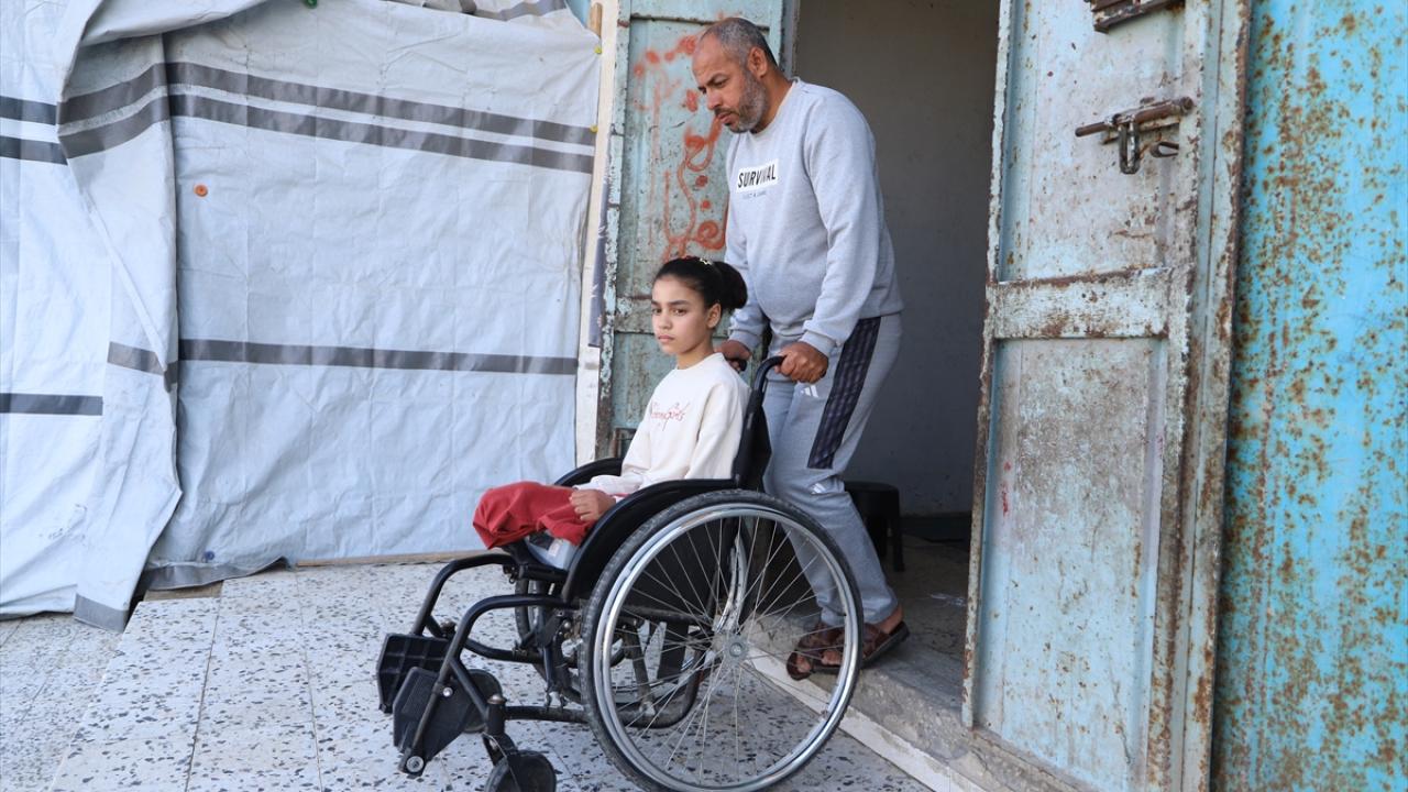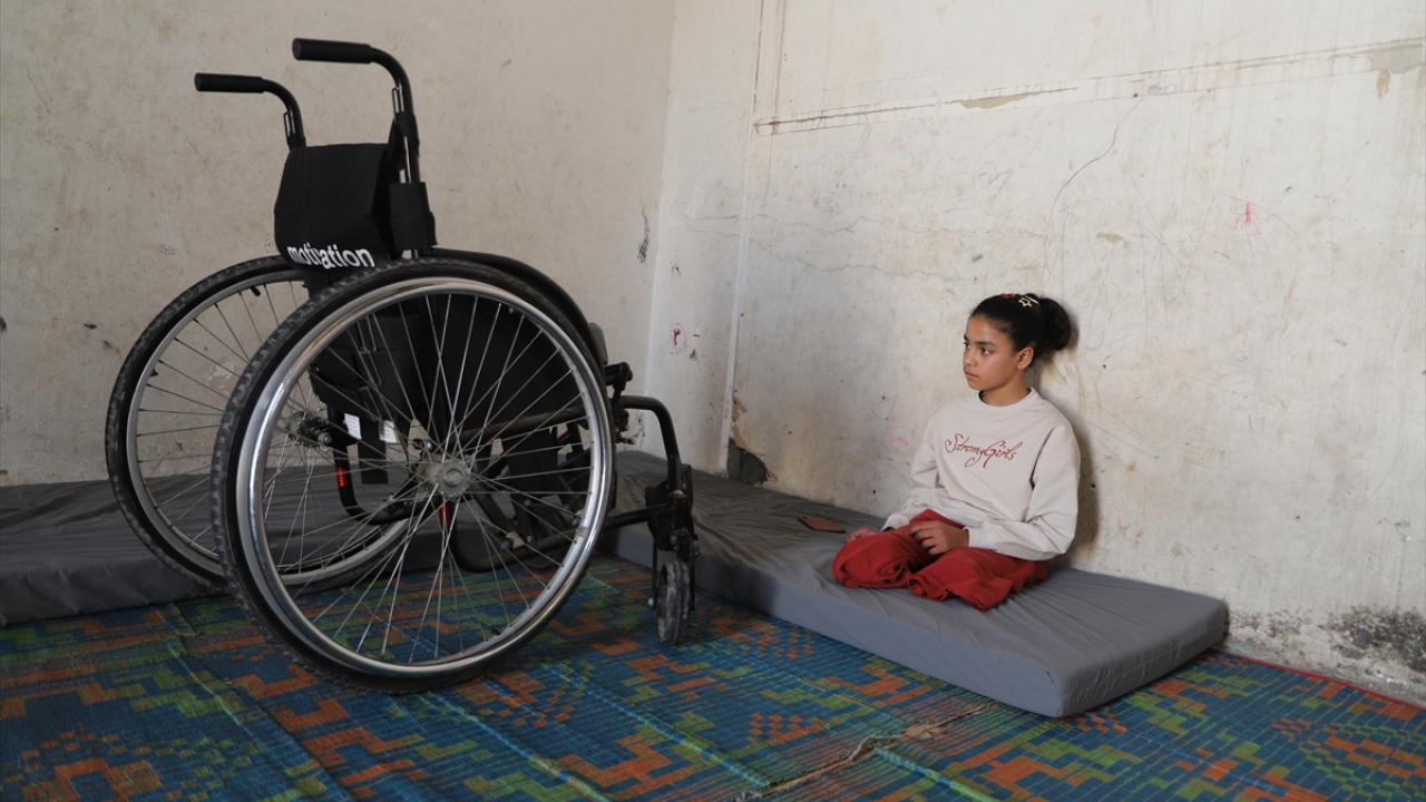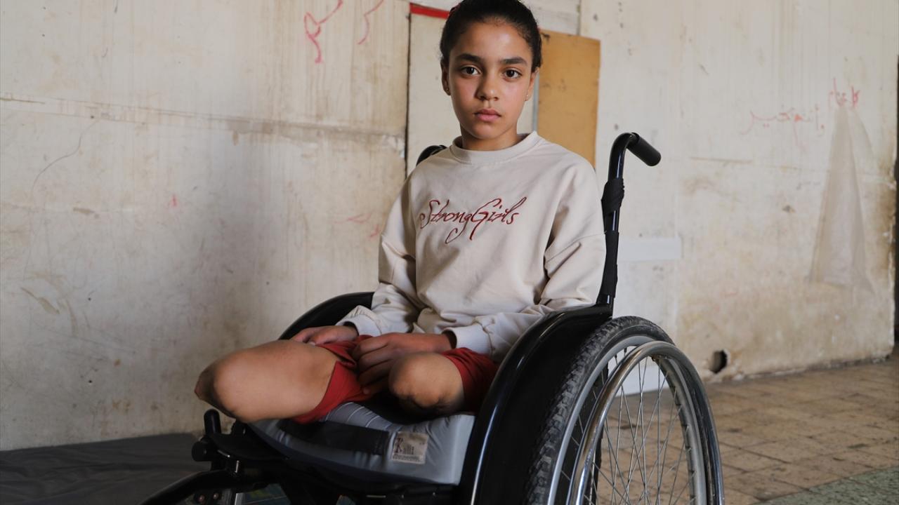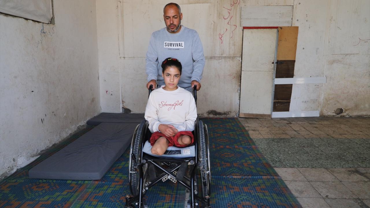Soykırımcı İsrail'in Gazze kentindeki Nasr Mahallesi'ne düzenlediği saldırı sonucu iki bacağını da kaybeden 12 yaşındaki Filistinli Rama Rabah Hicazi, terlekli sandalyeye mahkum oldu.