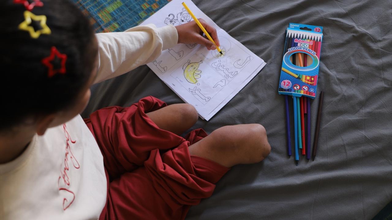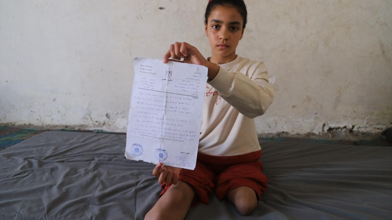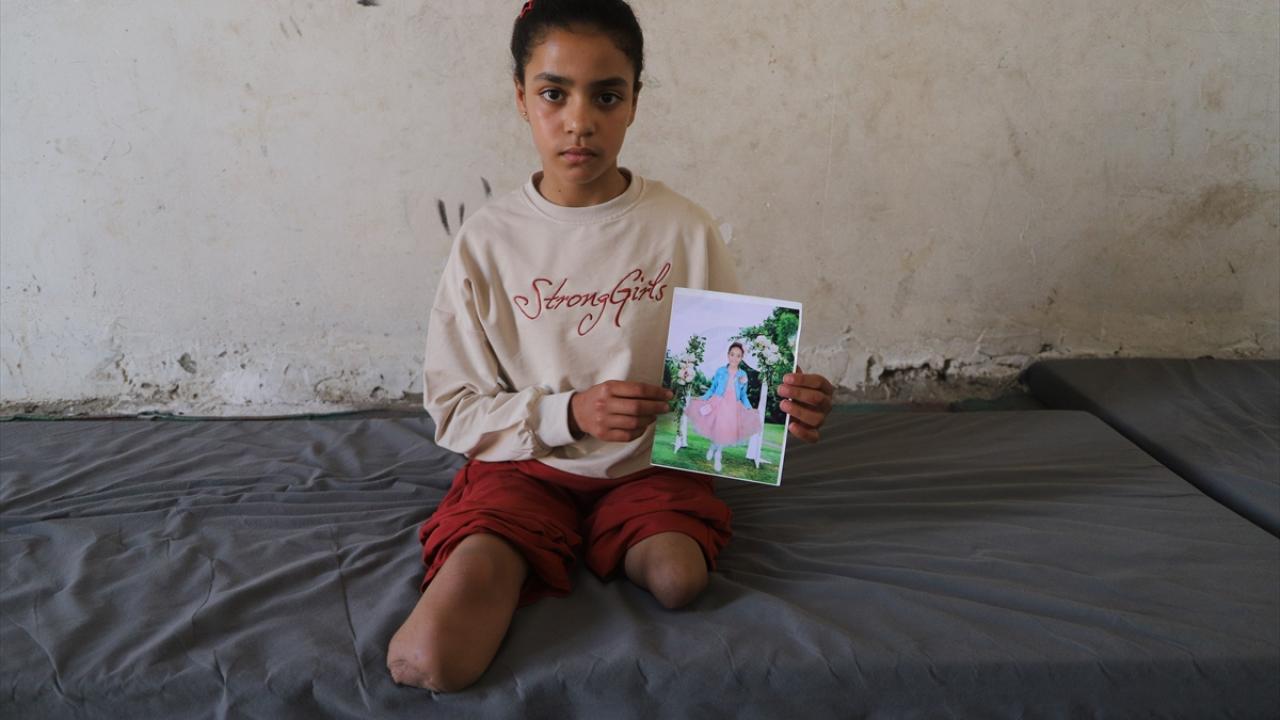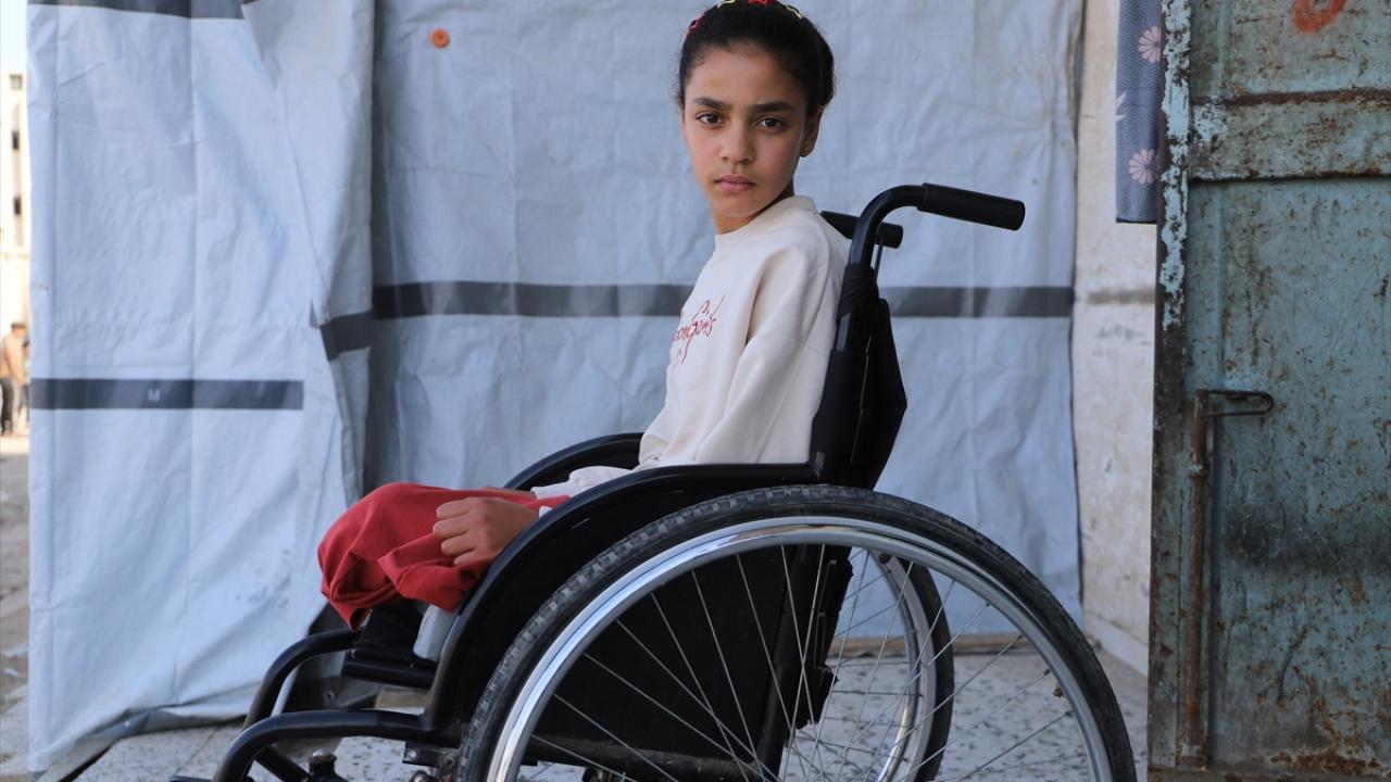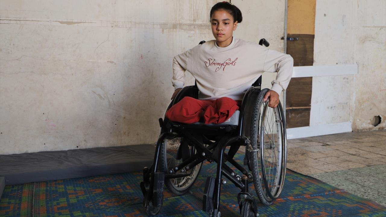 Soykırımcı İsrail'in Gazze kentindeki Nasr Mahallesi'ne düzenlediği saldırı sonucu iki bacağını da kaybeden 12 yaşındaki Filistinli Rama Rabah Hicazi, terlekli sandalyeye mahkum oldu.