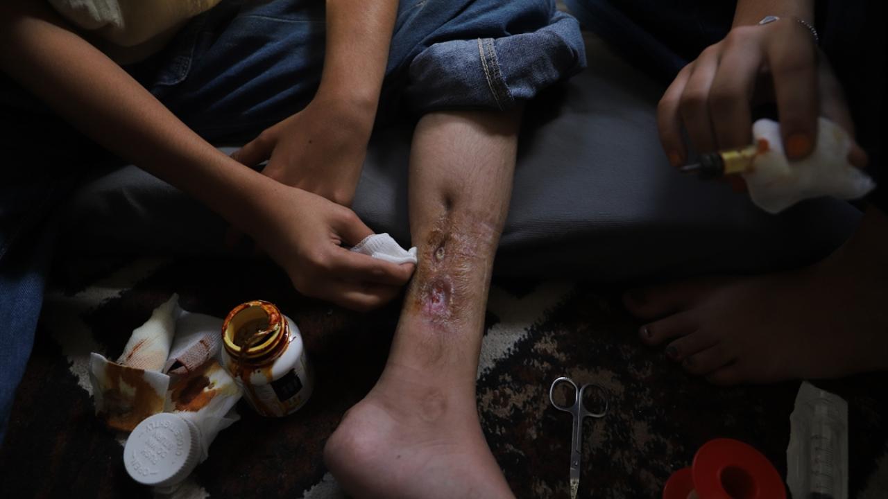 Gazze kentinde bir akrabasının yanında derme çatma bir çadırda hayatını sürdürmeye çalışan Dima, enfeksiyon ve doku hasarının ilerlemesi nedeniyle bir bacağının kesilme riskiyle karşı karşıya.