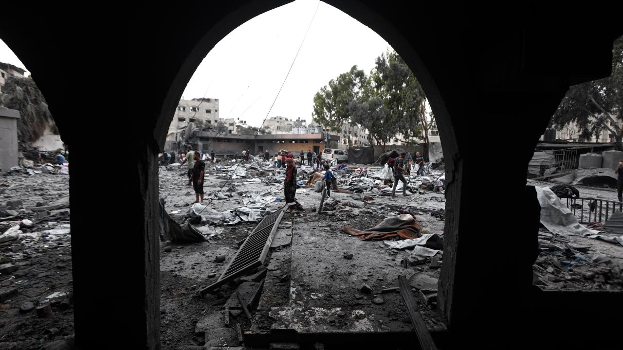 Saldırıda, yerinden edilmiş Filistinlilerin kaldığı çadırlarla birlikte okul tamamen yıkıldı.