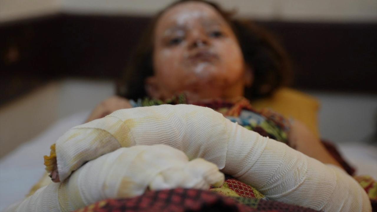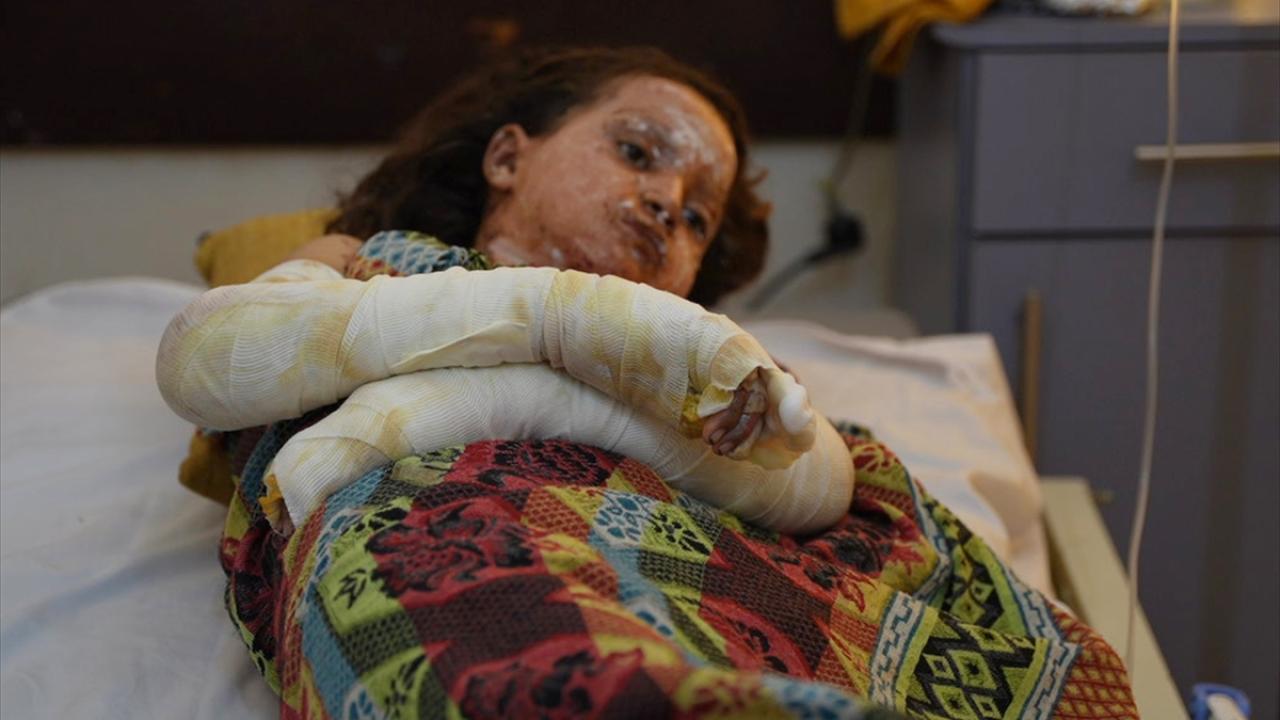 İsrail ordusunun Gazze'nin Deyr Balah kentinde Filistinlilerin sığındığı Rufaida Okulu ve çevresini hedef alması sonucu vücudunda yanık ve yaralar oluşan 13 yaşındaki Li'an Talal El-Hammadin, Aksa Şehitleri Hastanesi'nde kısıtlı imkanlarla tedavi görüyor.
