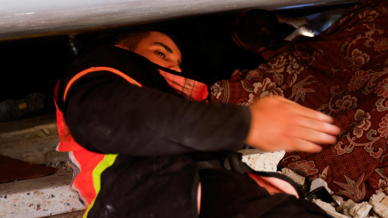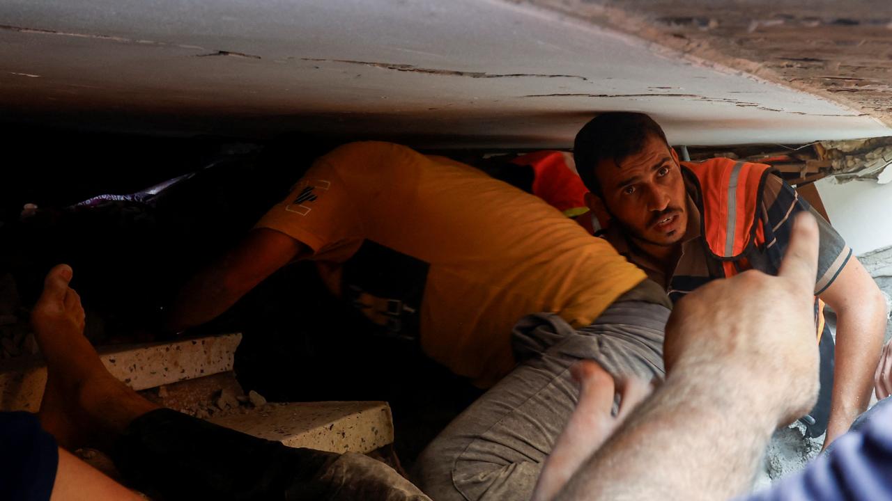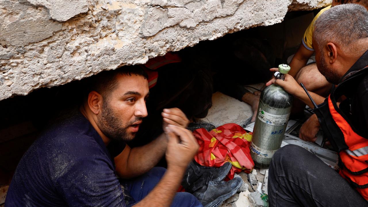 Kurtarma ekipleri, Gazze Şeridi'nin güneyindeki Refah'ta İsrail saldırılarında yıkılan binalardan insanları kurtarma çalışmaları yürütüyor.