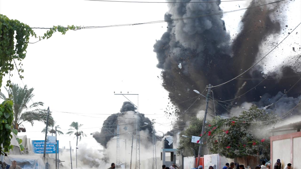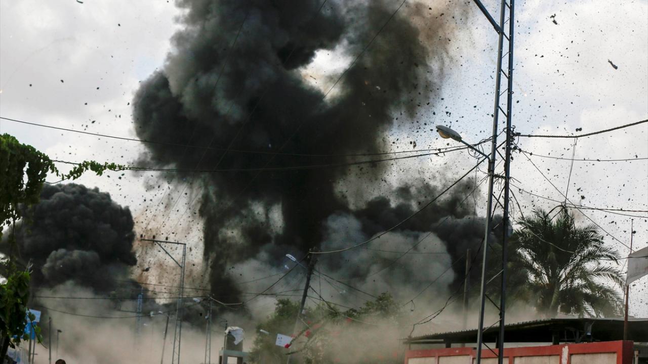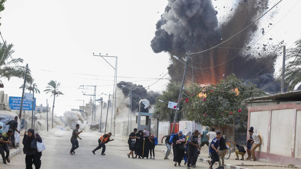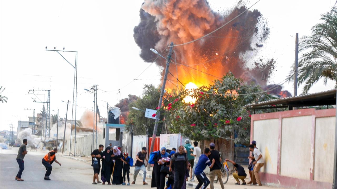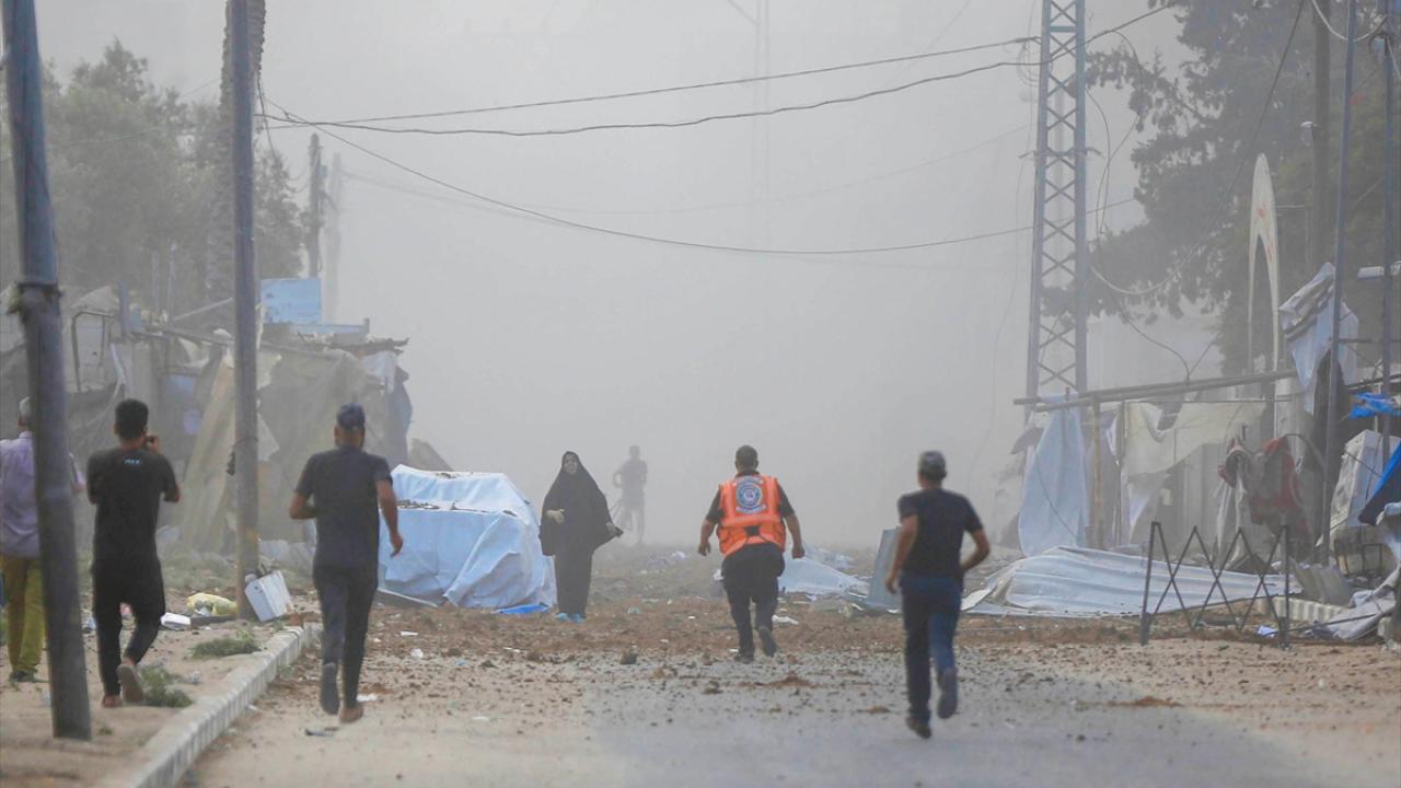 İsrail savaş uçakları, Gazze Şeridi’nin orta kesimindeki Deyr Belah kentinde yerinden edilmiş Filistinlilerin sığındığı çadırlara gerçekleştirdiği bombardıman anları görüntülendi.