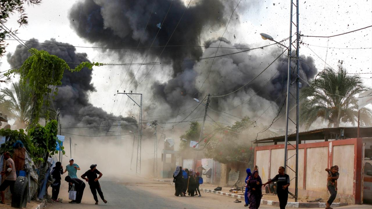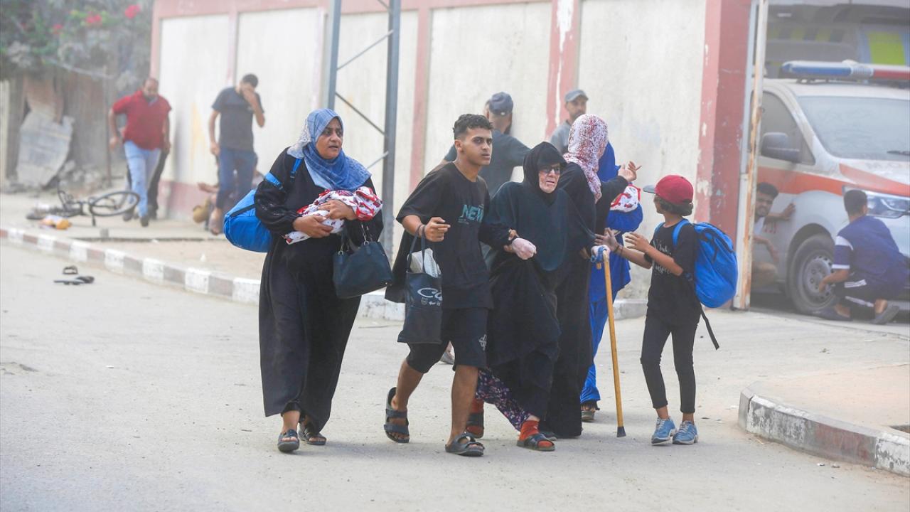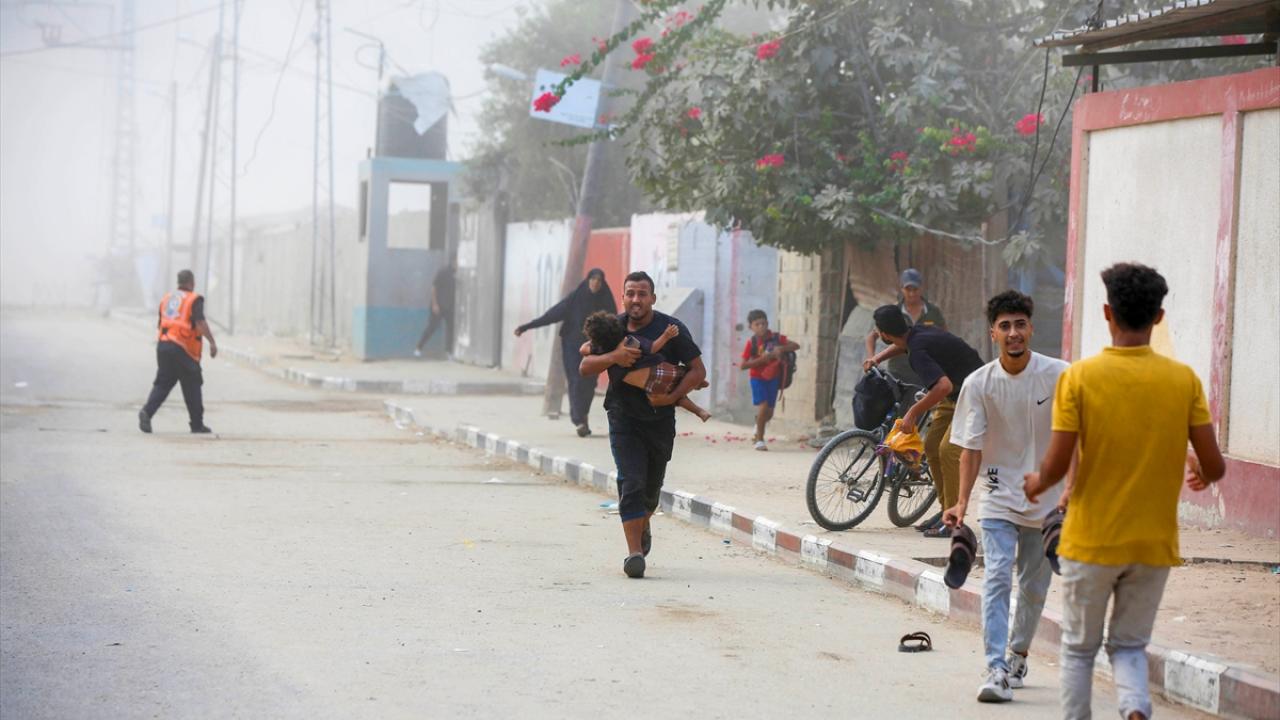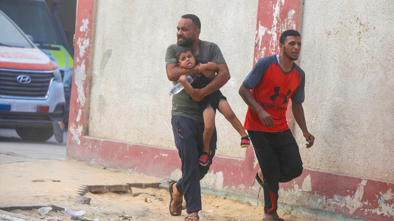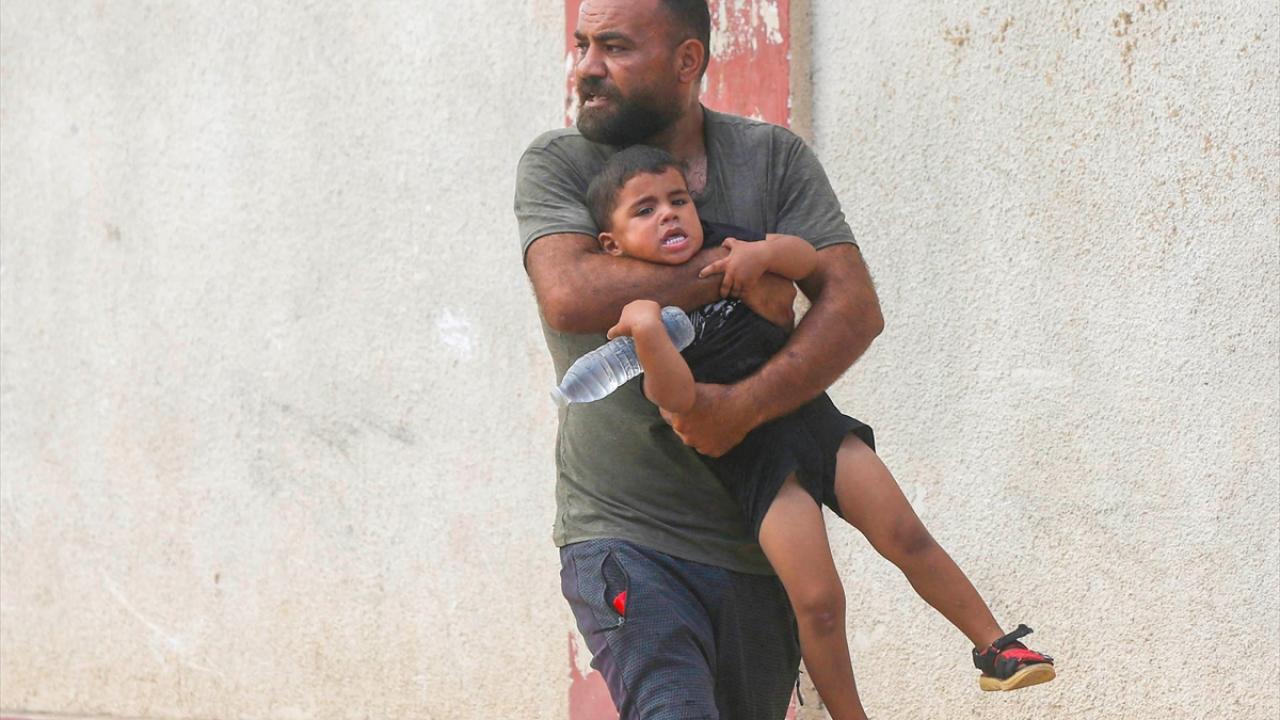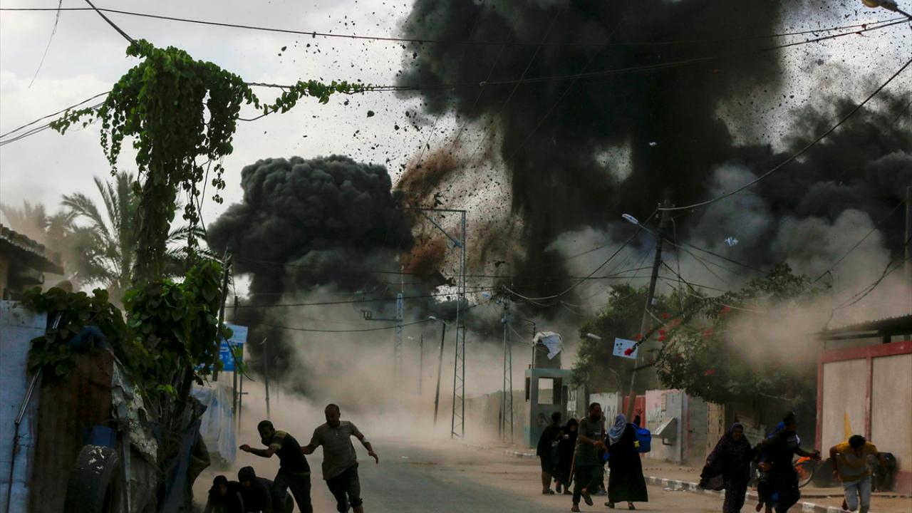 İsrail savaş uçakları, Gazze Şeridi’nin orta kesimindeki Deyr Belah kentinde yerinden edilmiş Filistinlilerin sığındığı çadırlara gerçekleştirdiği bombardıman anları görüntülendi.