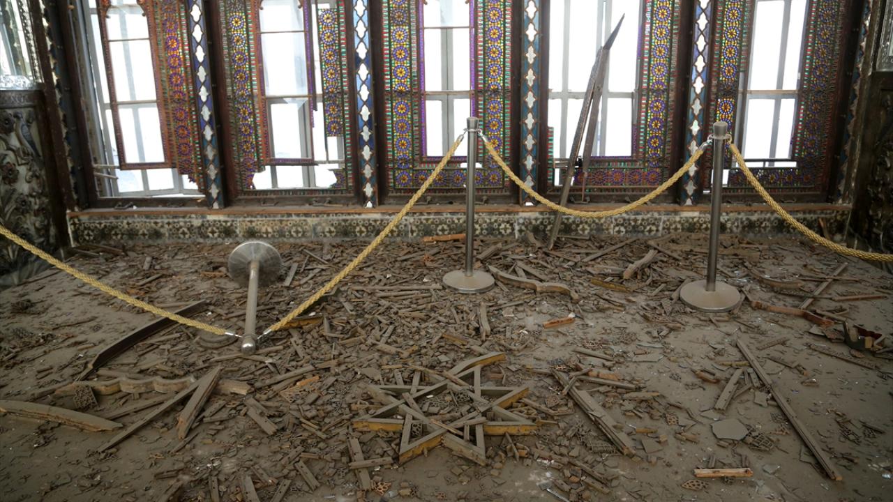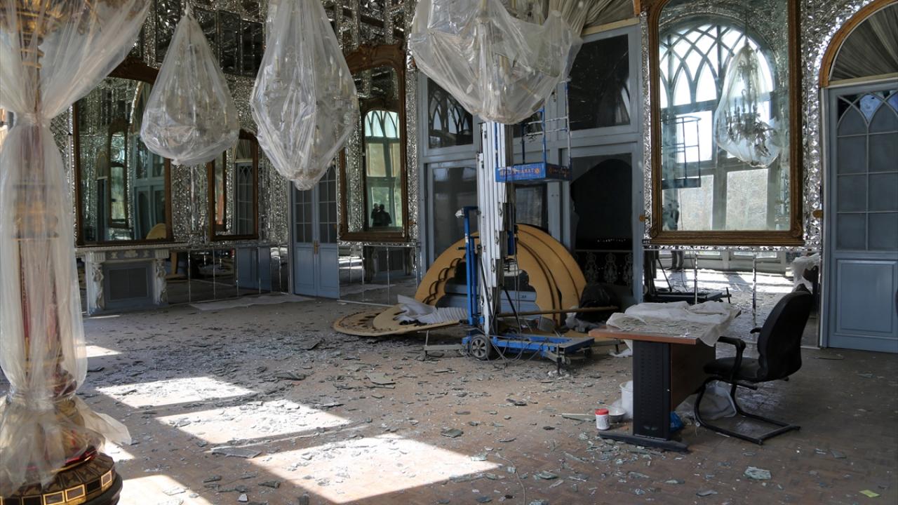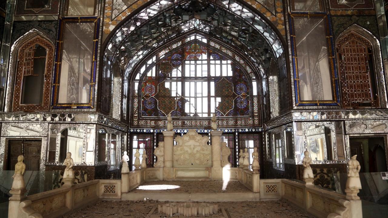 AA ekibi, İran’da yıllarca Kaçar Hanedanlığı’nın yönetim merkezi olarak kullandığı Gülistan Sarayı’nda oluşan hasarı yerinde görüntüledi.