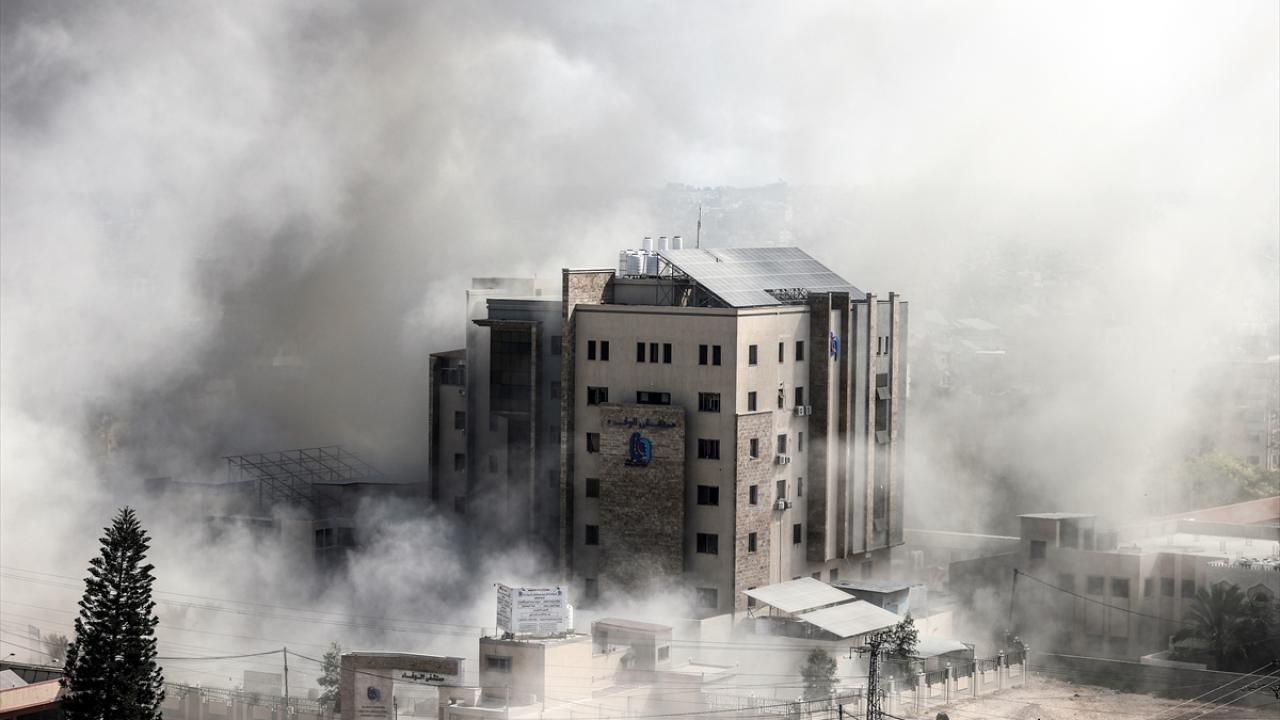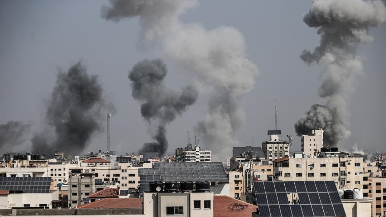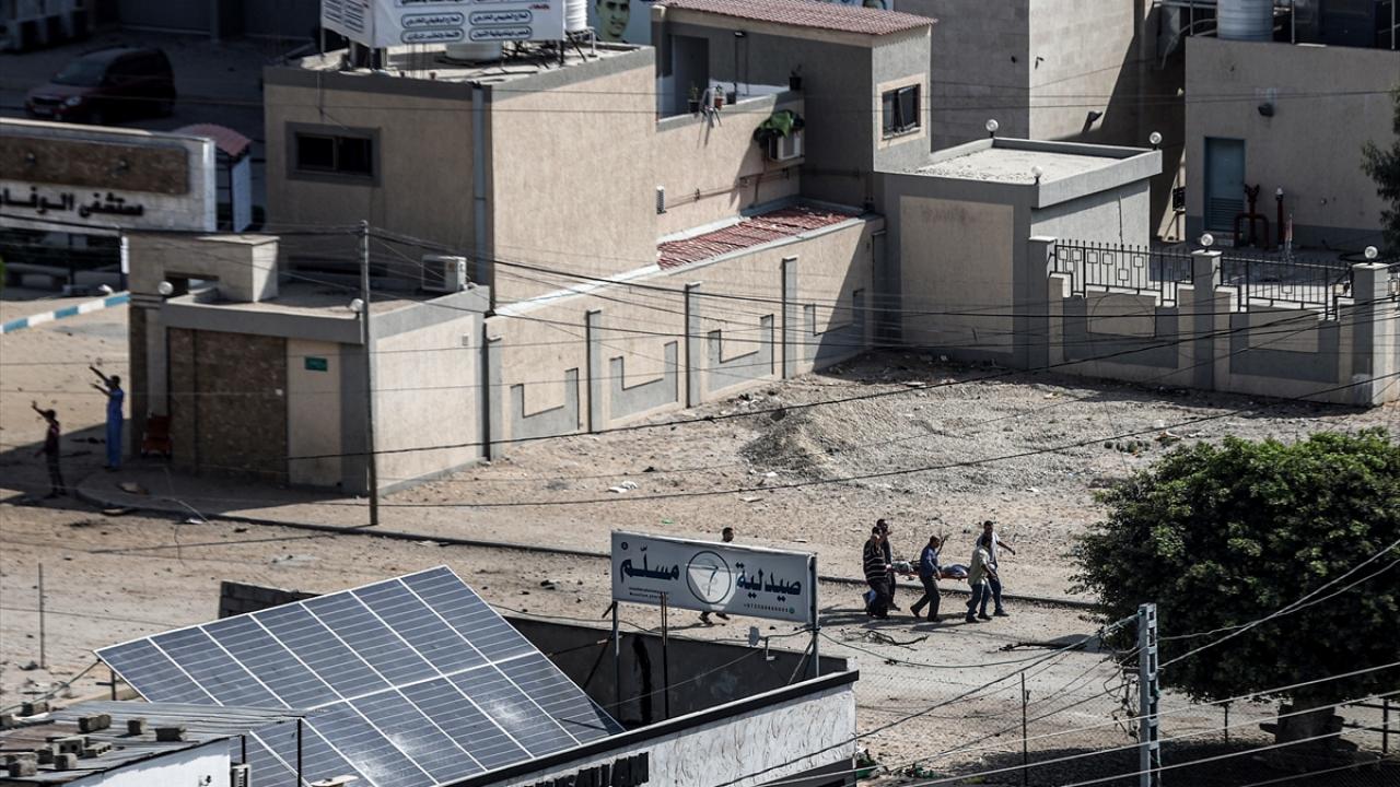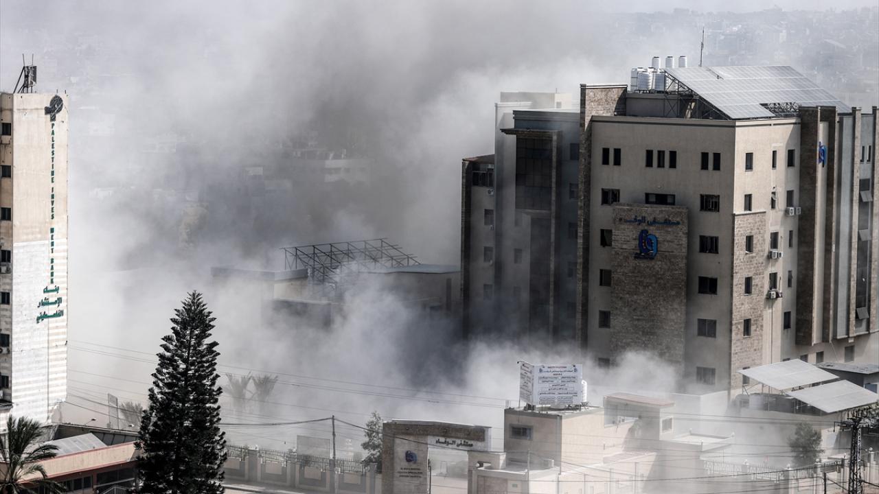 İsrail ordusunun hastanenin yakınını vurmasının ardından bölgeden dumanlar yükseldi.