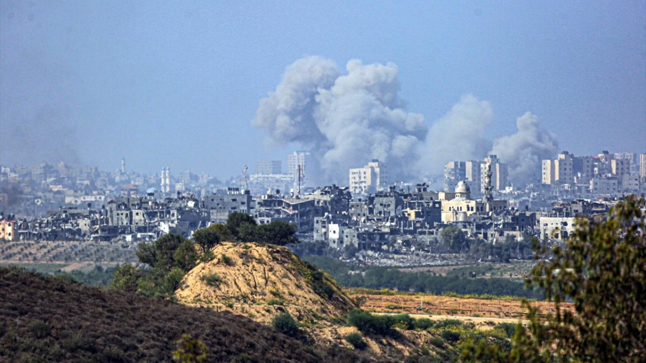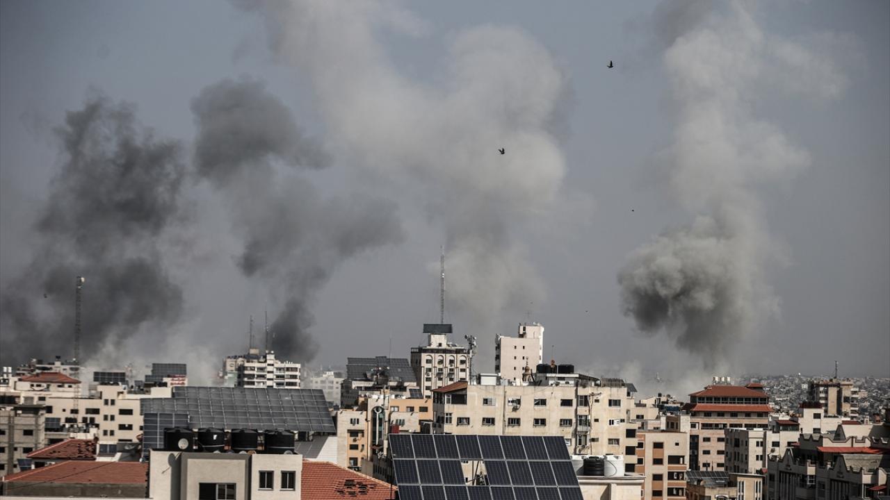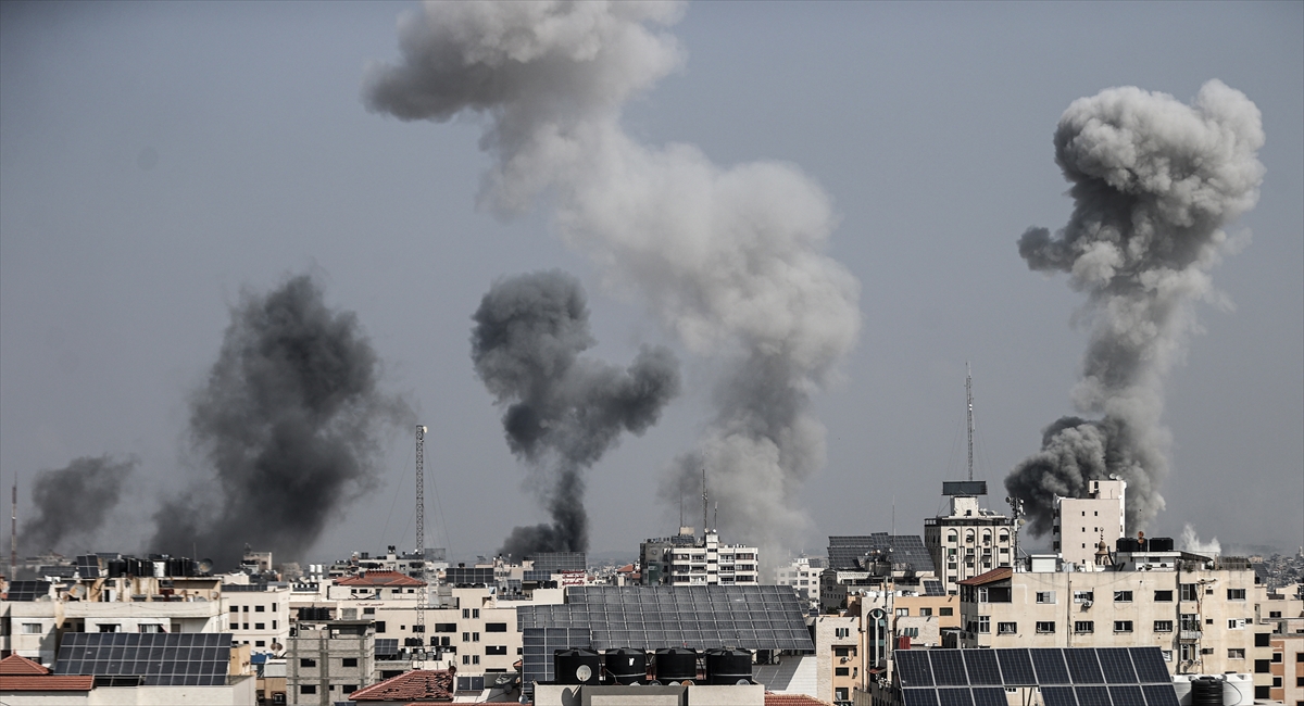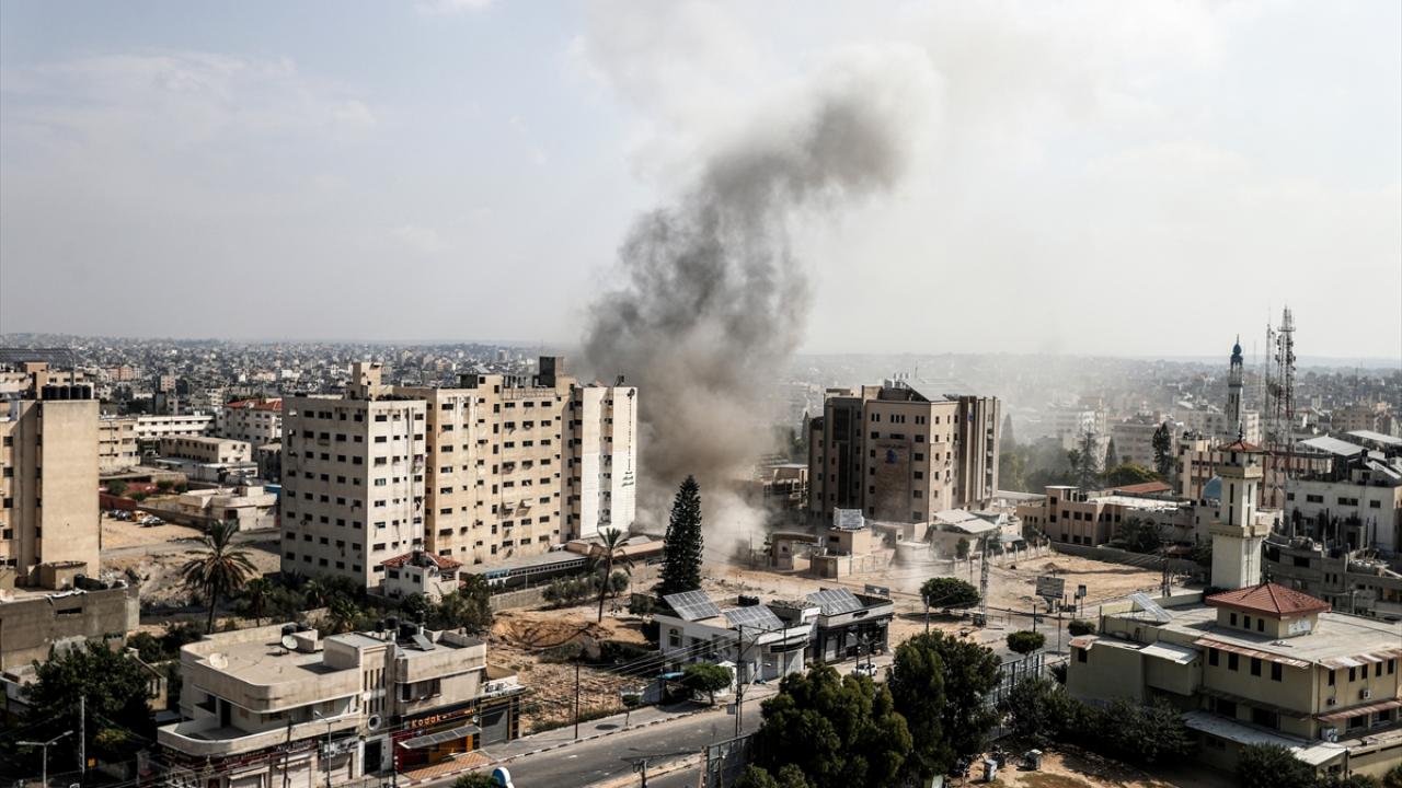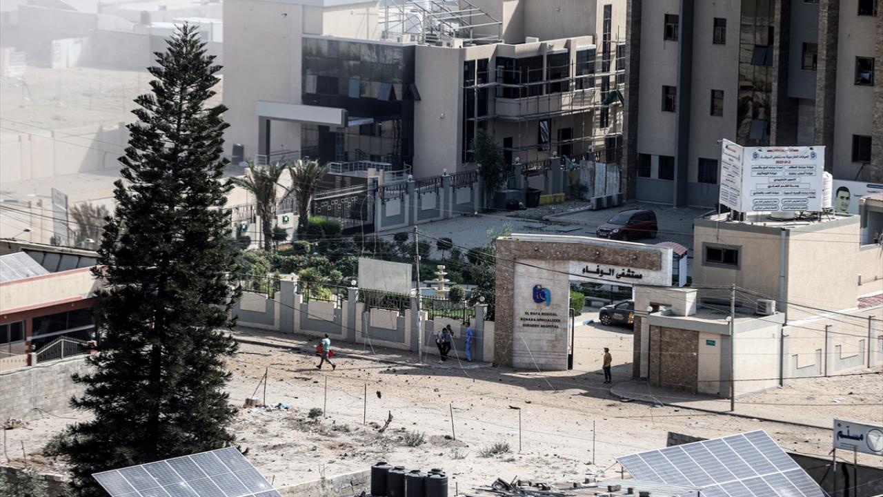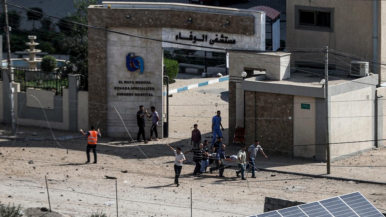 İsrail ordusunun, Gazze kentinde yaşlılar için rehabilitasyon merkezi olarak kullanılan Vefa Hastanesi'nin yakınını vurmasının ardından bölgeden dumanlar yükseldi.