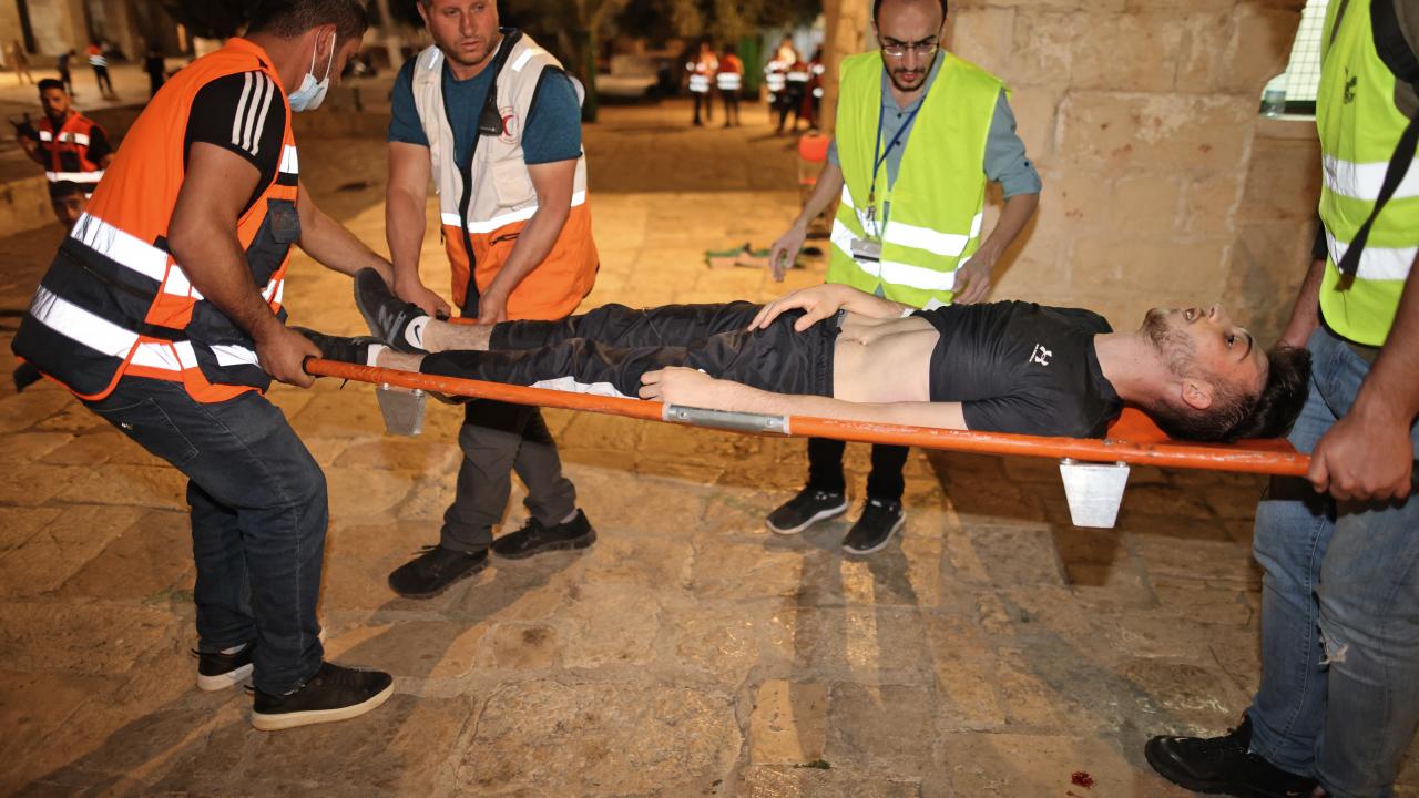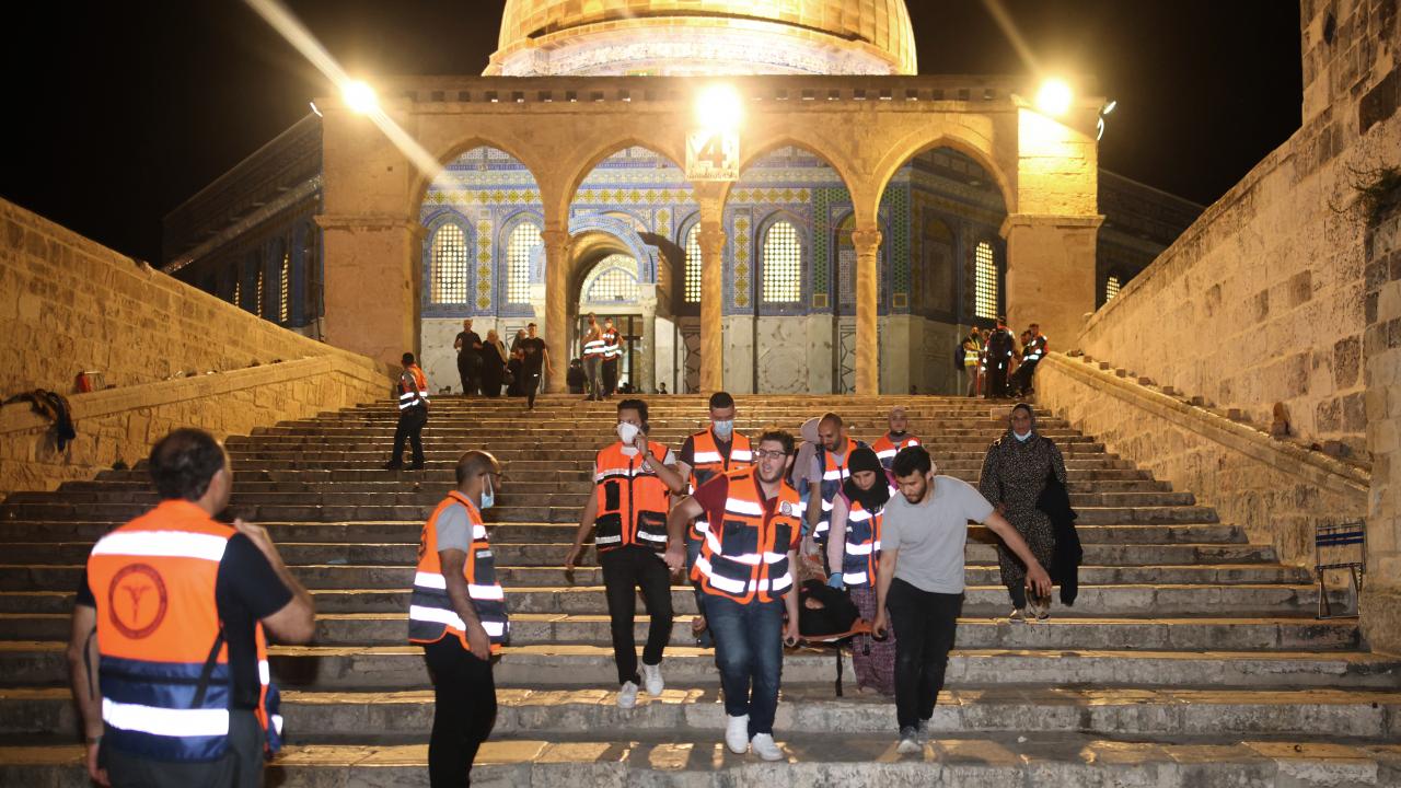İsrail polisi şiddet olaylarını tırmandırıyor. İsrail güçleri, akşam ve teravih namazlarının ardından Mescid-i Aksa'daki cemaate saldırdı. Saldırılar sırasında atılan bombalar avludaki bir ağacı yaktı. AA’nın Orta Doğu Editörü Turgut Alp Boyraz, İsrail polisinin Mescid-i Aksa’daki saldırısında bacağından 2 plastik mermiyle vuruldu.