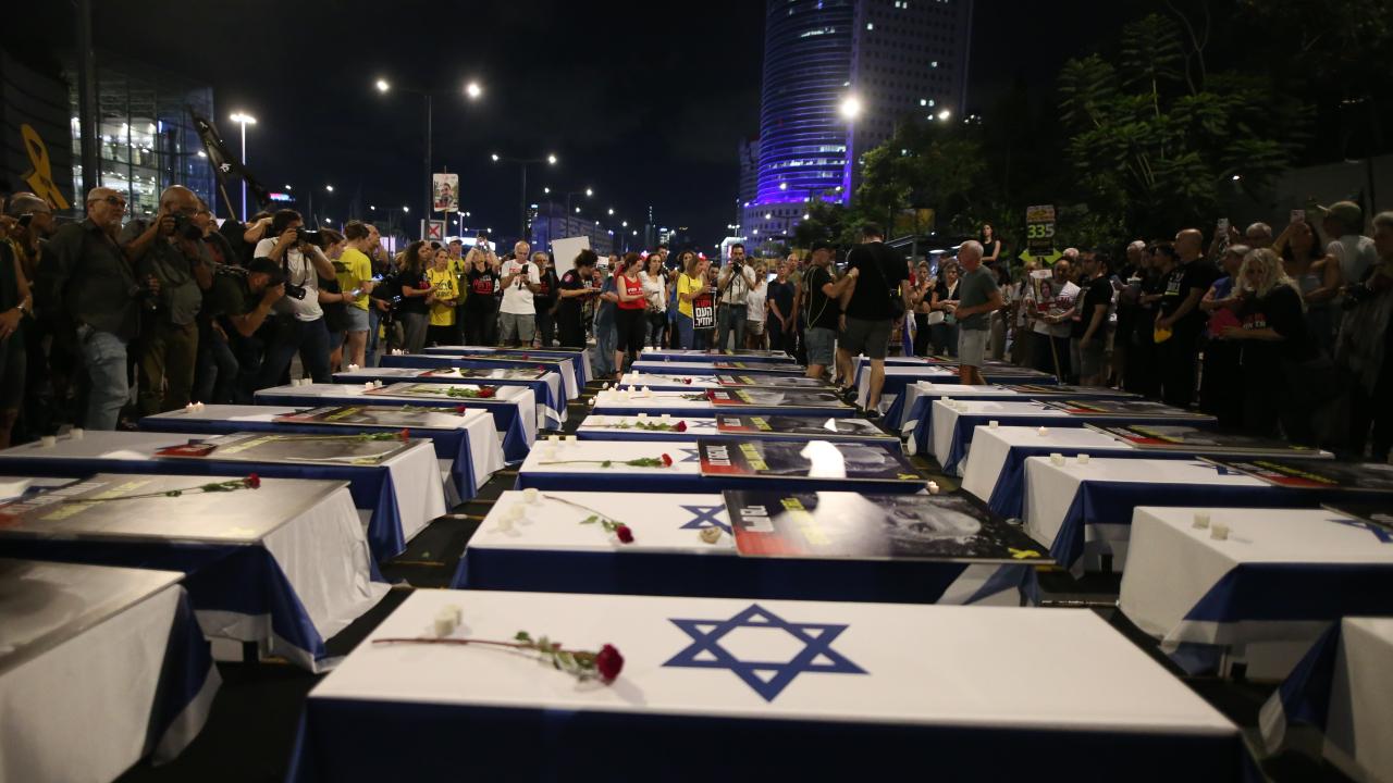 Protestoda hayatını kaybeden İsrailliler için temsili tabutlar da yer aldı.
