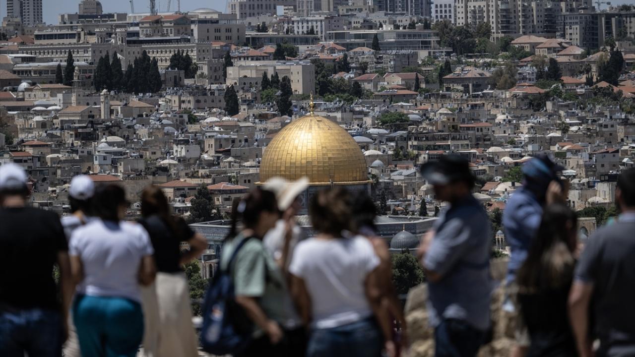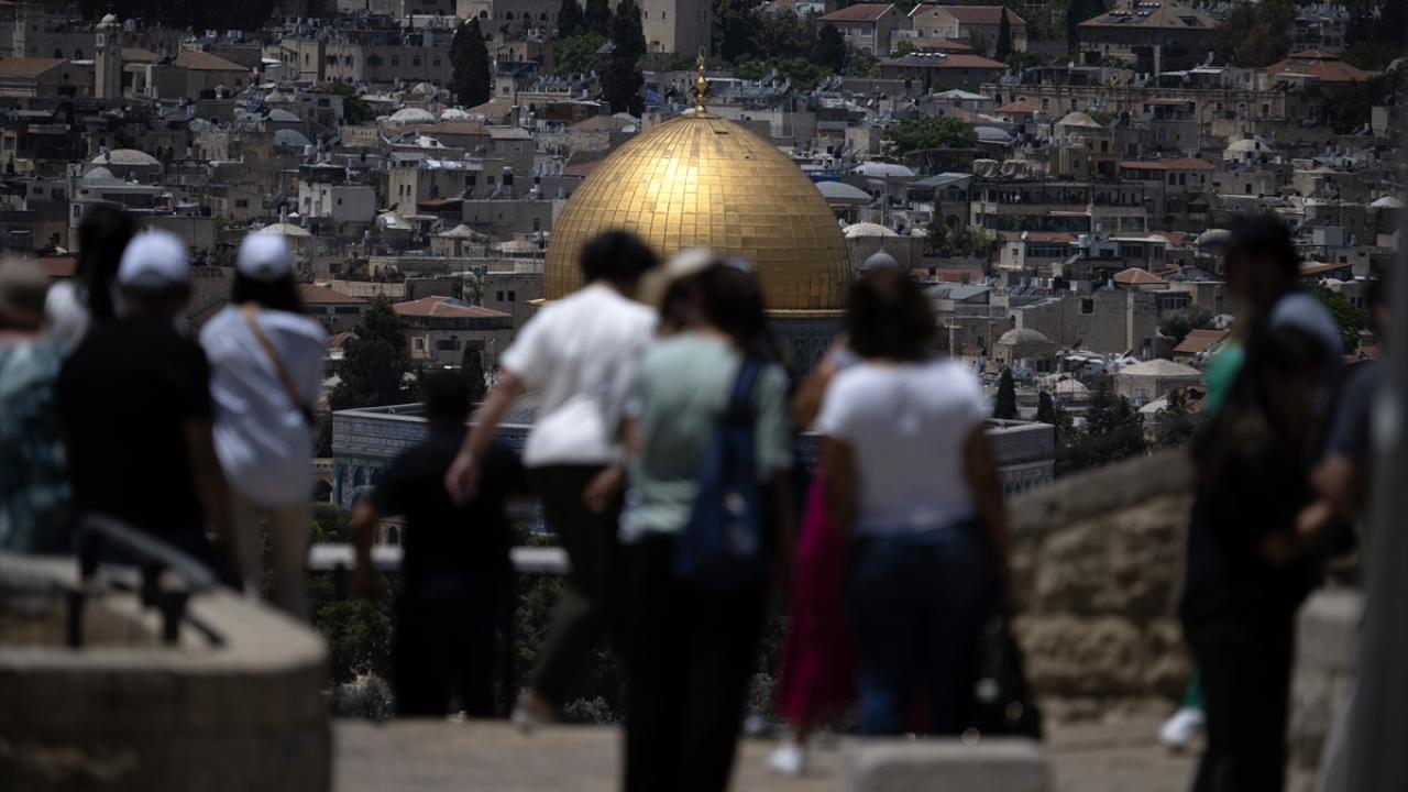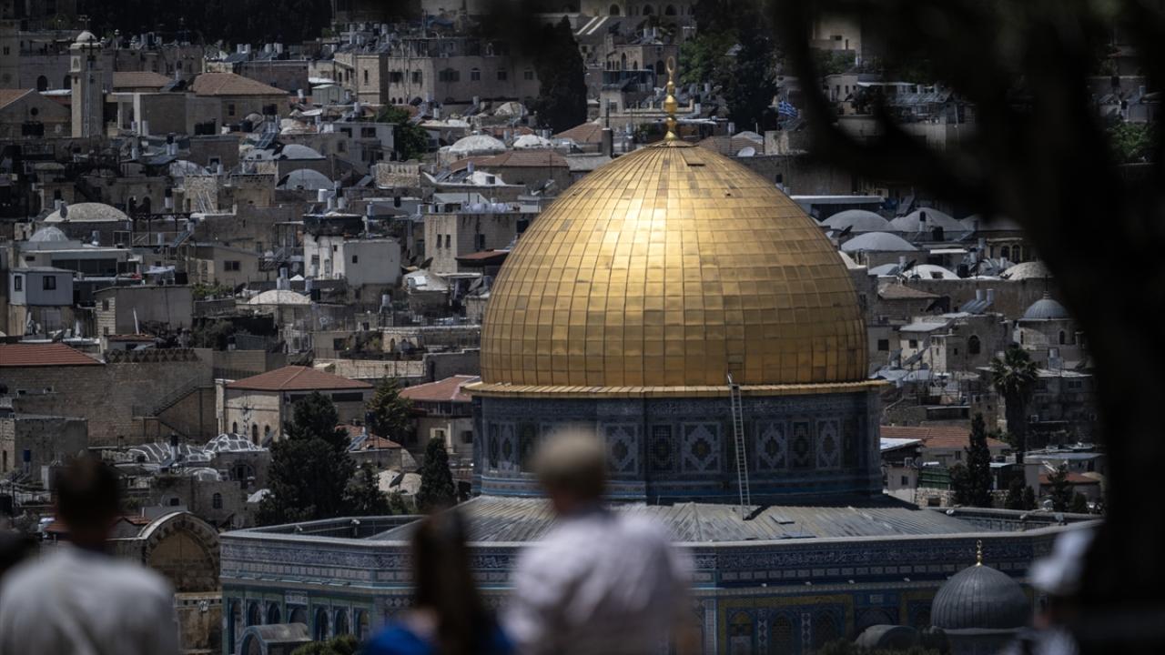 Tatbikat, İsrail`in 31 haftadır kısıtlamalarını sürdürdüğü Mescid-i Aksa Zeytin Dağı`ndan görüntülendi.