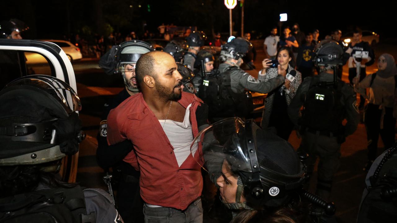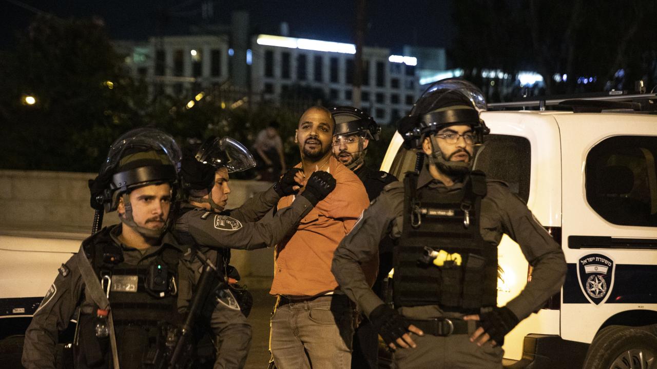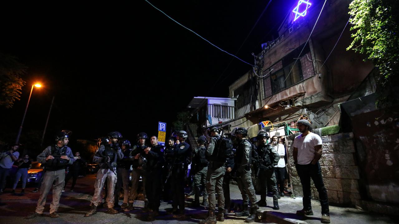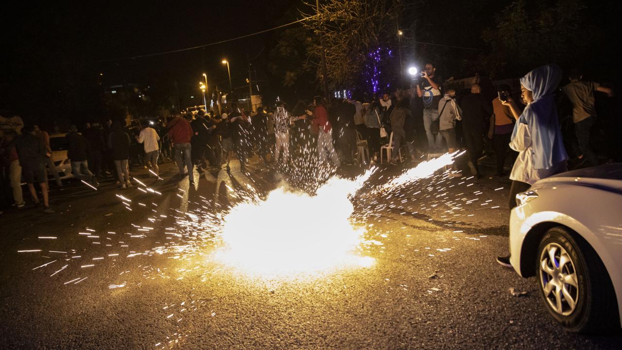 Şeyh Cerrah Mahallesi'nde gösteriye katılan onlarca Filistinli, mahalledeki yerli halkın kovulmasına tepki gösterdi. İsrail polisi gösteriye ses bombası ile müdahale etti.