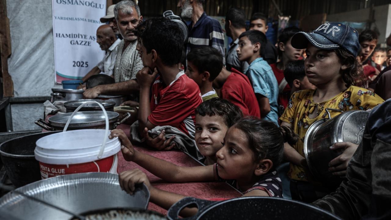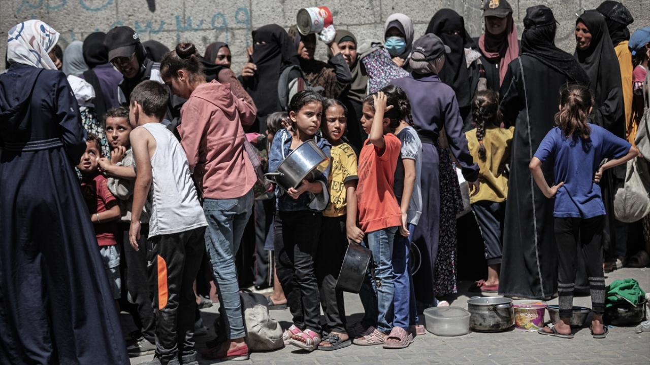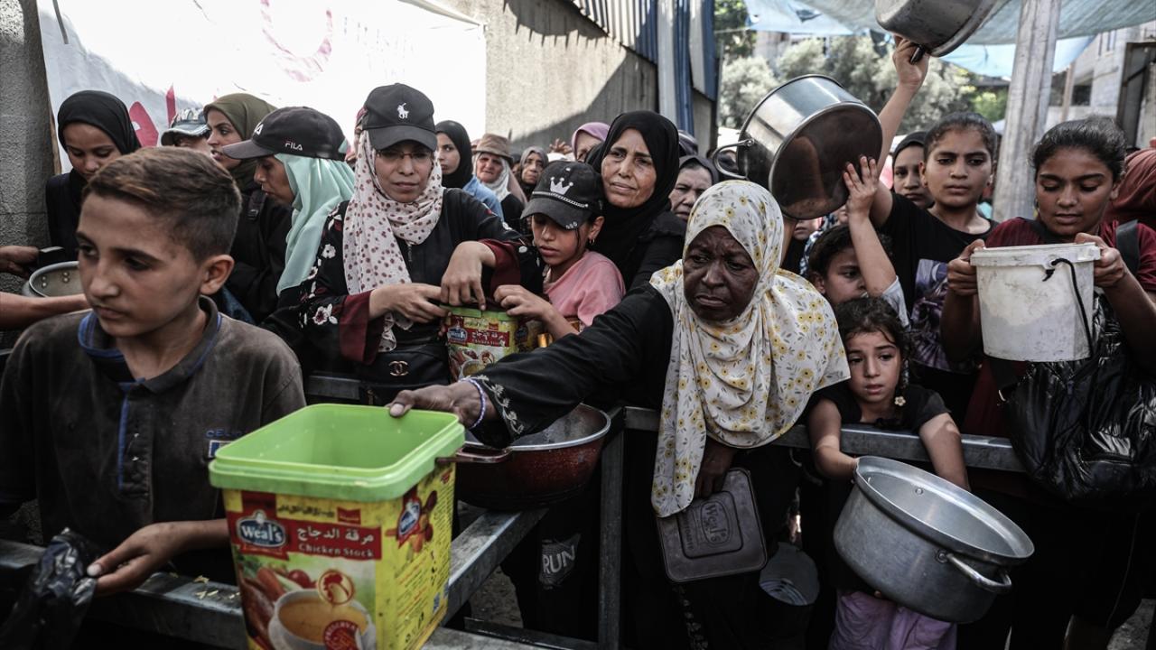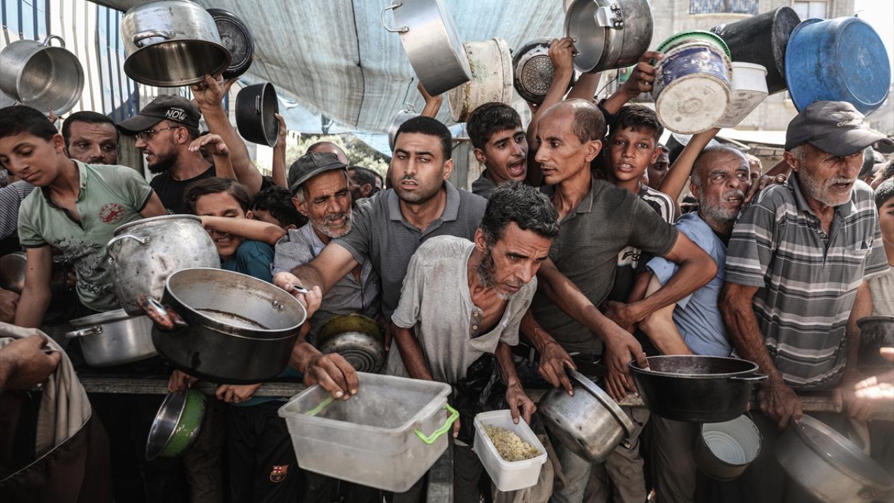 İsrail'in açlığa mahkum ettiği Gazze'de Filistinlilere yemek dağıtıldı