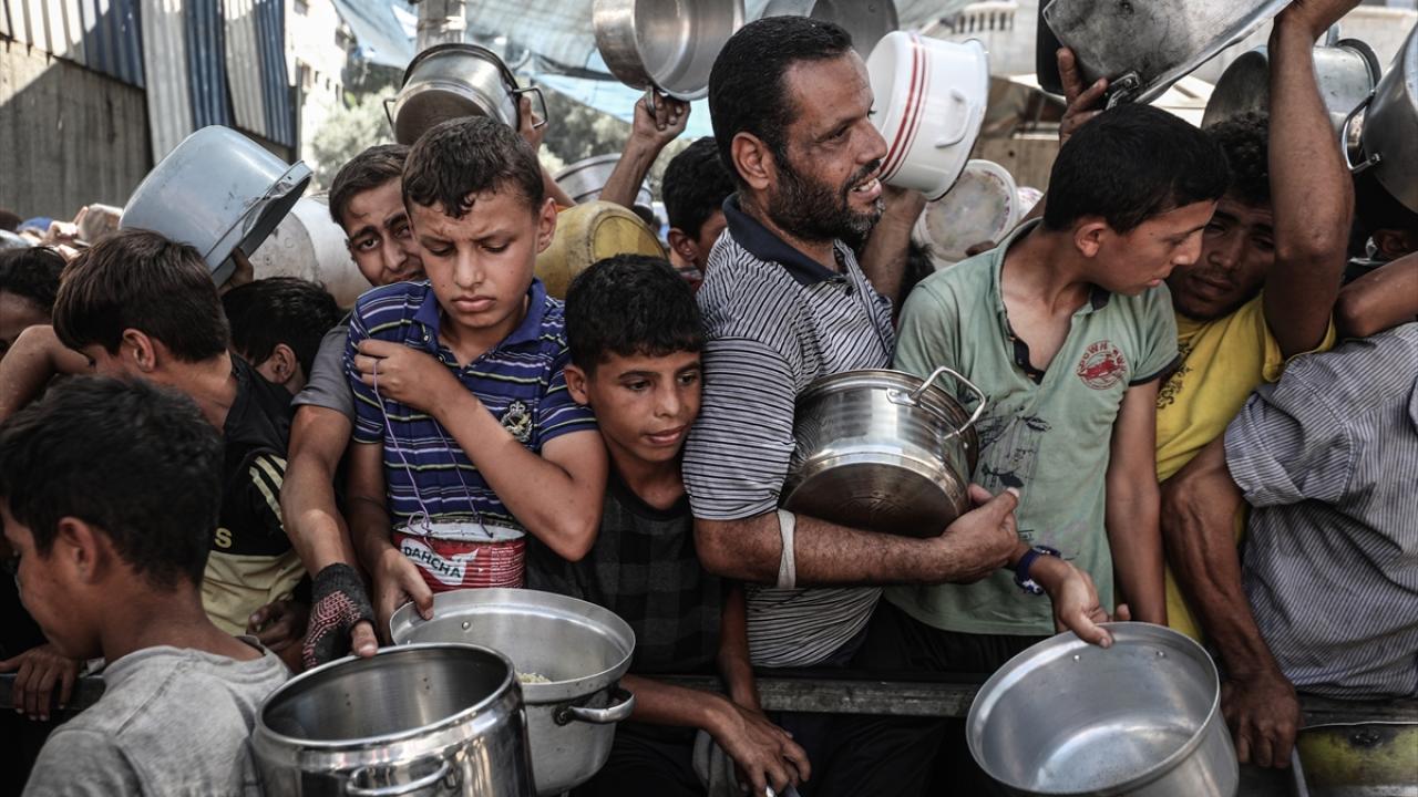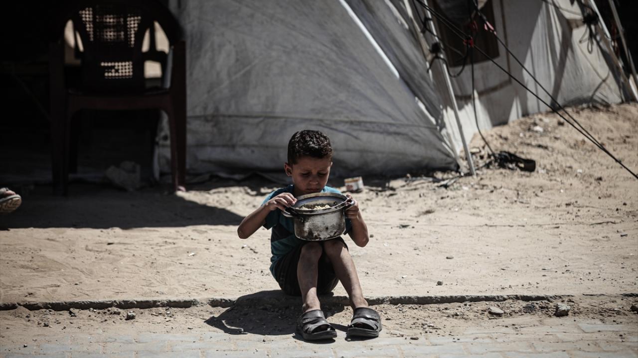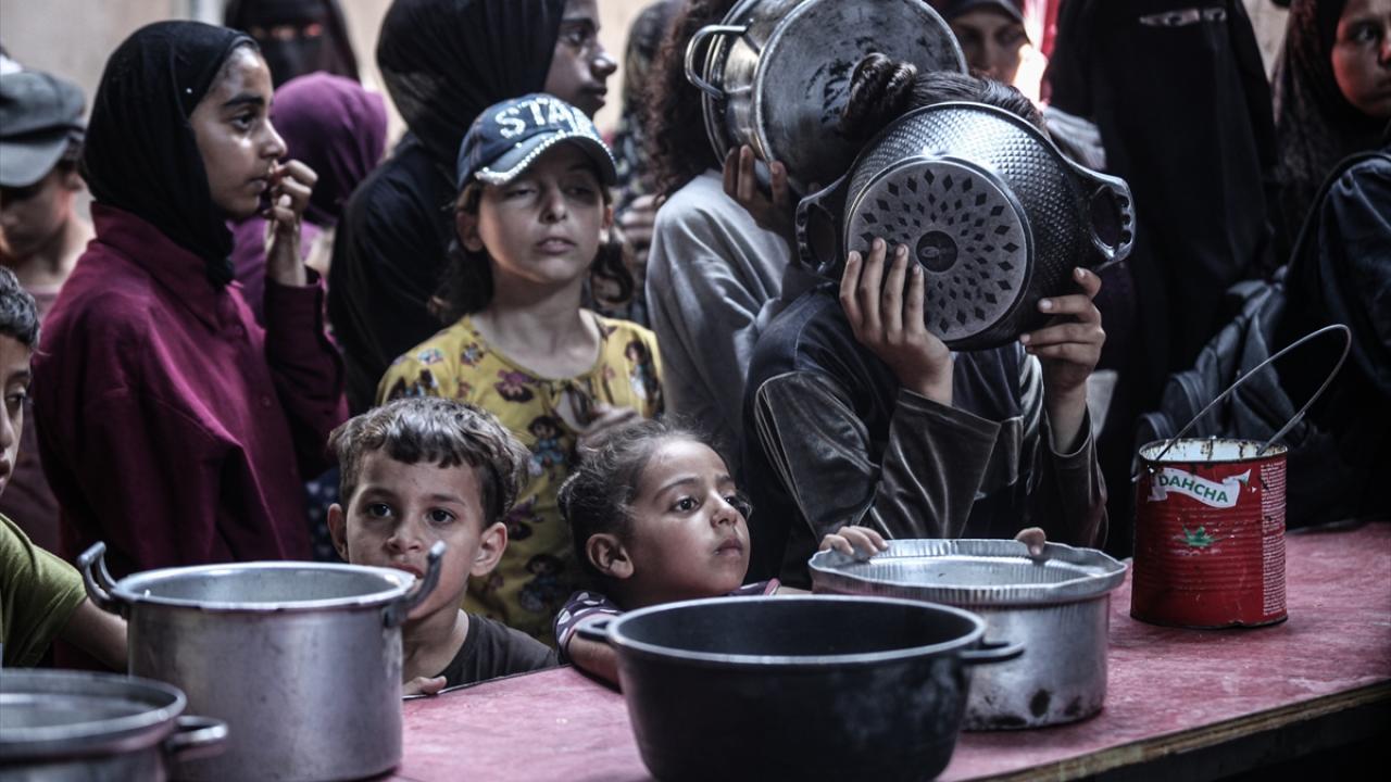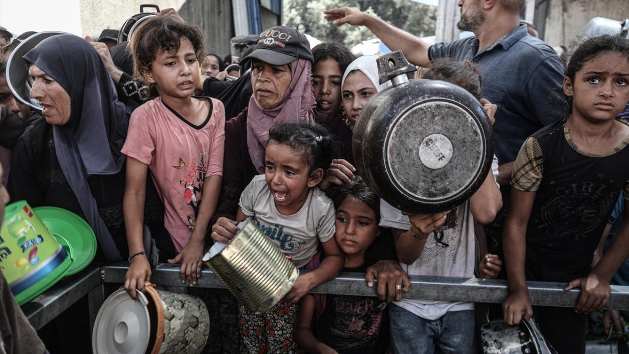 İsrail'in açlığa mahkum ettiği Gazze'de Filistinlilere yemek dağıtıldı
