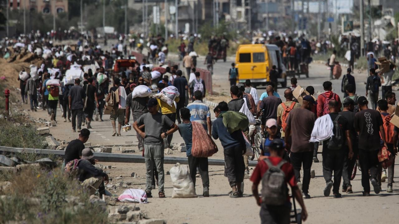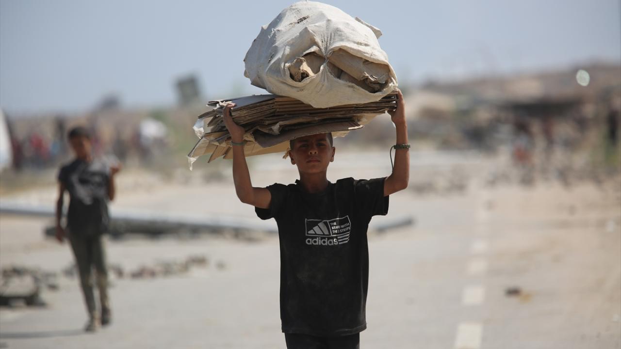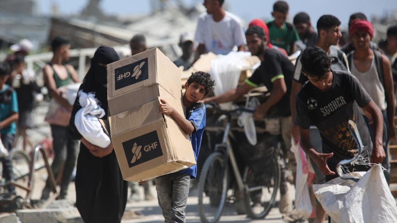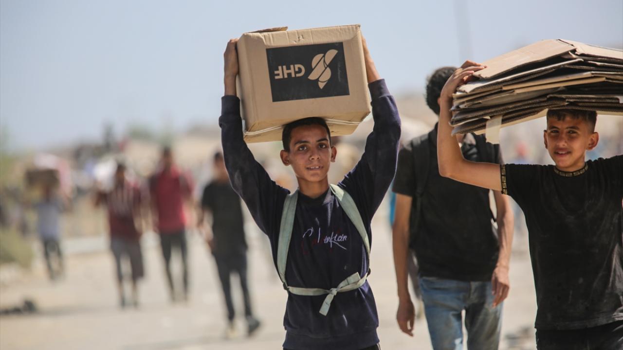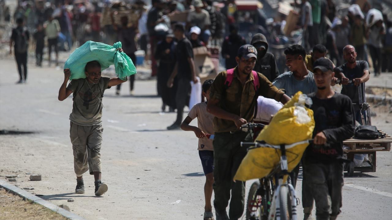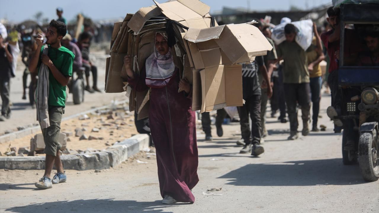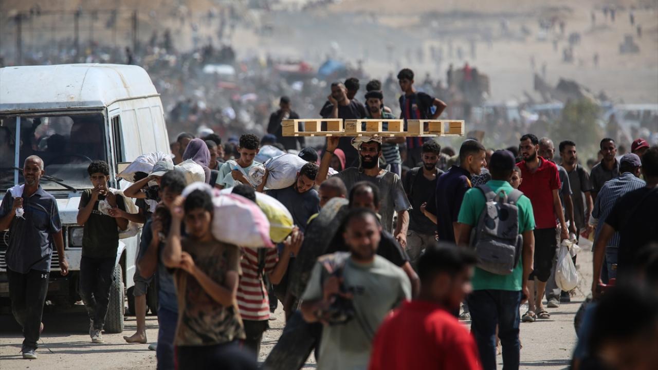İsrail ordusunun acımasız saldırıları ve ambargosu altındaki Gazze Şeridi'nde açlığa mahkum ettiği Filistinliler, kısıtlı miktarda dağıtılan gıda malzemelerinden alabilmek için Netzarim Koridoruna akın etti.