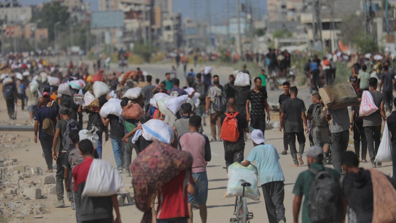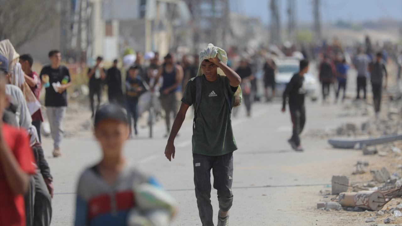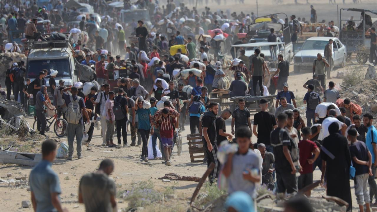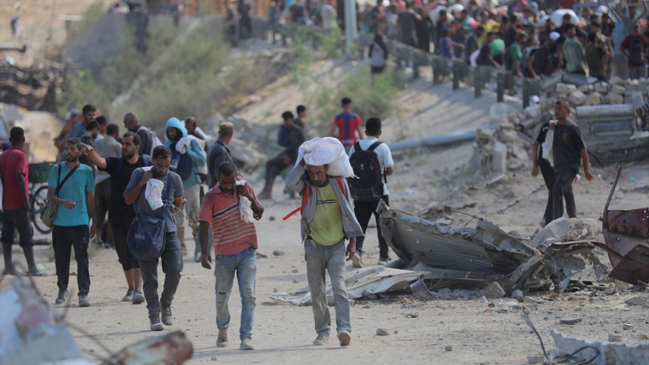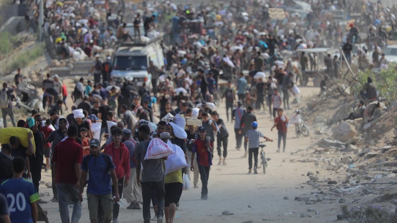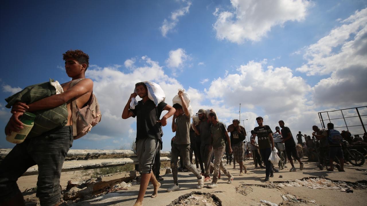İsrail ordusunun acımasız saldırıları ve ağır ablukası altındaki Gazze Şeridi’nde, açlıkla mücadele eden yerinden edilmiş Filistinliler, kısıtlı miktarda dağıtılan insani yardımlardan alabilmek için Netzarim Koridoru’nda kurulan yardım noktasına akın etti.