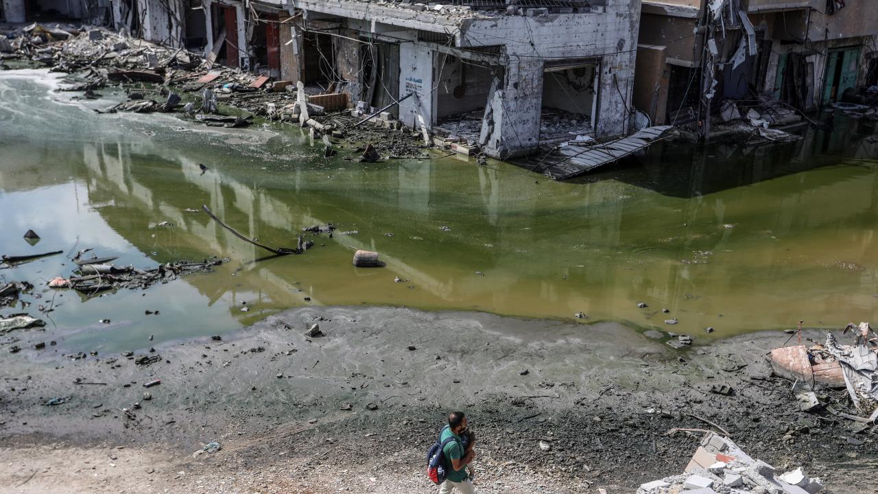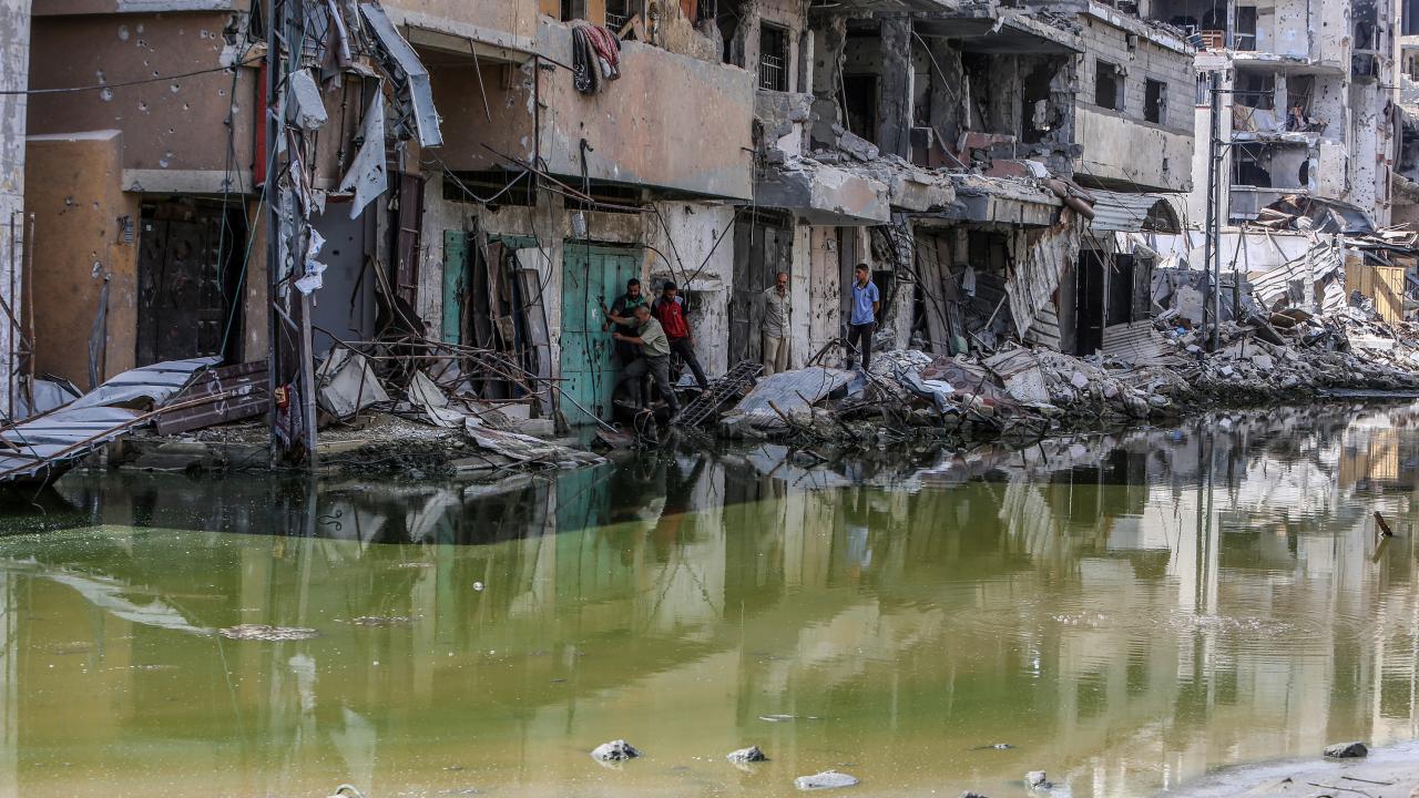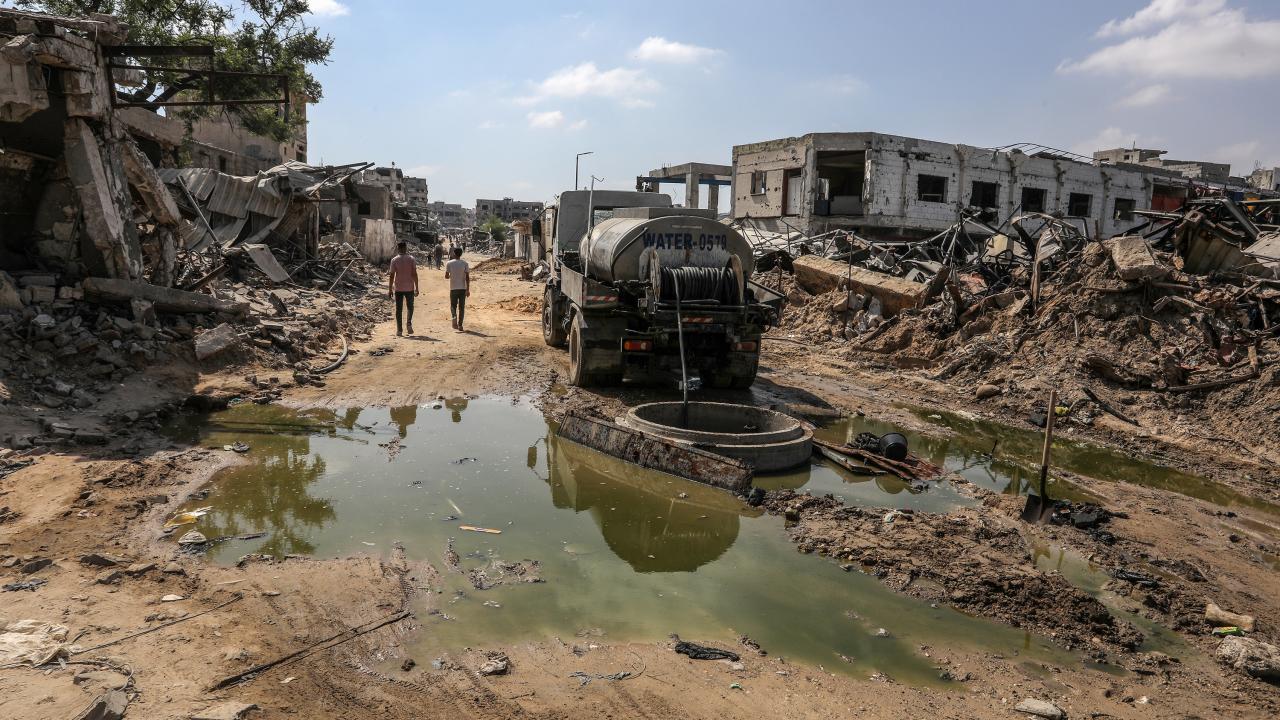 İsrail ordusunun çekildiği Gazze'nin Han Yunus kenti, haftalarca süren bombardıman nedeniyle yerle bir edildi. Neredeyse sağlam binanın kalmadığı kente dönen Filistinliler, enkaz halindeki evlerle karşılaştı. Evlerin yanı sıra kentteki yollar, işyerleri ve altyapı büyük tahribata uğradı. Tahribat, atık suların yollara sızmasına yol açtı.