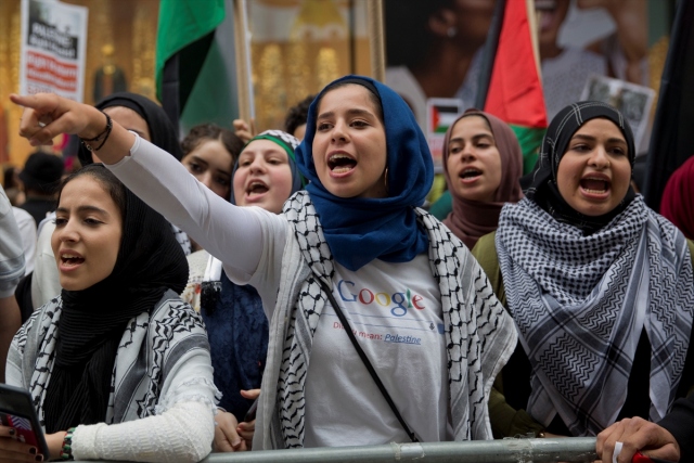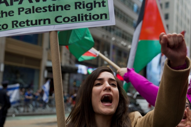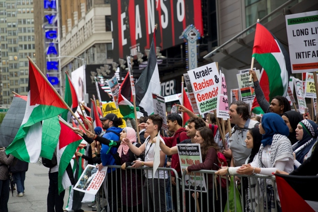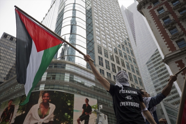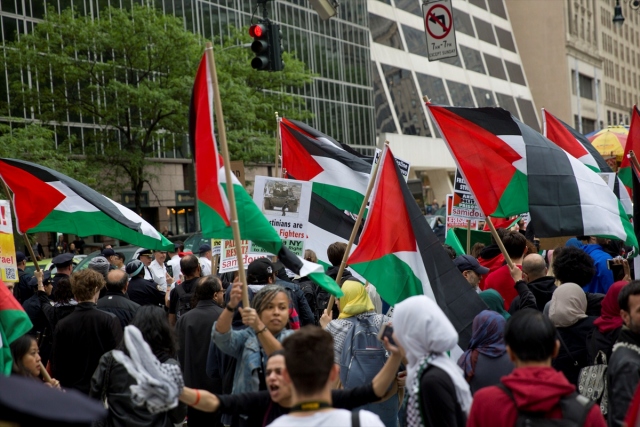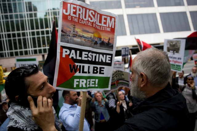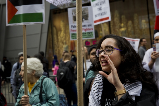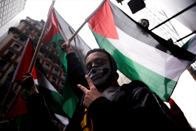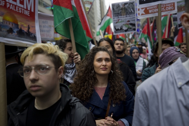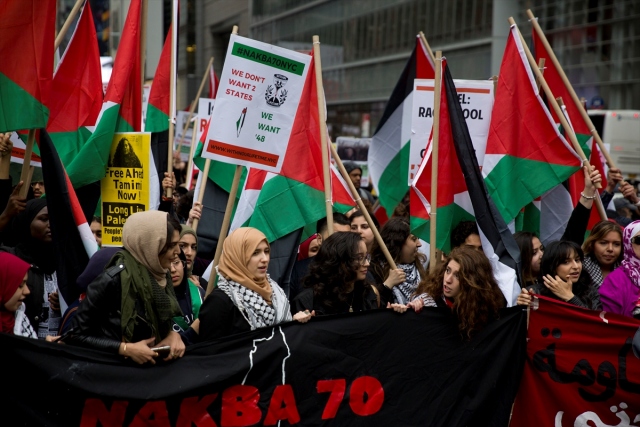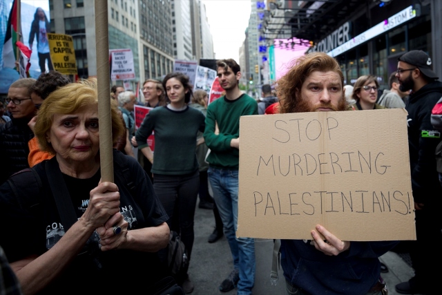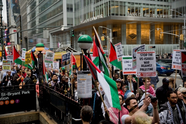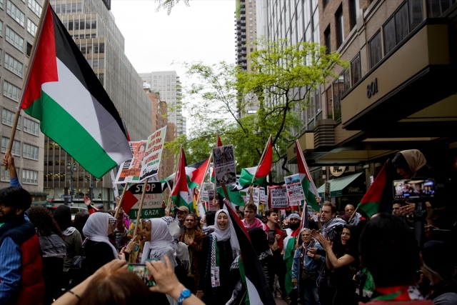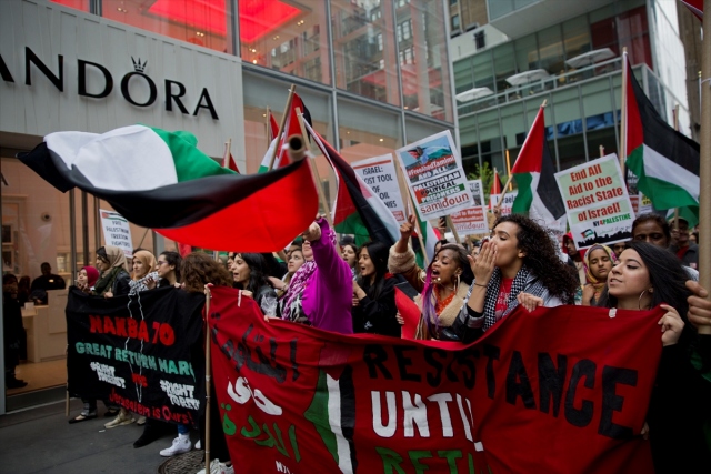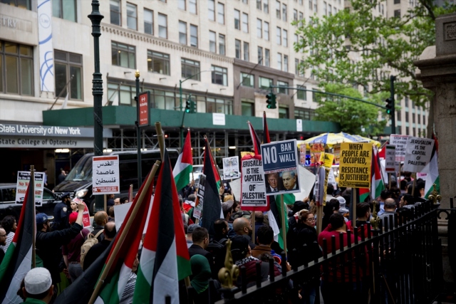 New York'taki Ortodoks Yahudiler ve Filistinliler, İsrail'in Gazze sınırındaki protestolarda Filistinli sivillere karşı katliamını protesto etti.
