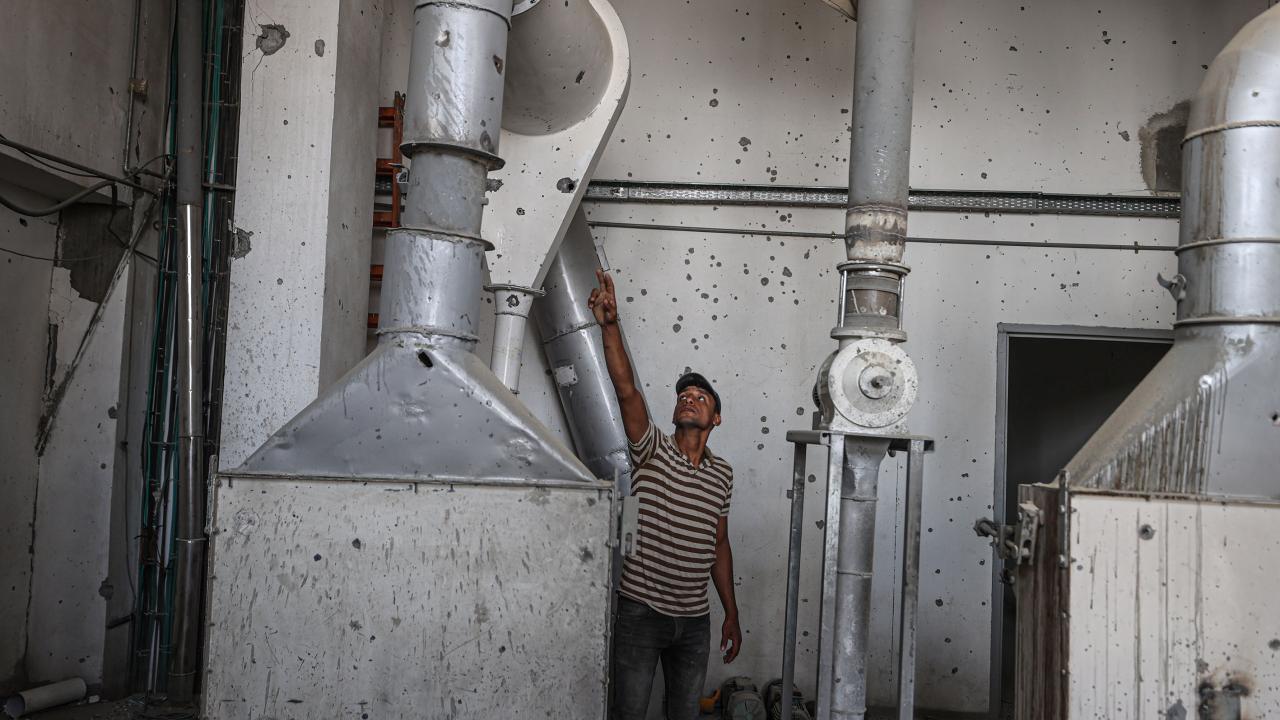 İsrail ordusunun, Gazze kentine düzenlediği saldırısı sonucu El Selam un değirmeni binasında büyük hasar oluştu.