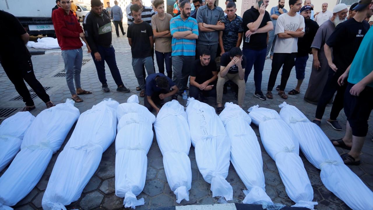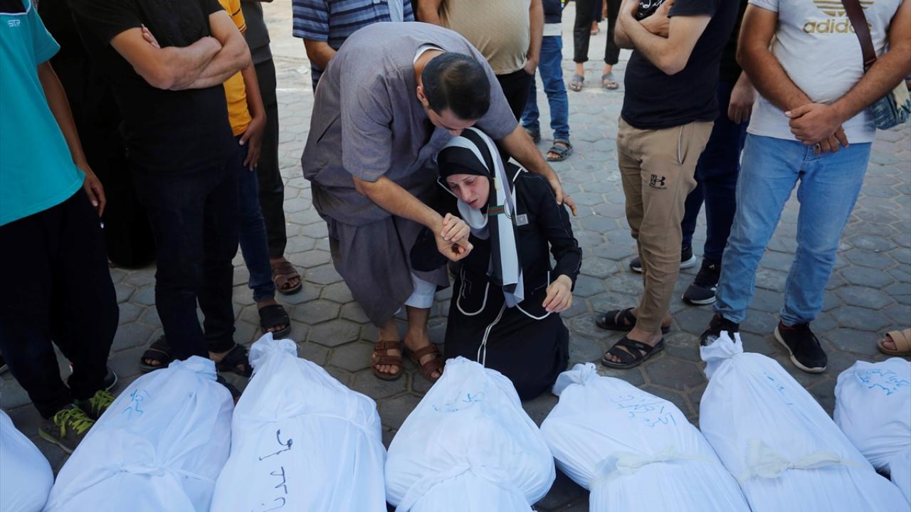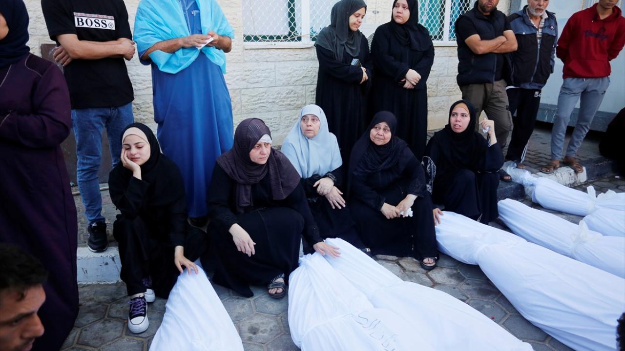 El Kurd ailesinin 10`dan fazla üyesinin öldüğü saldırı sonrası El Aksa Şehitleri Hastanesi`nde getirilen cenazeler burada kefenlendi.