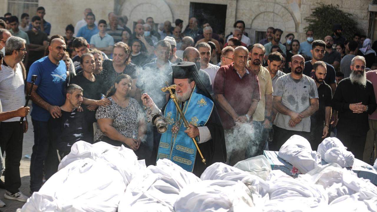İsrail'in Gazze'deki kilise saldırısında hayatını kaybedenler için cenaze töreni düzenlendi