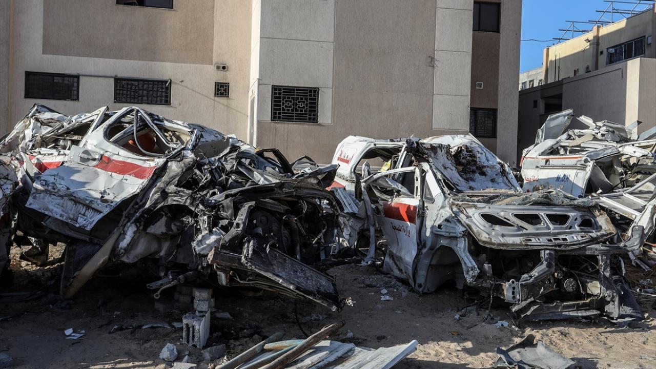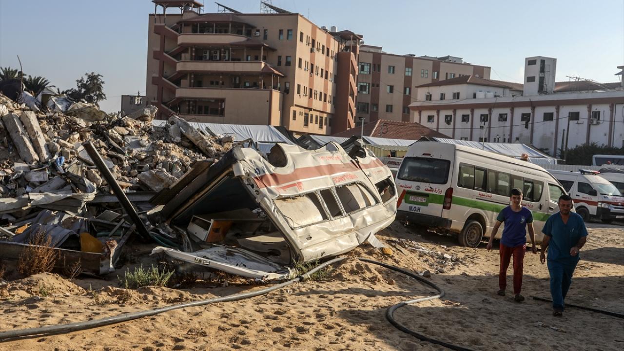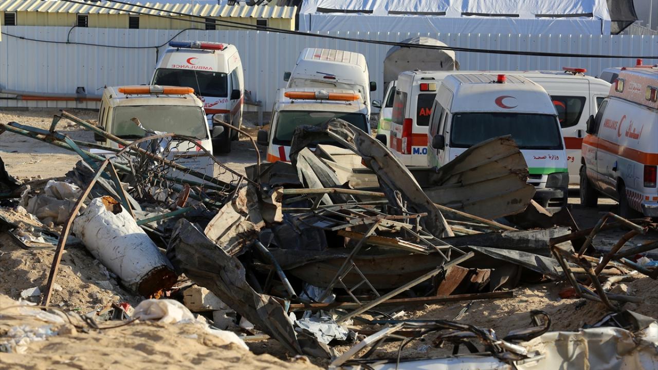 Han Yunus kentinde yer alan Nasır Hastanesi’ne düzenlenen baskınlarda onlarca ambulans tahrip edildi.