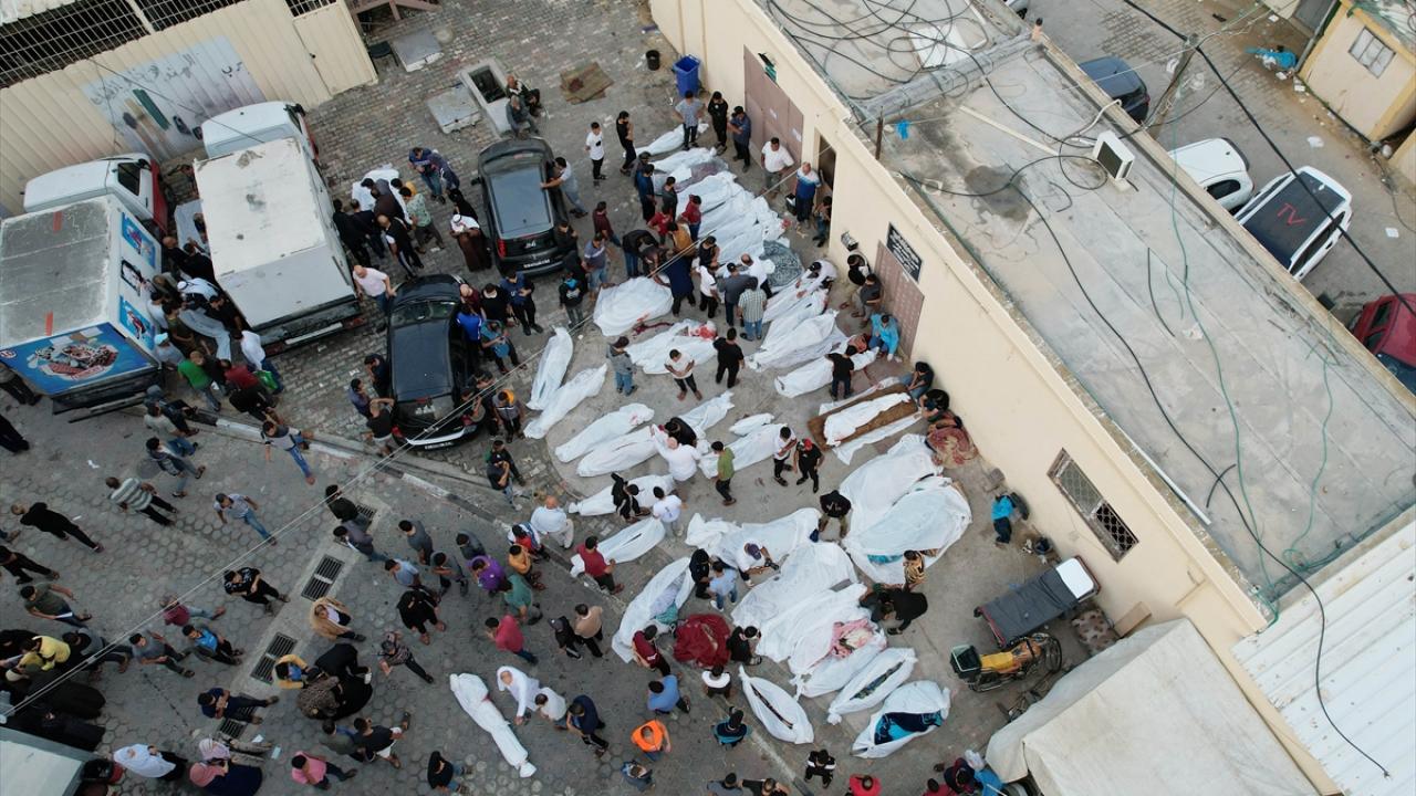 Saldırılarda hayatını kaybedenlerin naaşları, yakınları tarafından cenaze namazı kılınıp toprağa verilmek üzere Han Yunus kentindeki Nasır Hastanesi morgundan alındı.