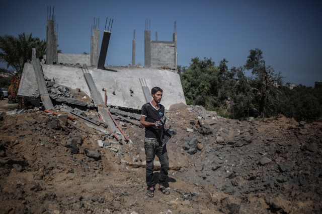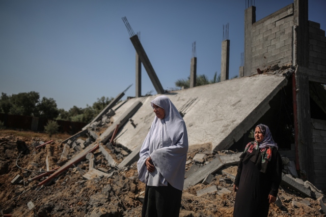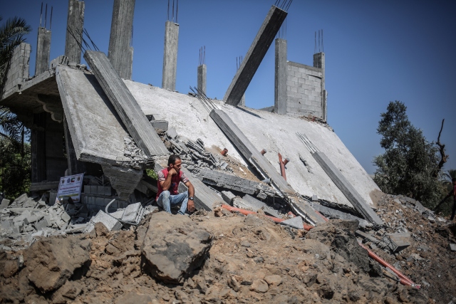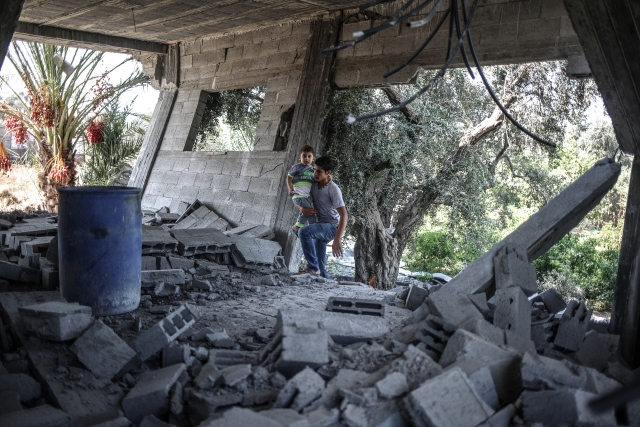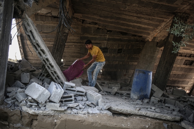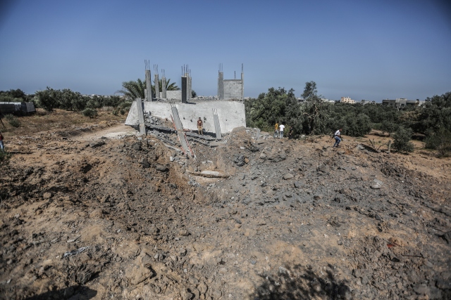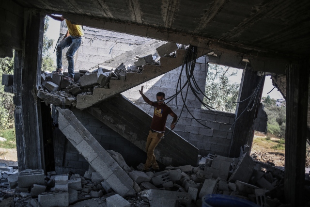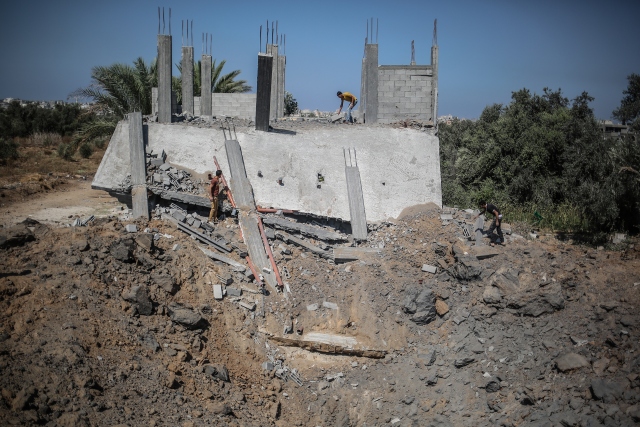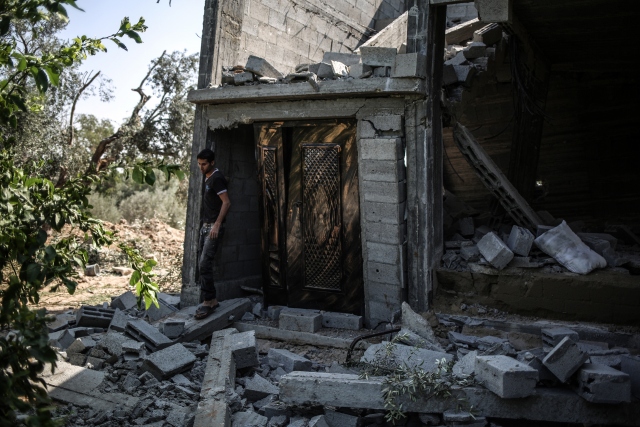 İsrail ordusuna ait savaş uçaklarının, dün Gazze'deki ez-Zeytun mahallesinde bir eve hava saldırısı düzenledi. Filistinliler, hava saldırısında hasar gören evi inceledi.