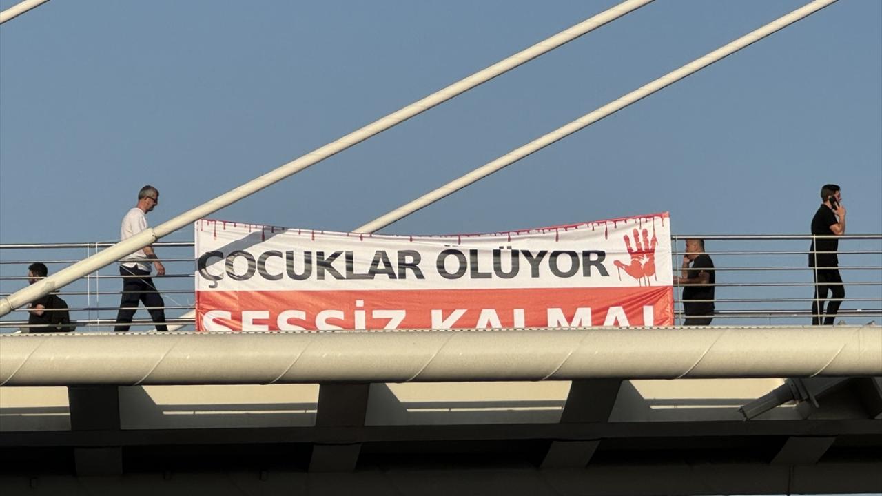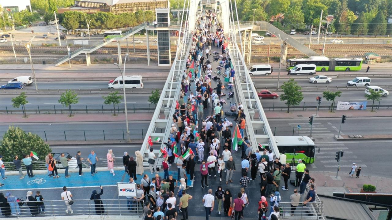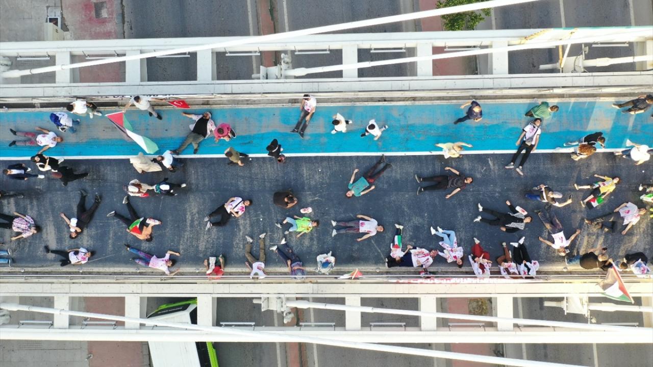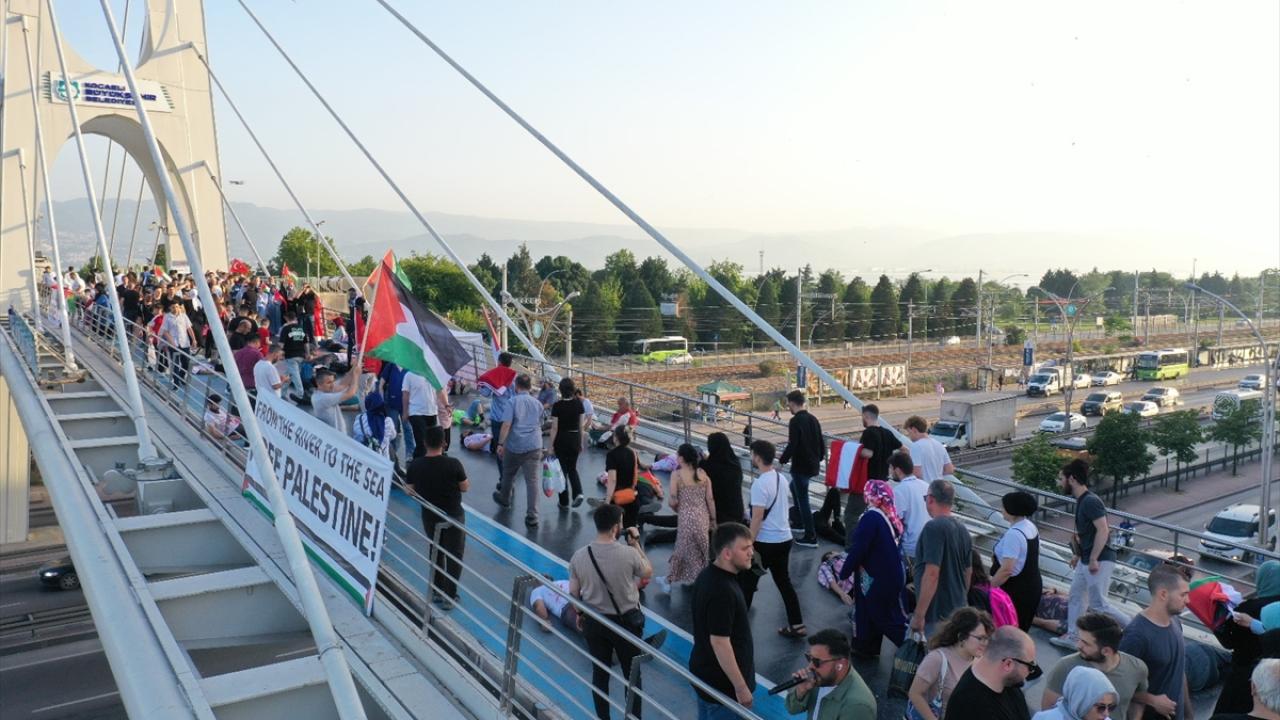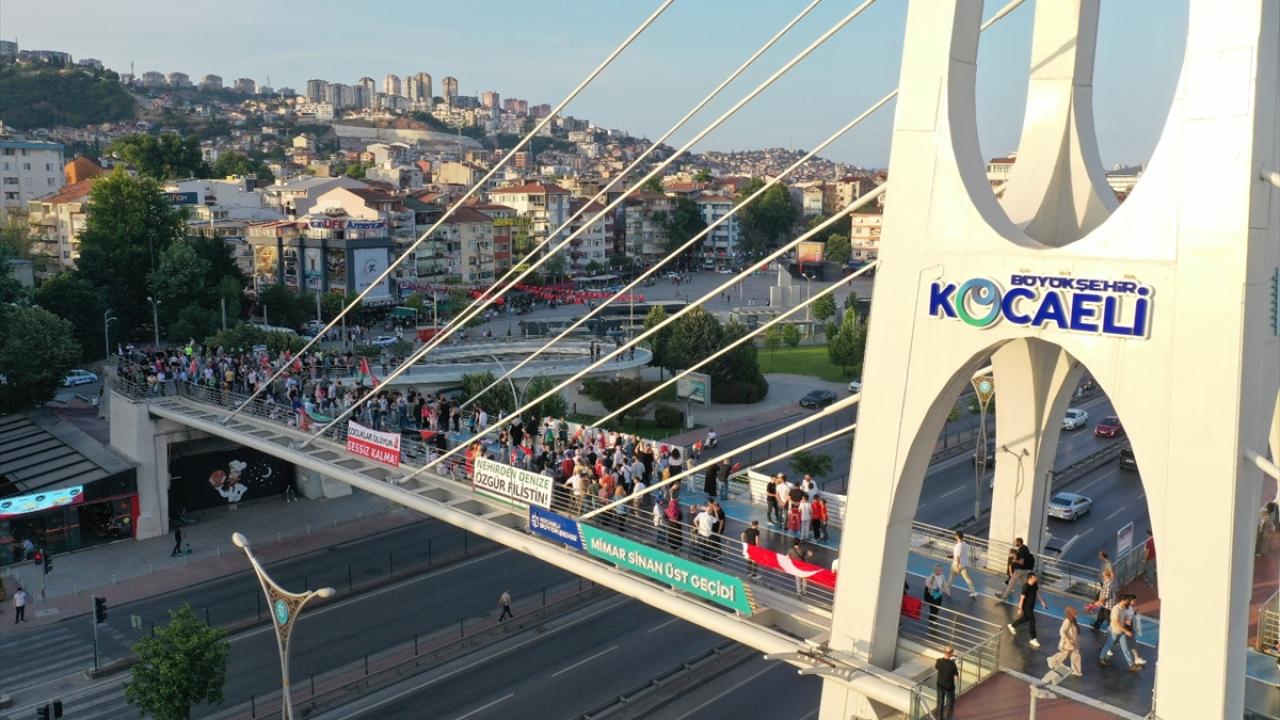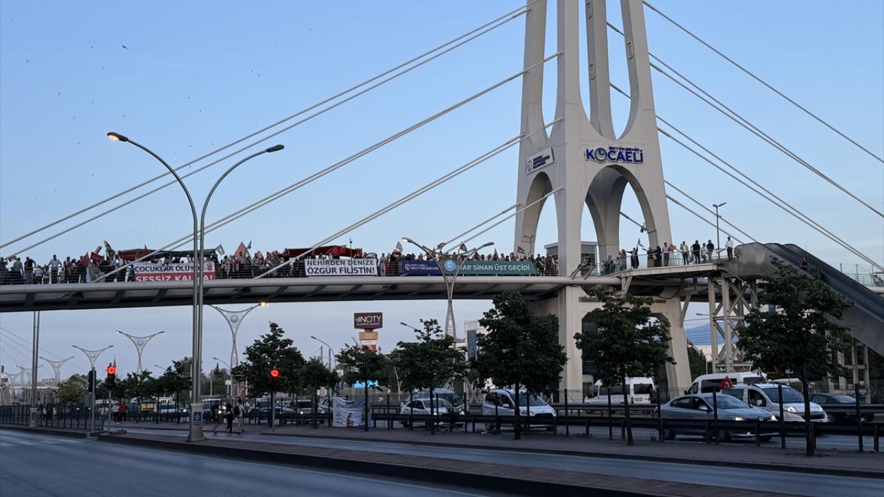 "Kocaeli Filistin İçin Ayakta" sloganıyla şehir merkezindeki Mimar Sinan, Turgut Özal, Necmettin Erbakan ve Adnan Menderes üst geçitlerinde buluşan 200`ü aşkın sivil toplum kuruluşu (STK) temsilcisi, köprülere İsrail`i kınayan pankartlar astı.