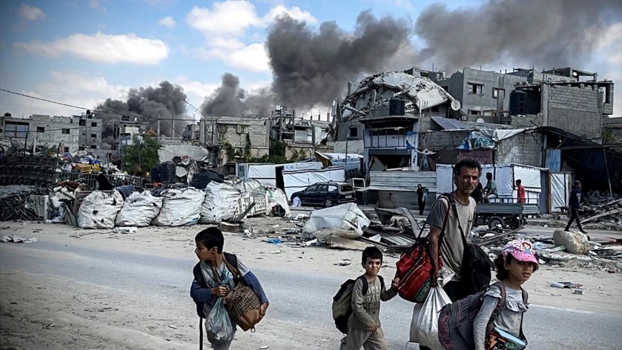 Saldırı sonrası bölgeden dumanlar yükselirken bazı Filistinliler, yanlarına aldıkları birkaç parça eşya ile bölgeden ayrıldı.
