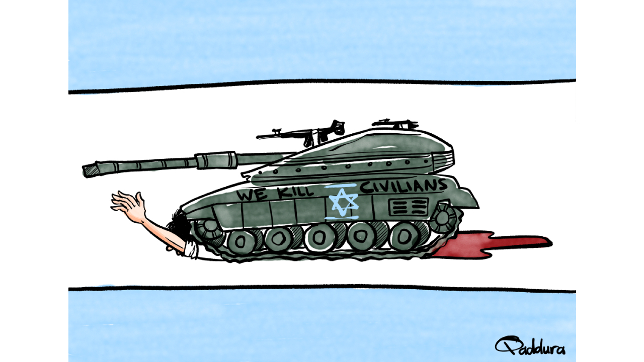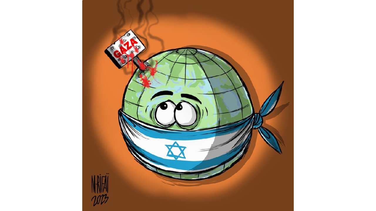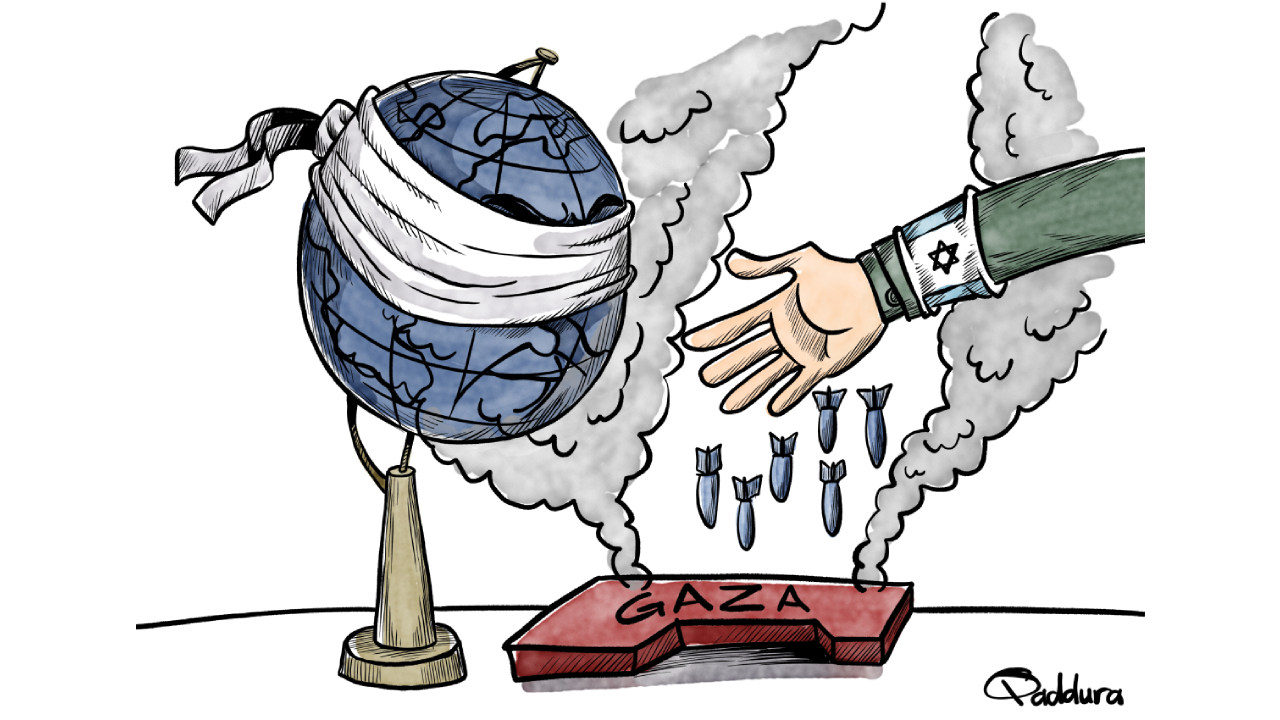 Gazze’ye bomba yağdıran İsrail’i görmezden gelen dünya... Karikatürist: Ahmad Qaddura