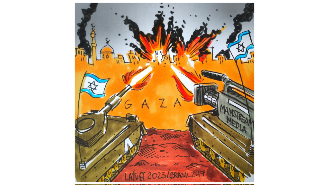 Karikatürist Carlos Latuff ana akım medyayı böyle eleştirdi: İsrail yanlısı haber yaparak Gazze`ye aslında birer bomba da onlar atmış oldular.