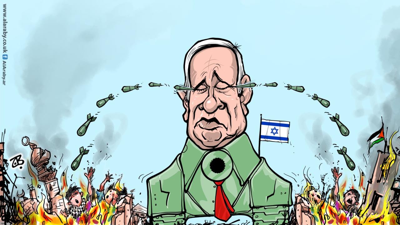 Karikatürist Emad Hajjaj Netanyahu`nun timsah gözyaşlarını böyle yorumladı. Dünyaya mağdur gözükmeye çalışan Netanyahu aslında binlerce sivilin katili...