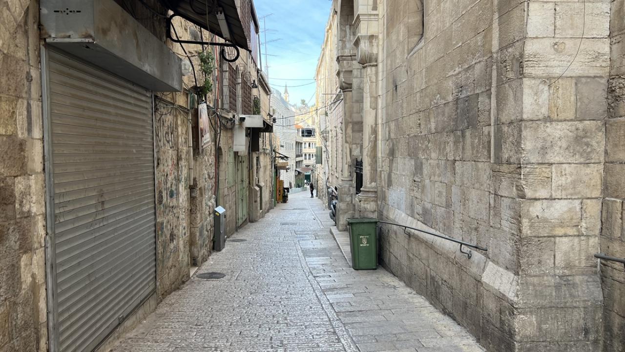 İsrail kısıtlamaları nedeniyle Kudüs`te cuma namazı öncesi cadde ve sokakların boş olduğu görüldü.