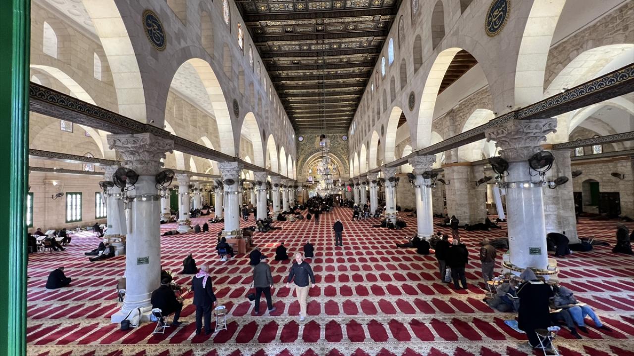 İsrail kısıtlamaları nedeniyle Mescid-i Aksa hareminin, içerisinin ve avlusunun ramazanın ikinci cuma namazı öncesi de boş olduğu görüldü.